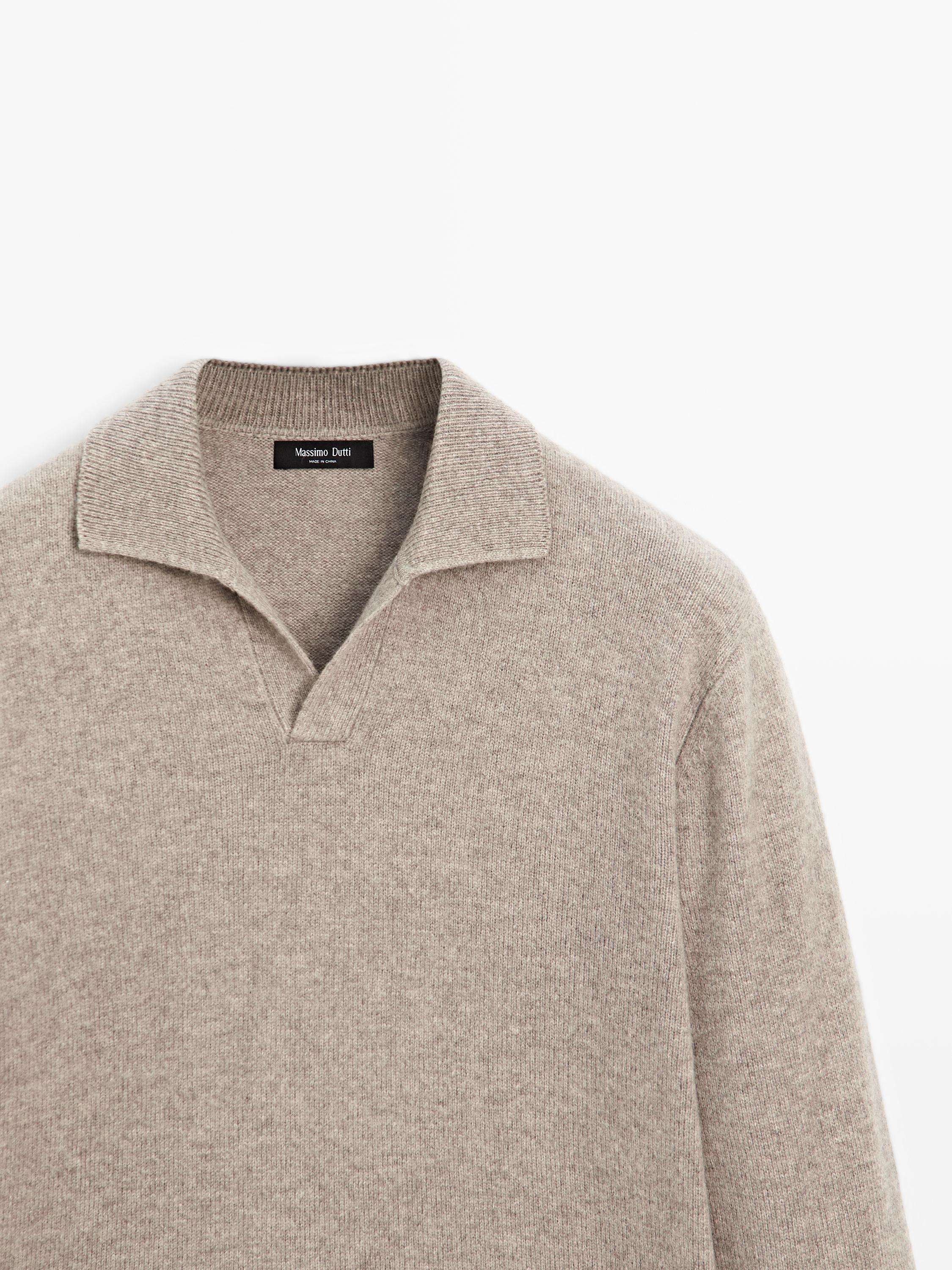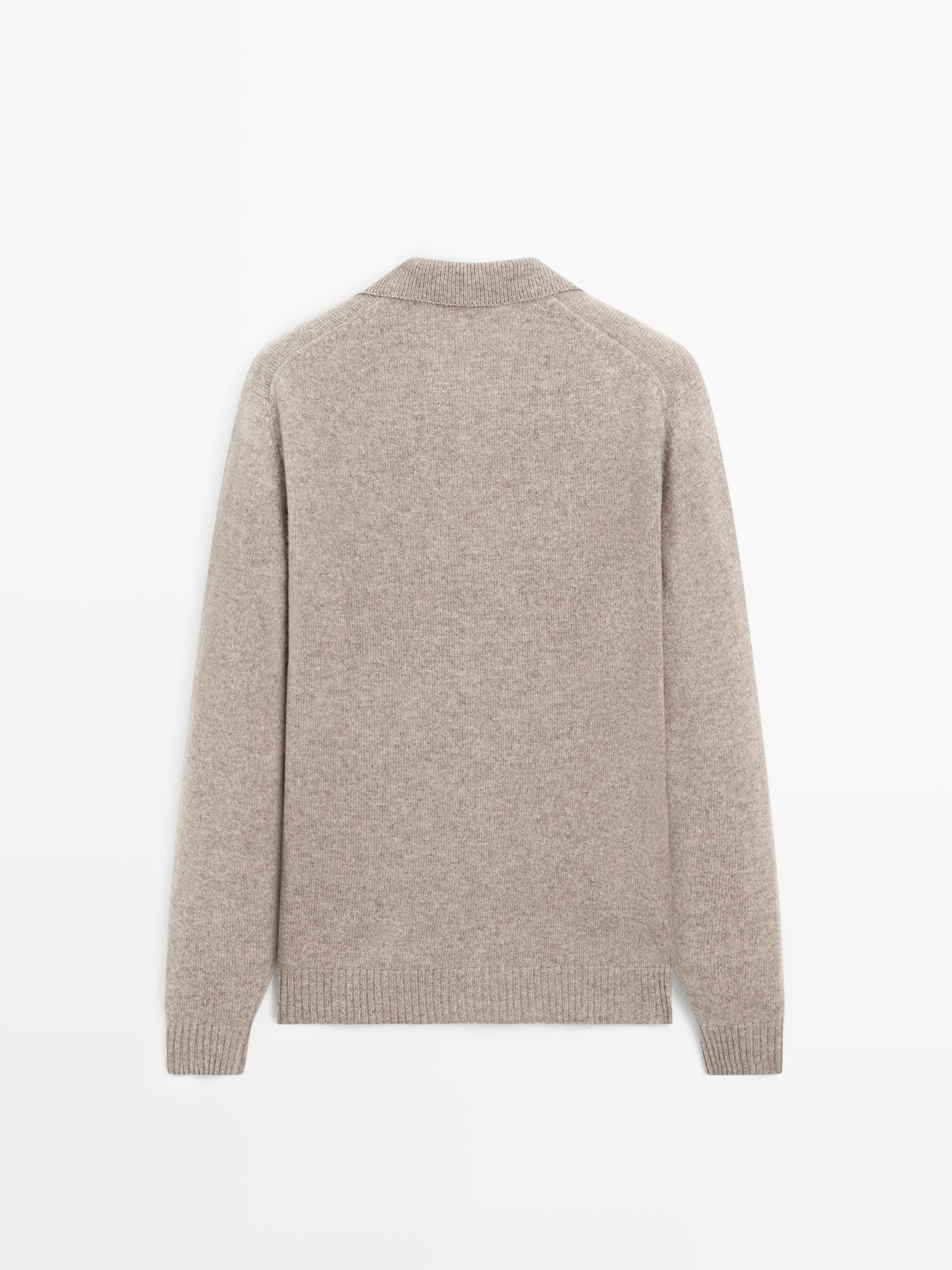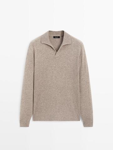 Massimo Dutti Свитер поло из смесовой шерсти с V-образным вырезом, экрю