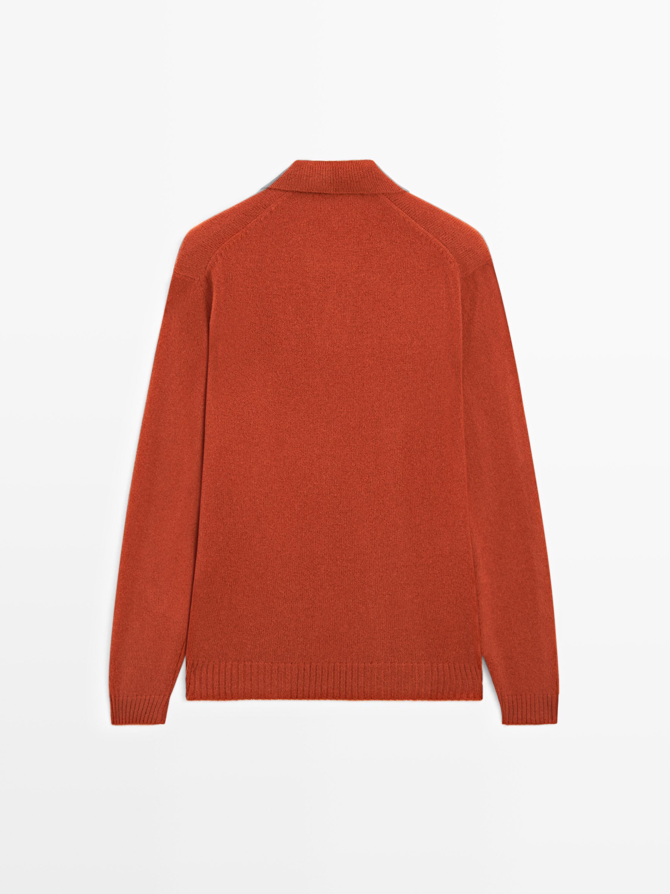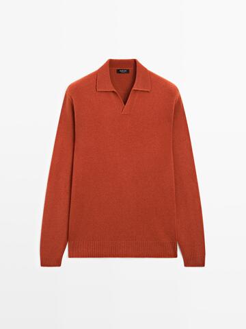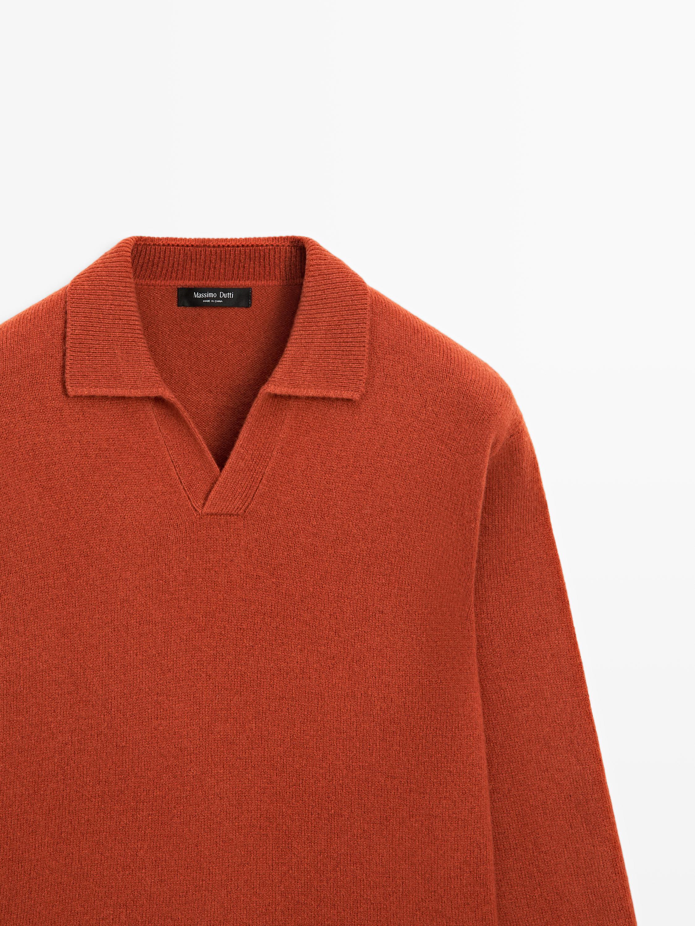 Massimo Dutti Свитер поло из смесовой шерсти с V-образным вырезом, мандариновый
