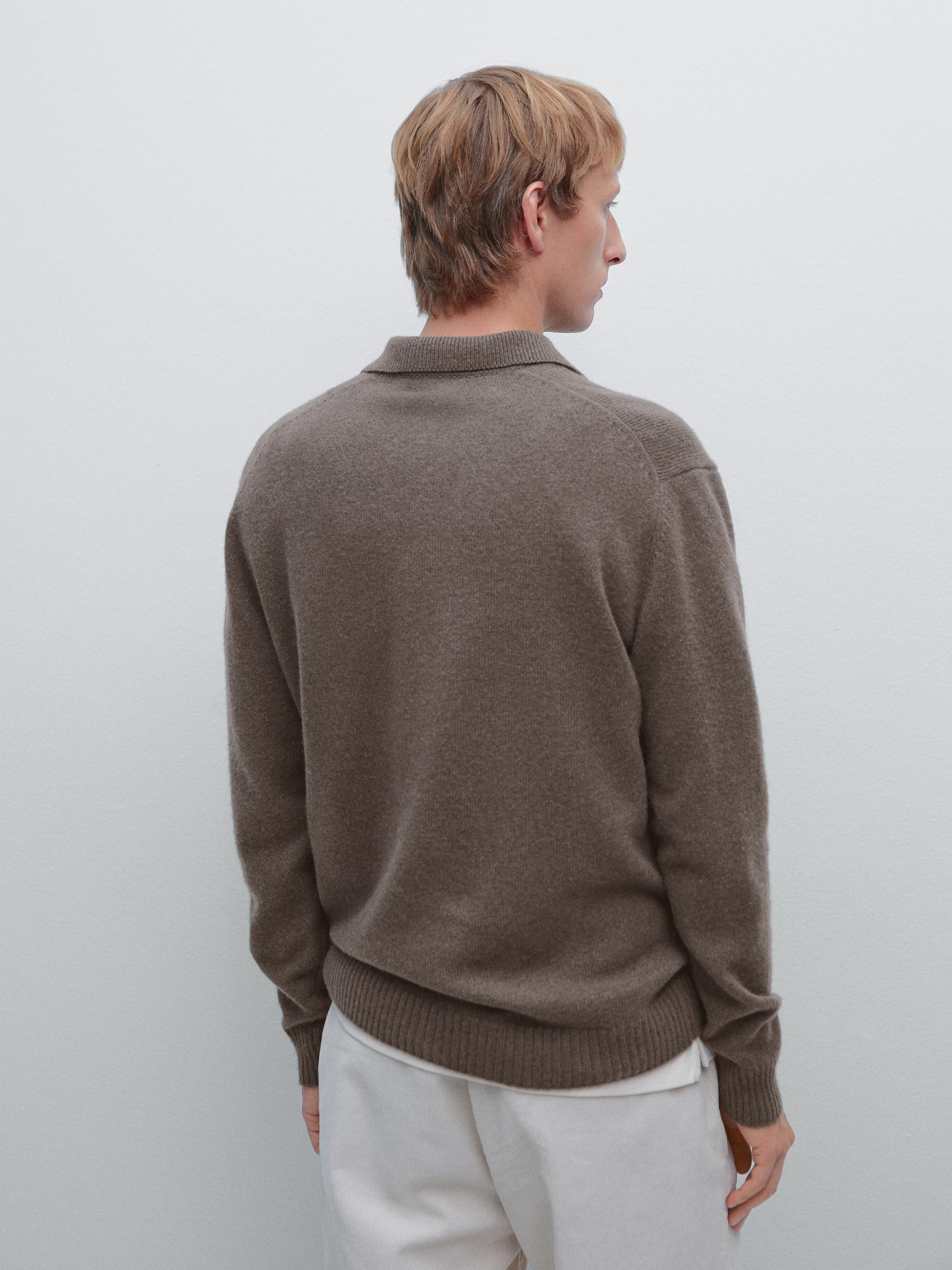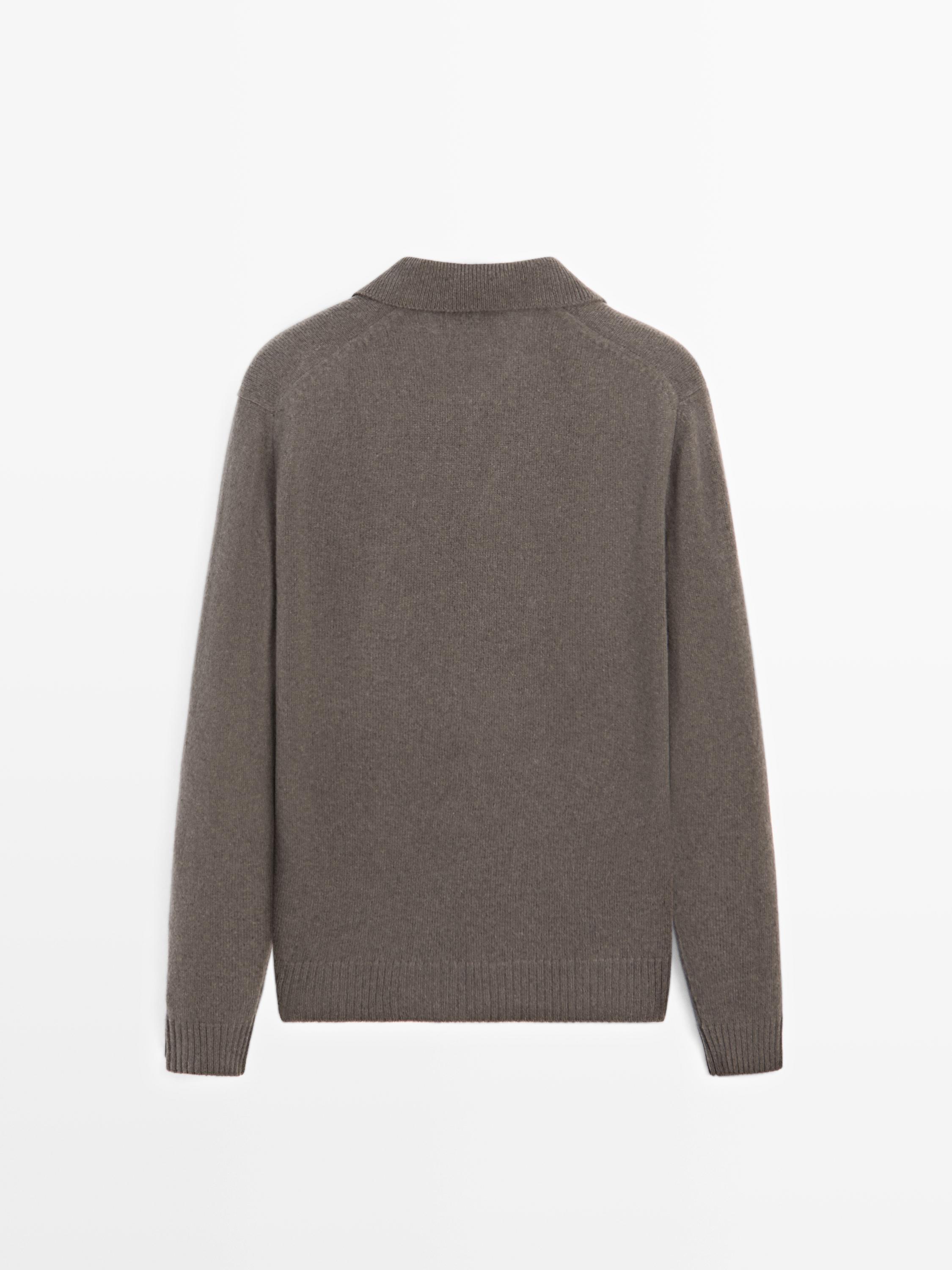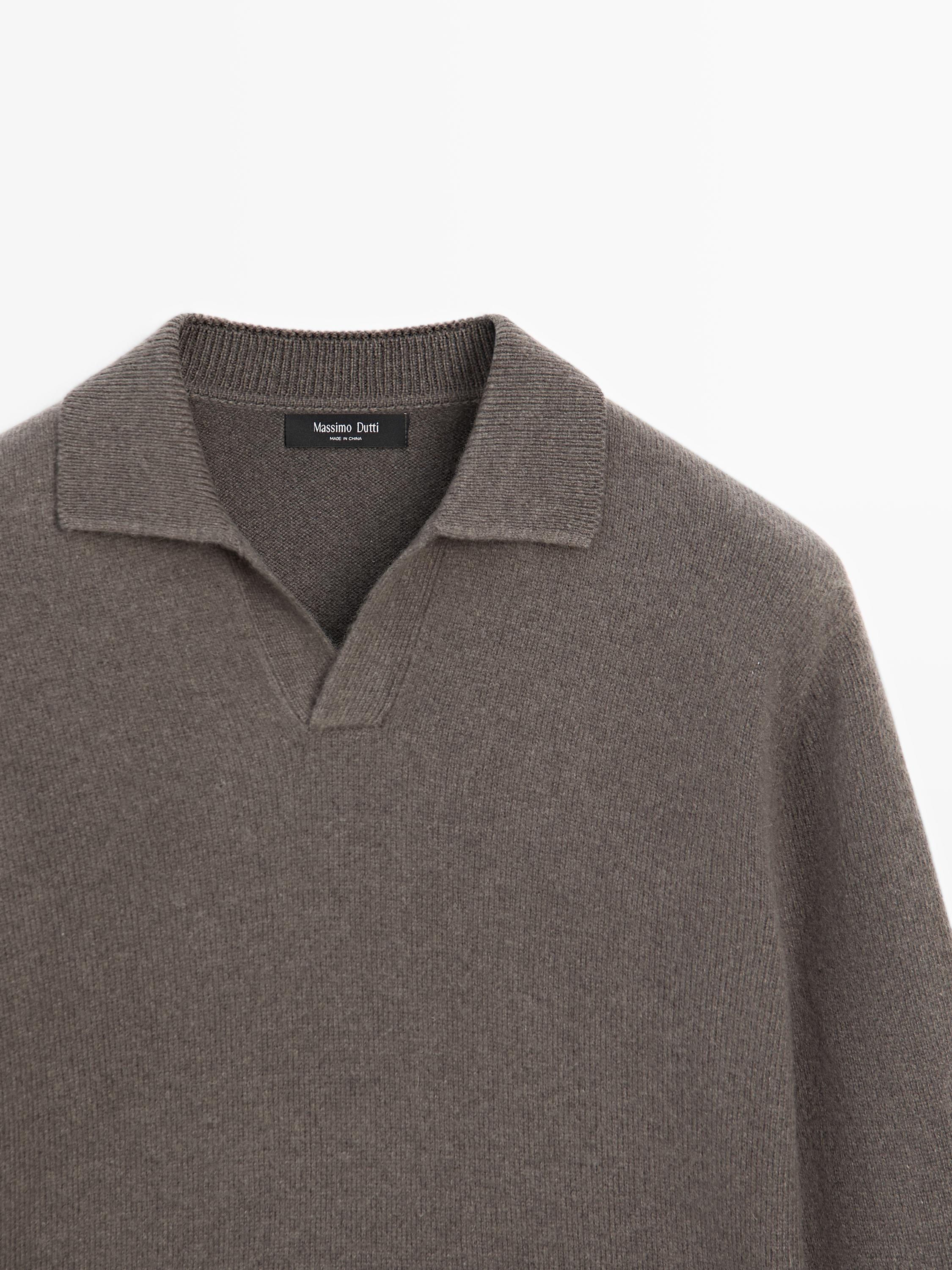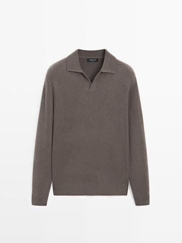 Massimo Dutti Свитер поло из смесовой шерсти с V-образным вырезом, серый