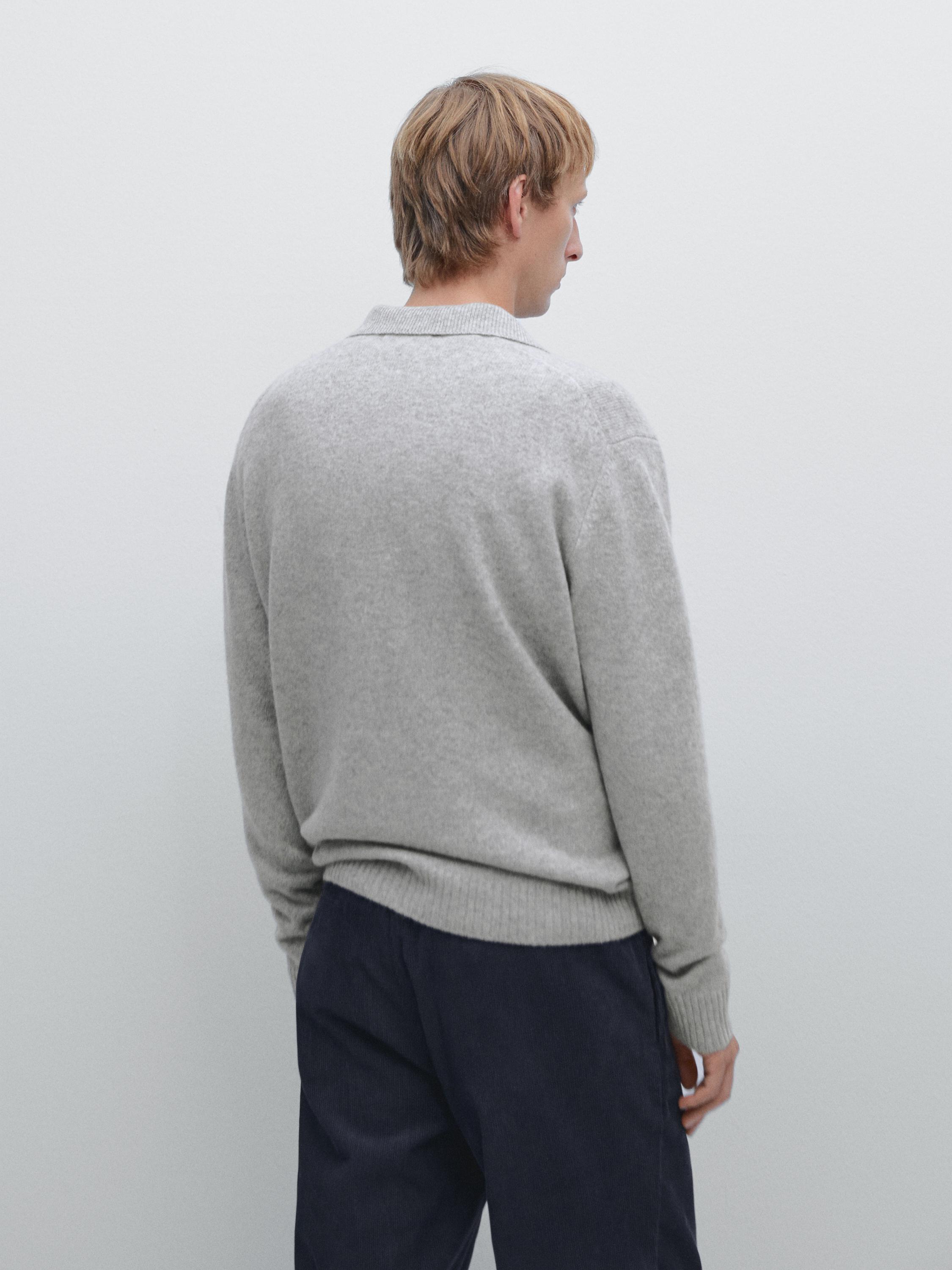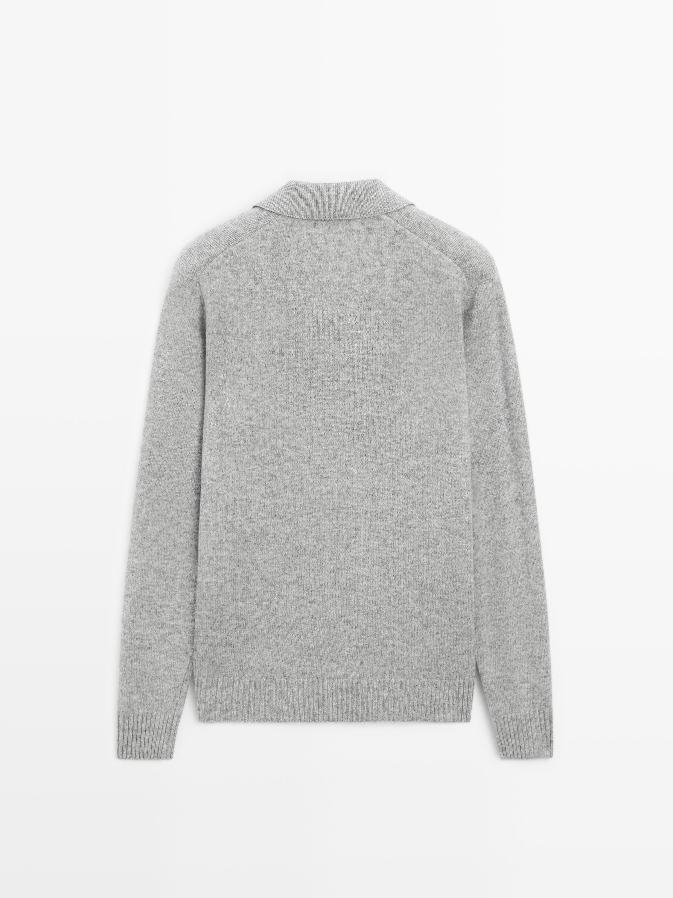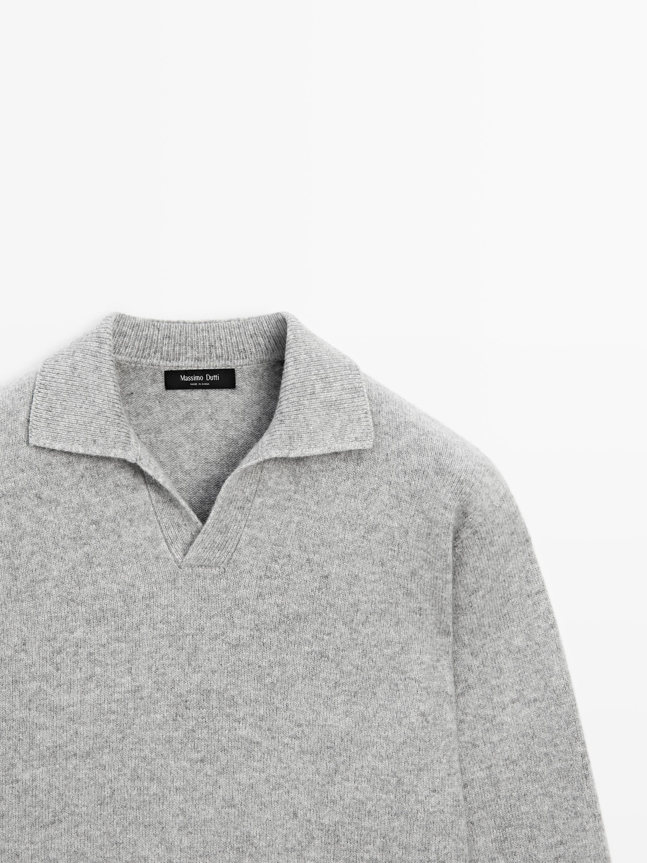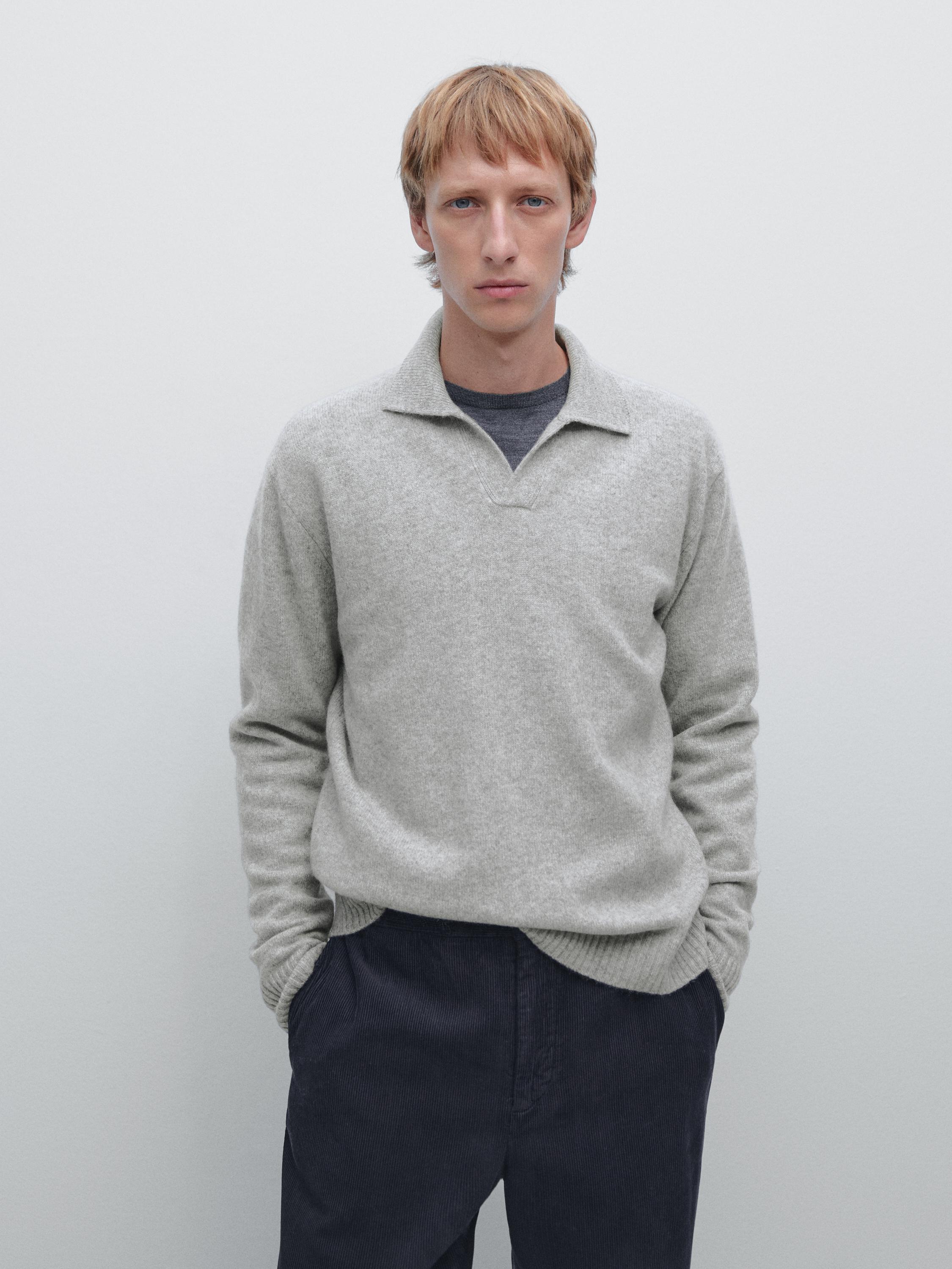 Massimo Dutti Свитер поло из смесовой шерсти с V-образным вырезом, светло-серый