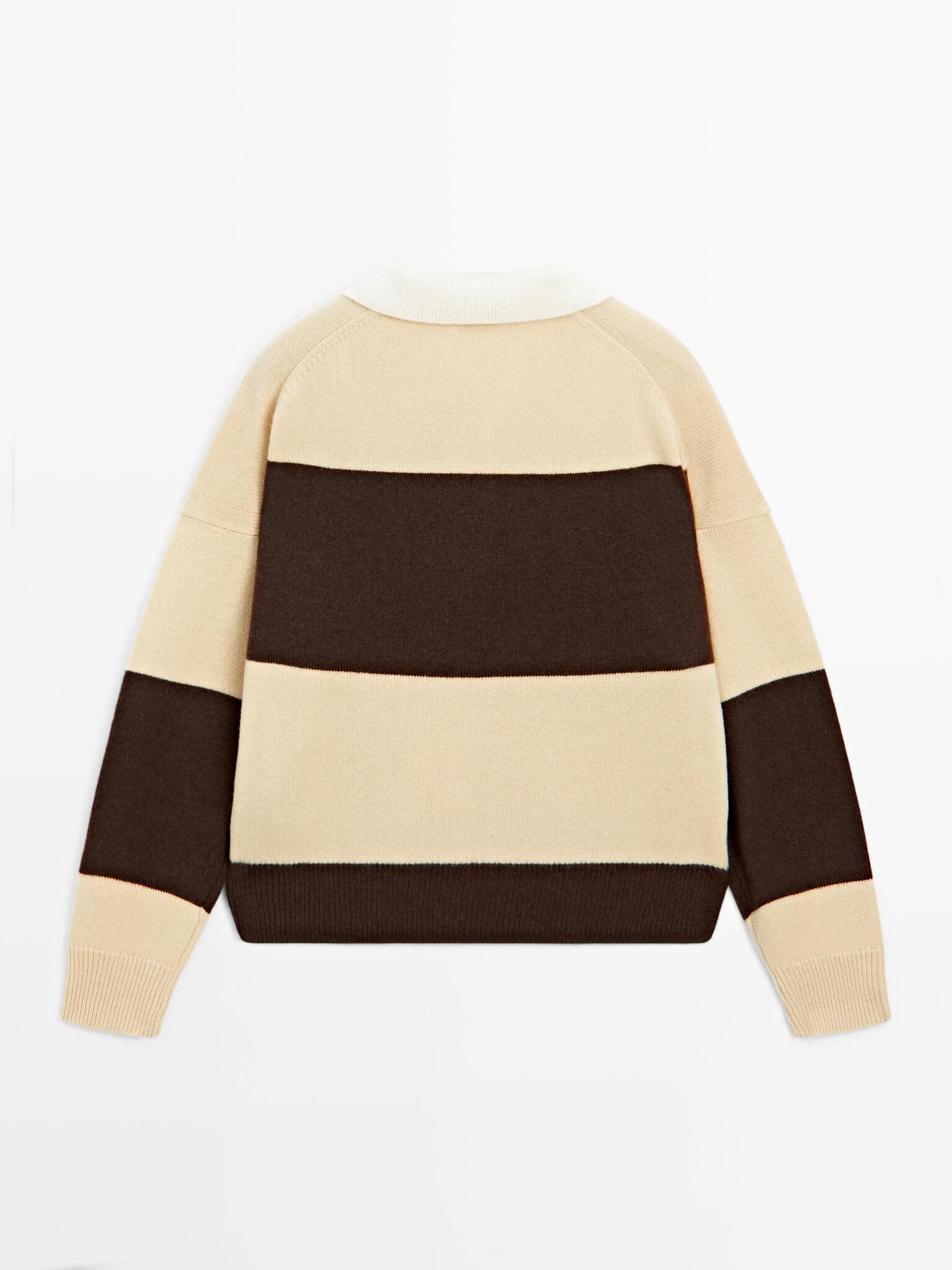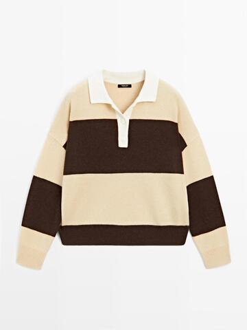 Massimo Dutti Свитер поло из смесовой шерсти в полоску, ванильный