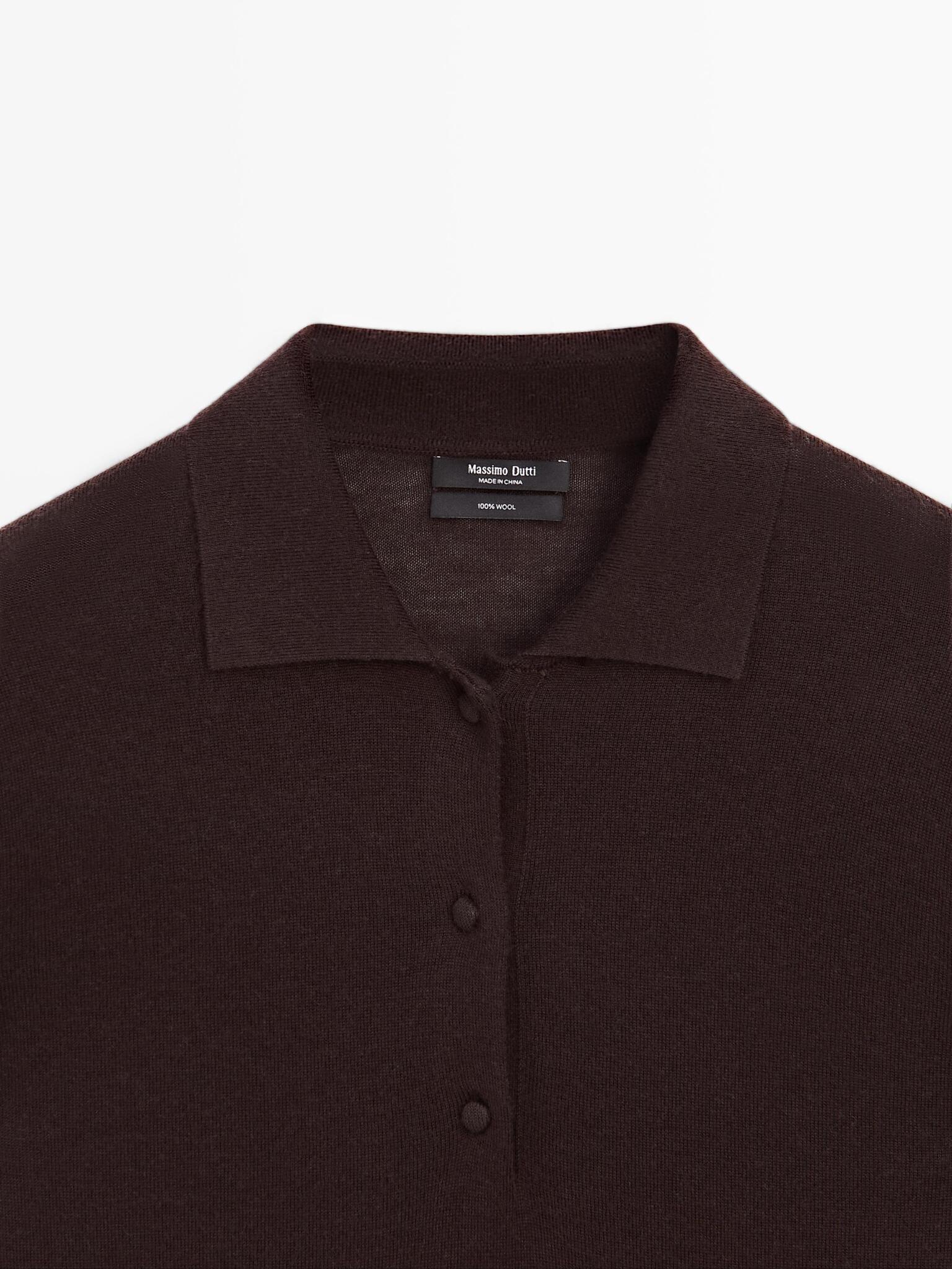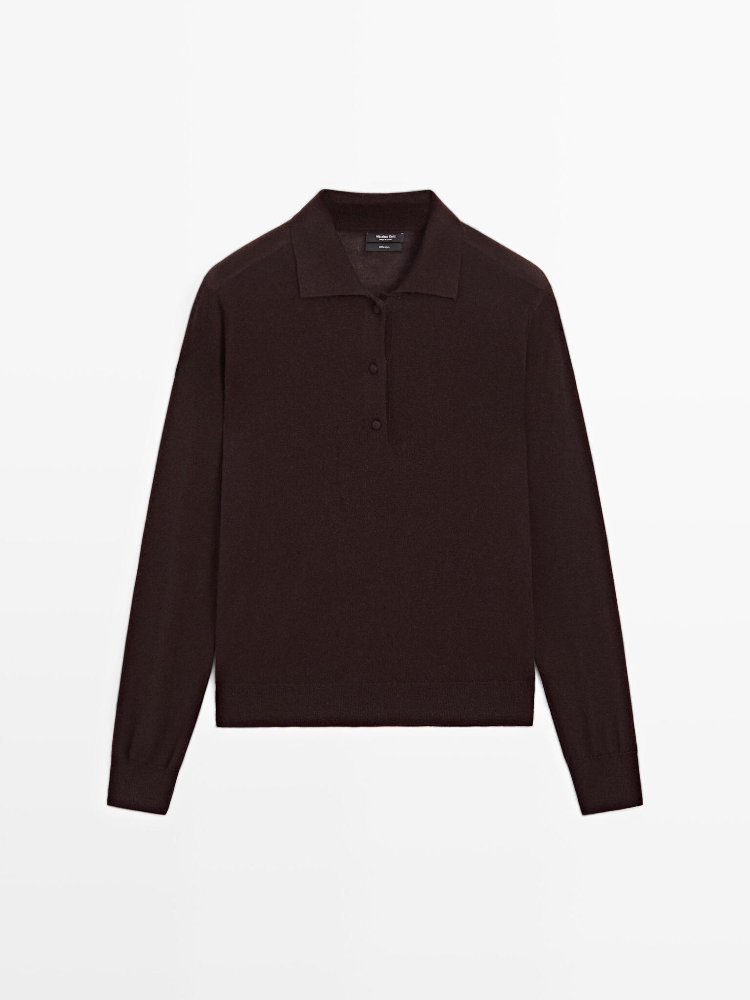 Massimo Dutti Свитер с воротником-поло, коричневый