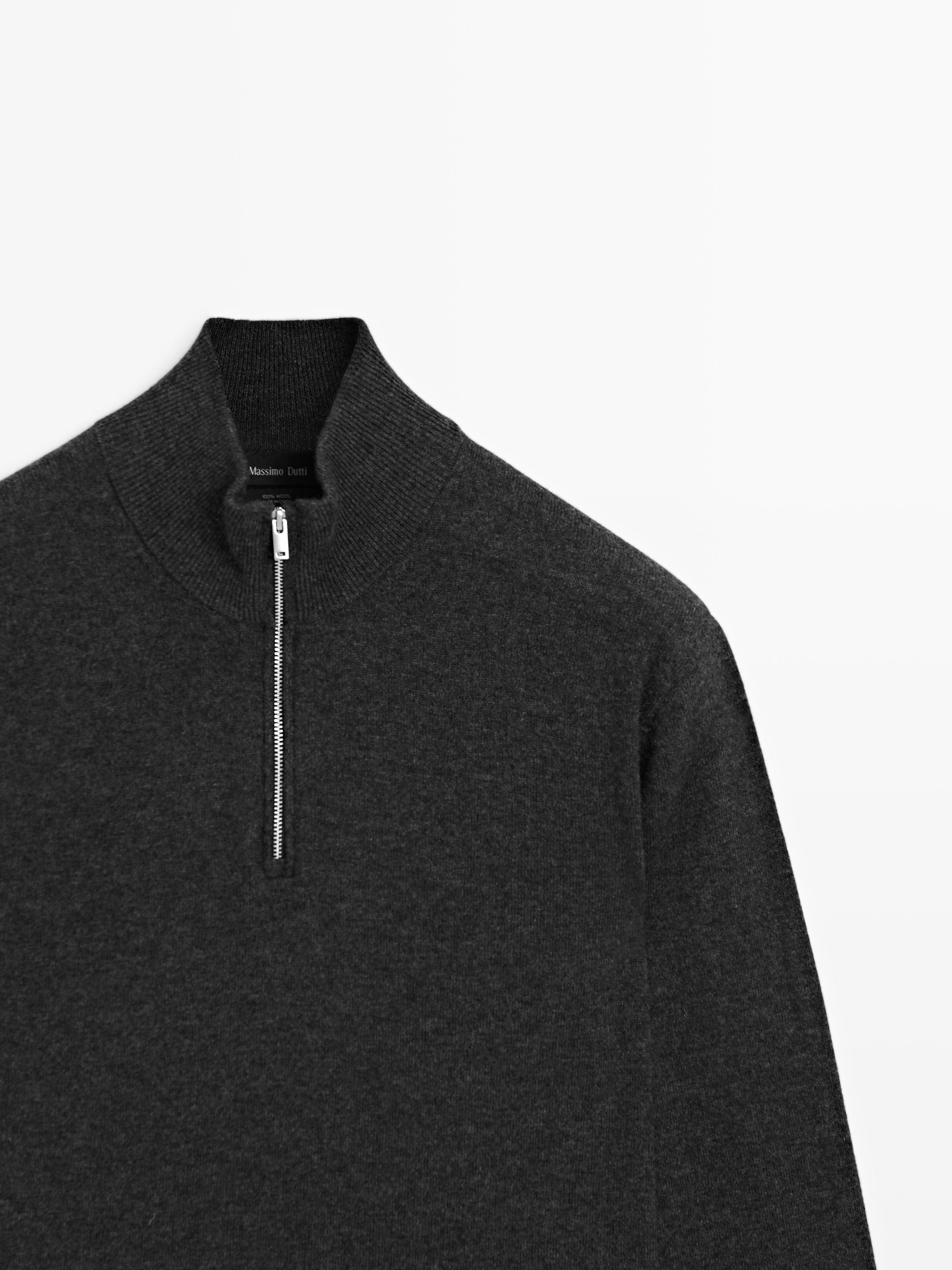 Massimo Dutti Свитер с воротником-стойкой и застежкой-молнией, маренго