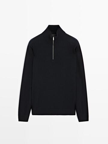 Massimo Dutti Свитер с воротником-стойкой и застежкой-молнией, темно-синий