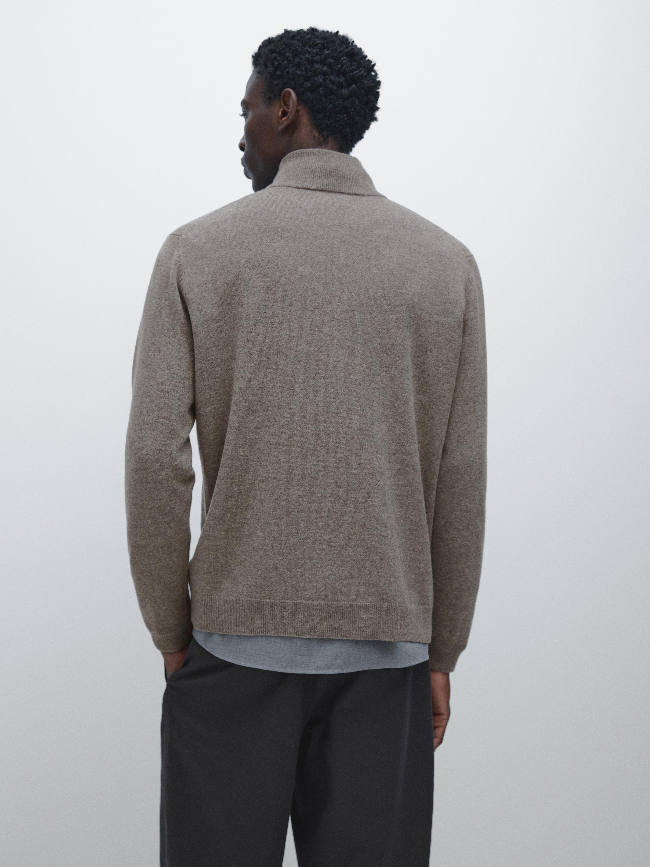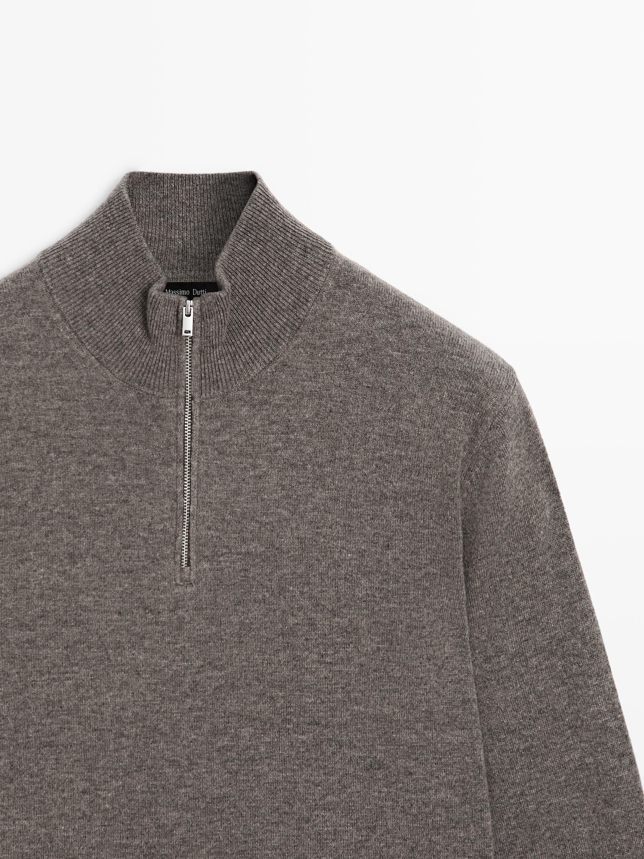 Massimo Dutti Свитер с воротником-стойкой и застежкой-молнией, темный хаки