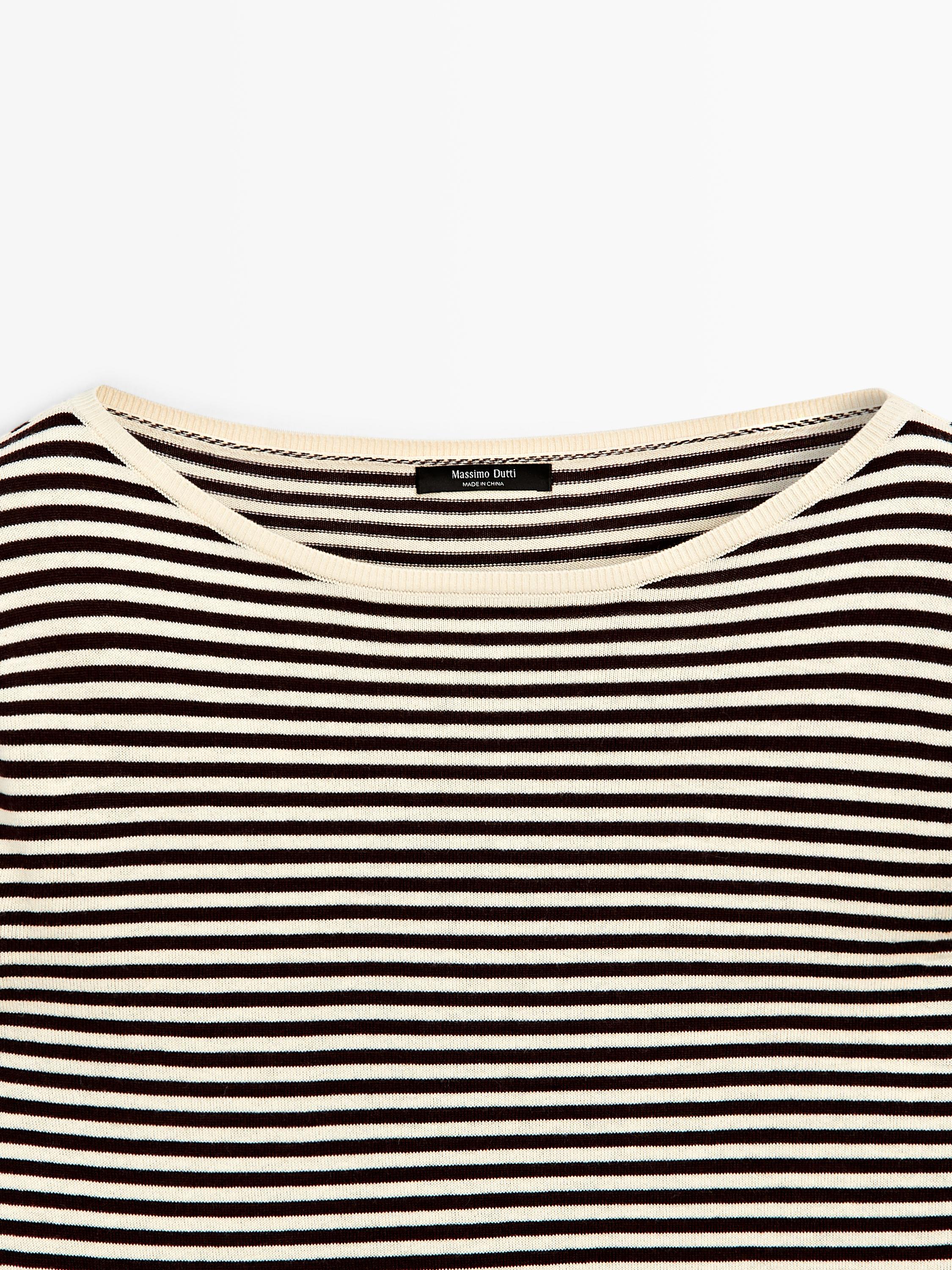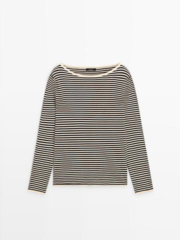 Massimo Dutti Свитер в полоску с длинными рукавами, натуральный/кремовый