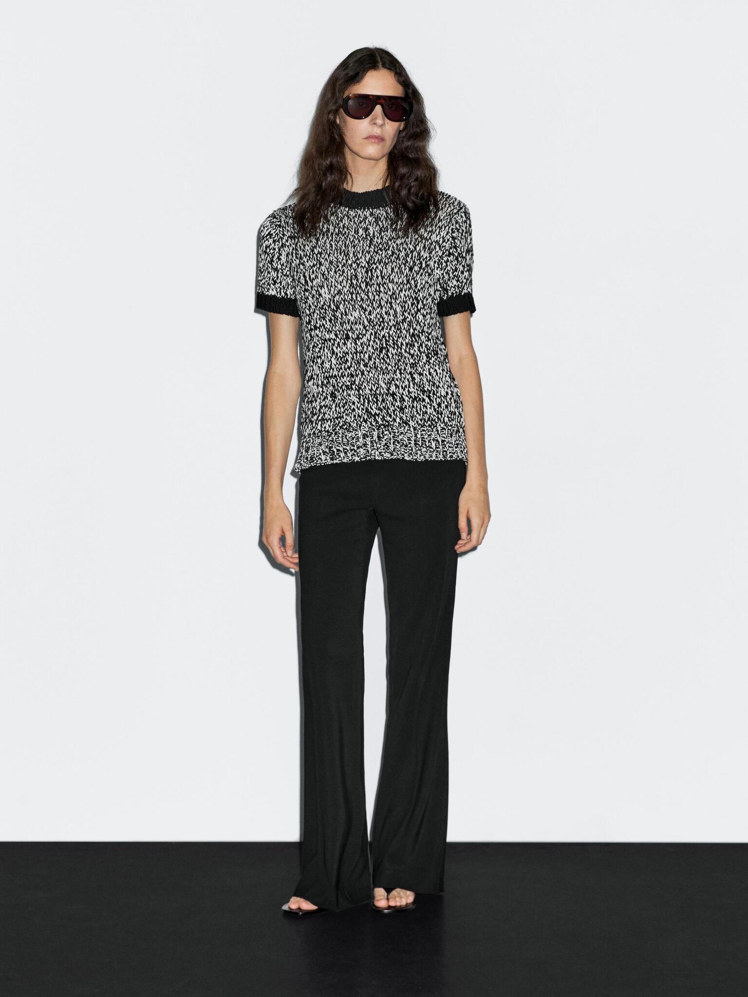 Massimo Dutti Свитер в рубчик с короткими рукавами, черный