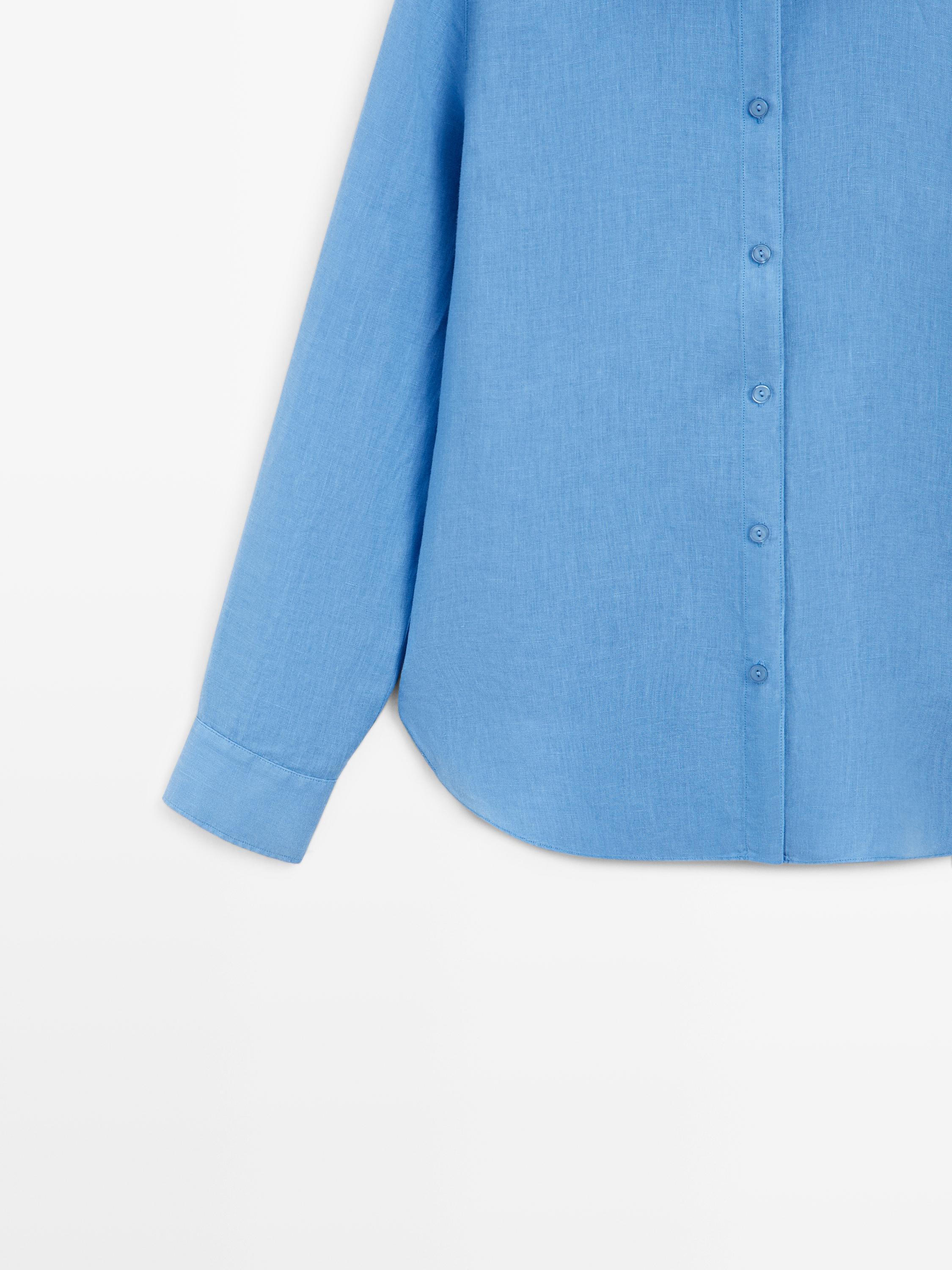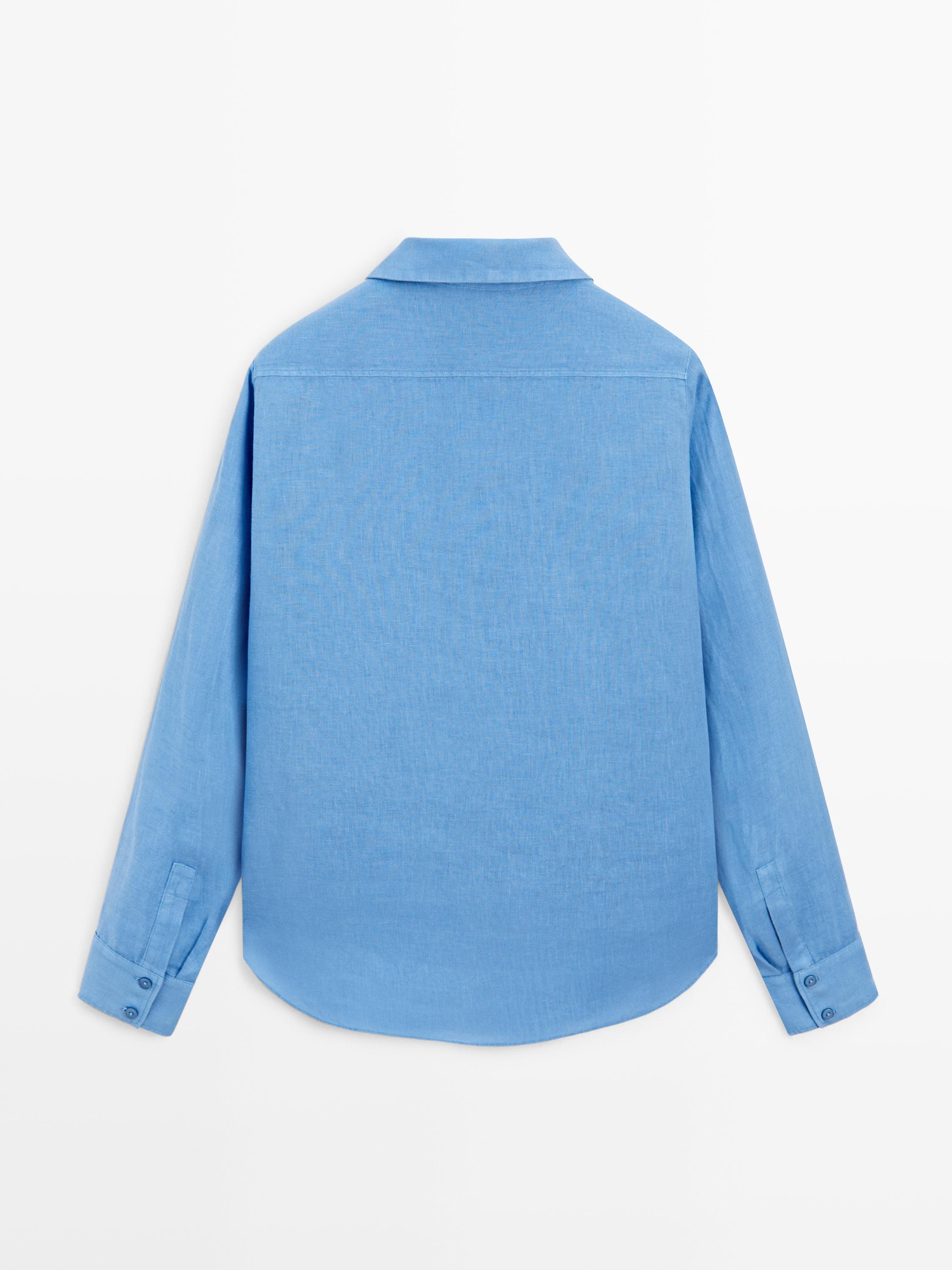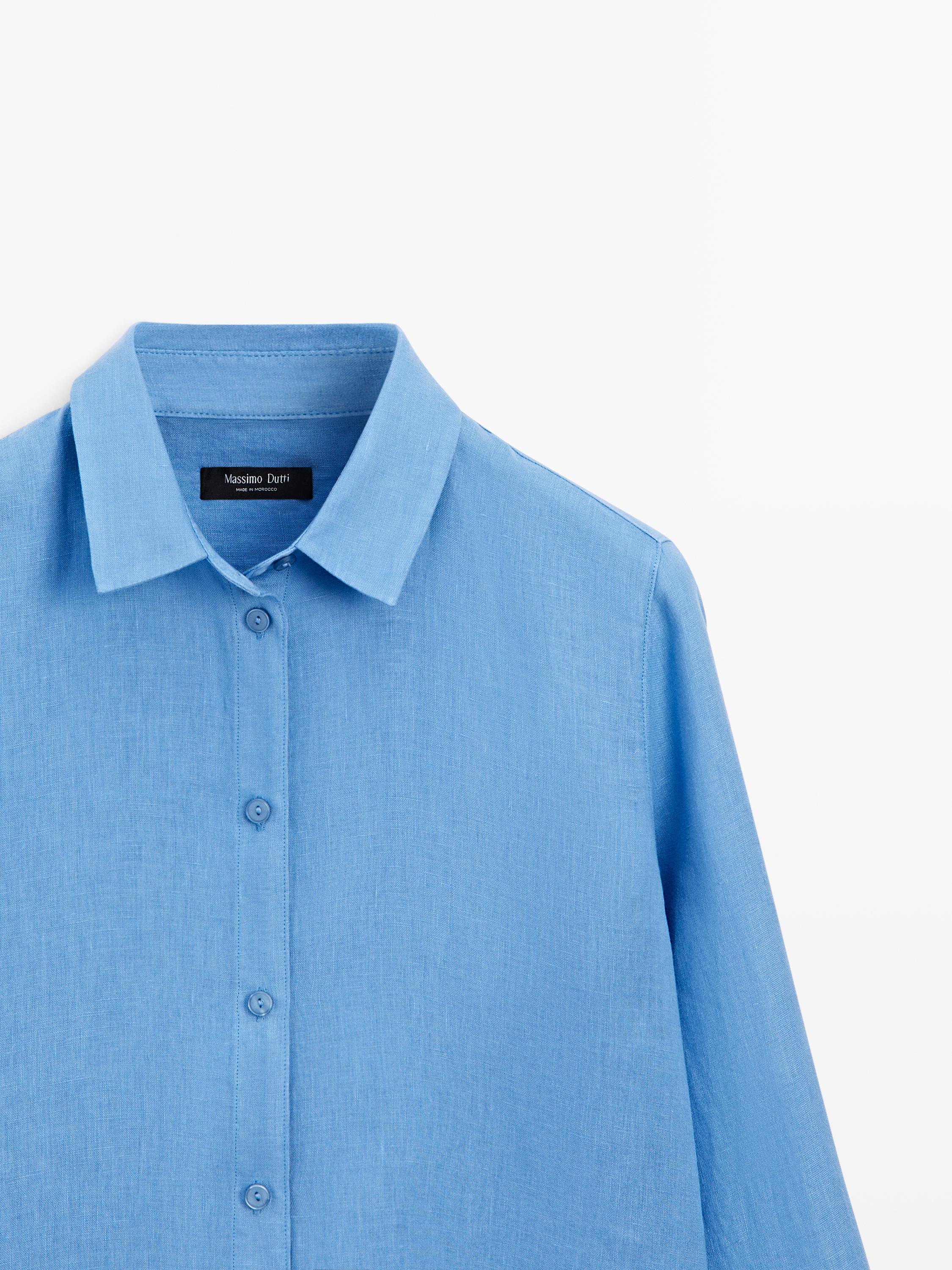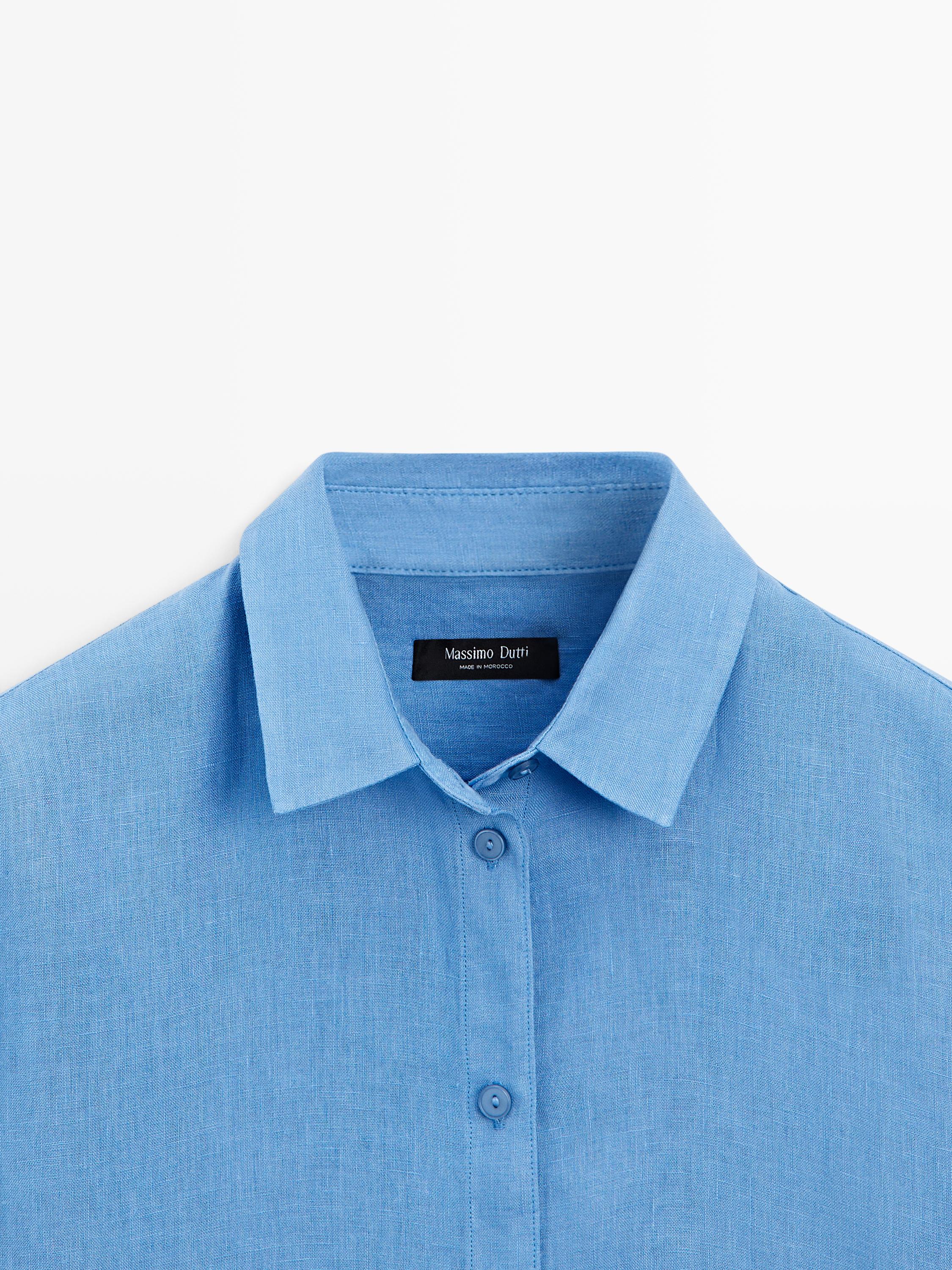 Massimo Dutti Свободная рубашка из 100% льна, индиго