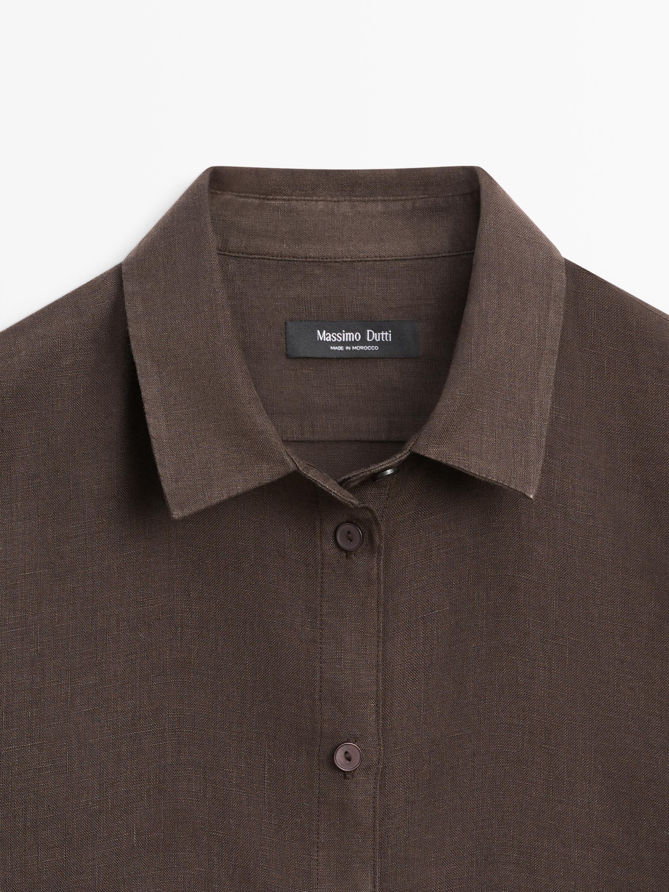 Massimo Dutti Свободная рубашка из 100% льна, коричневый