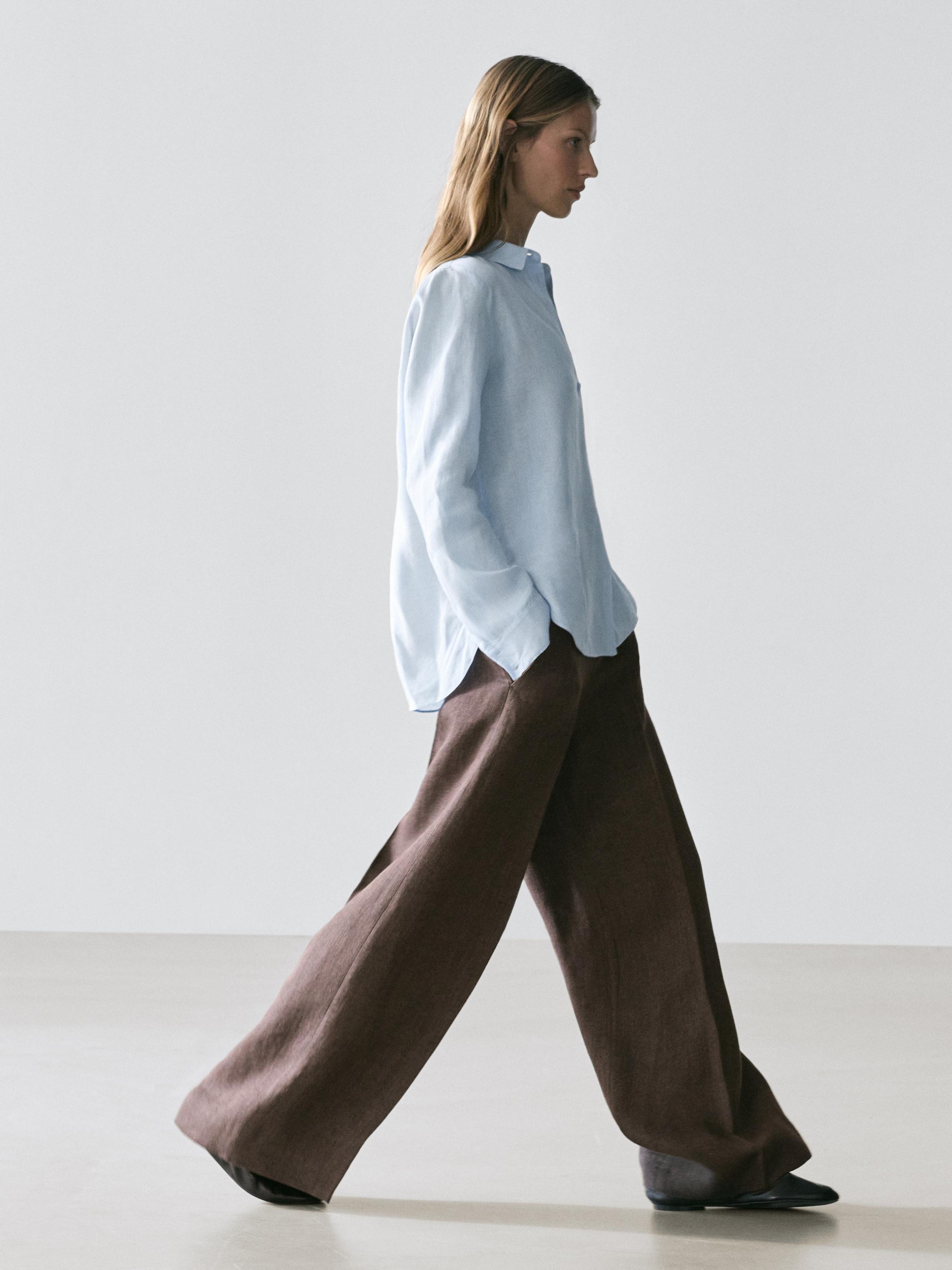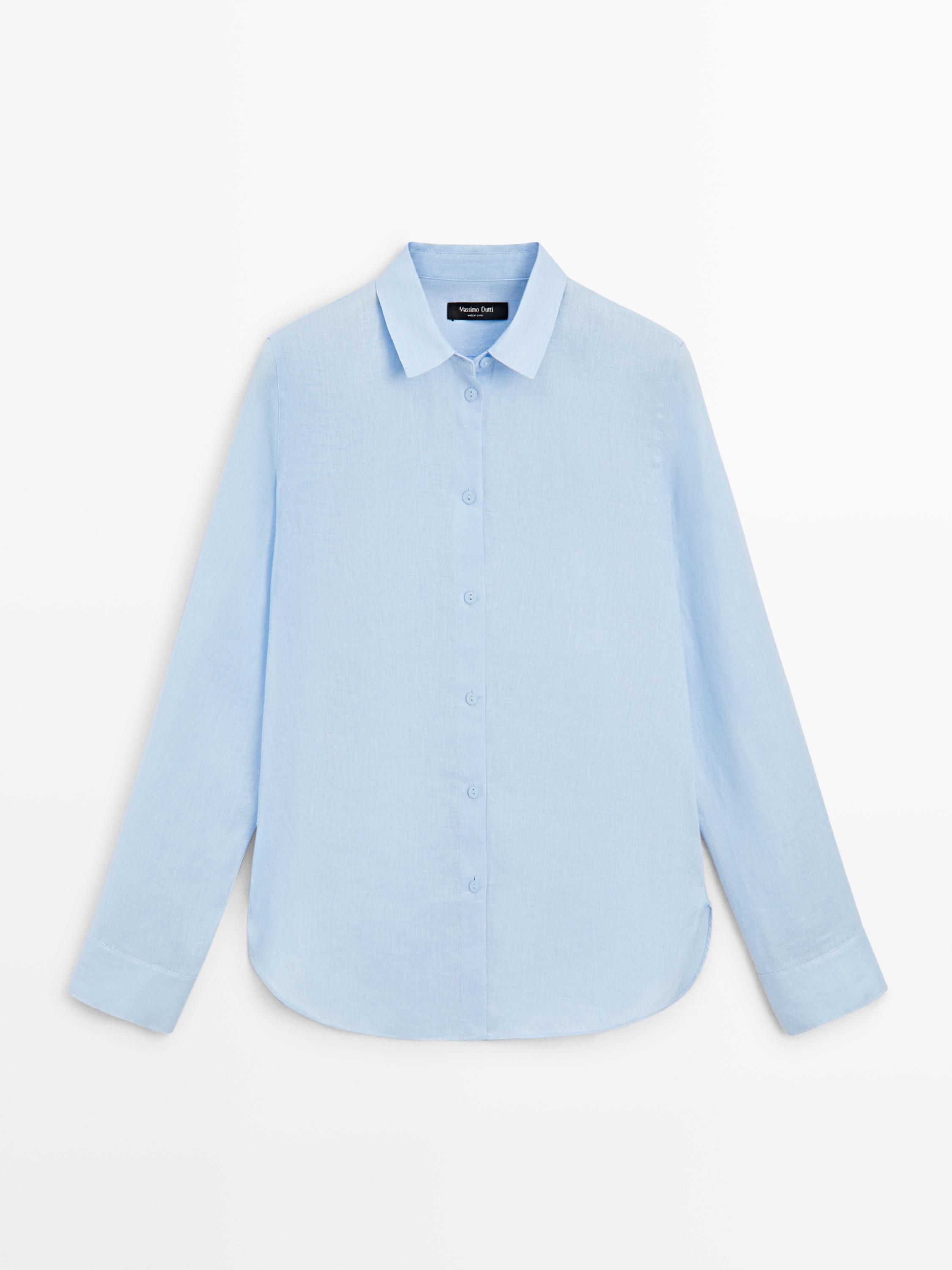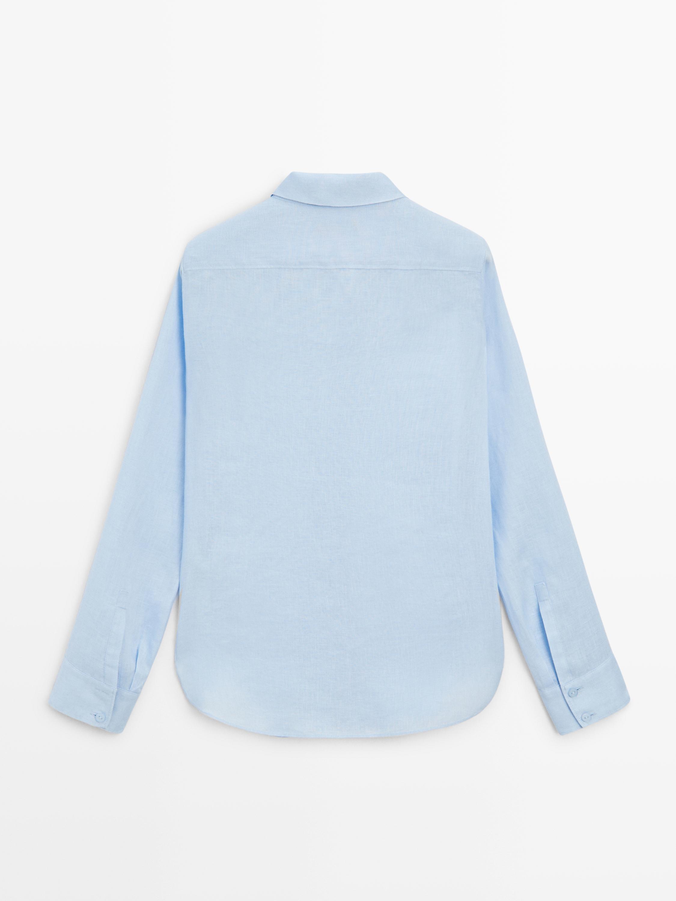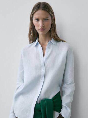 Massimo Dutti Свободная рубашка из 100% льна, небесно-голубой