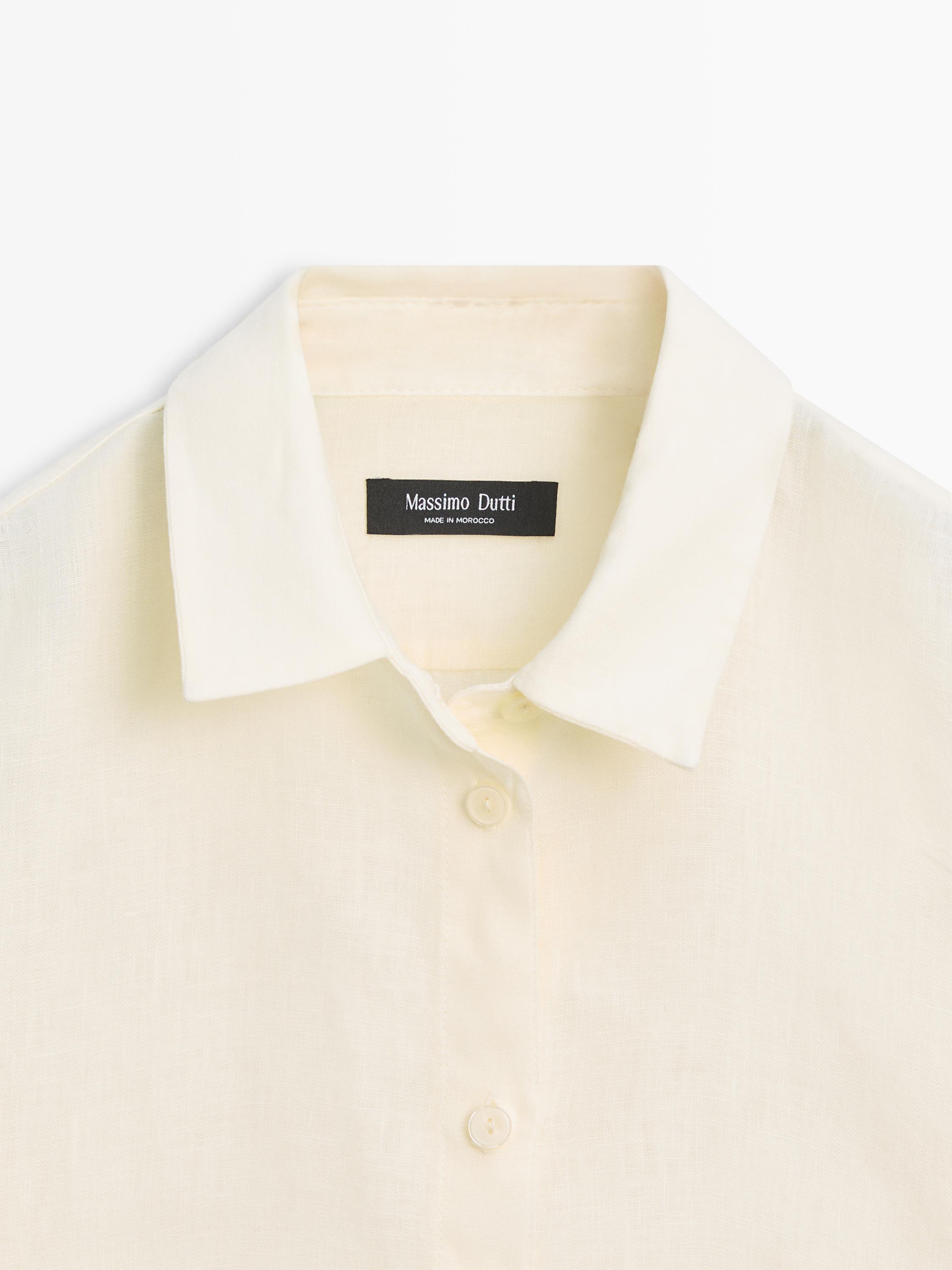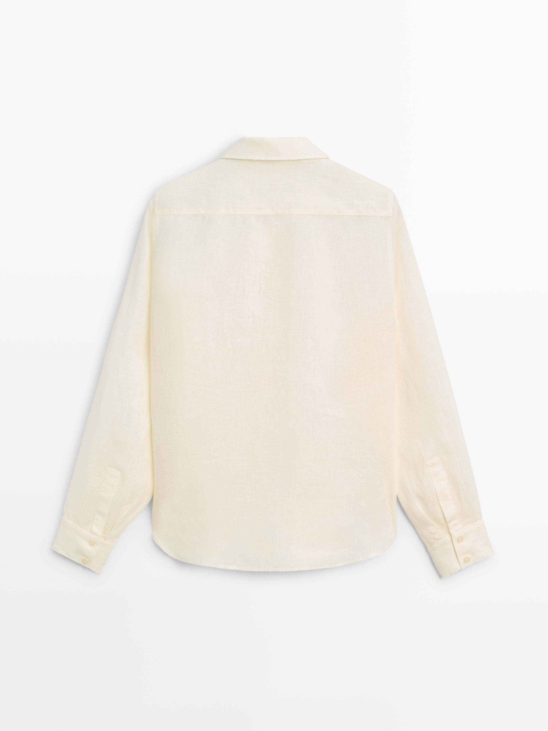 Рубашка из 100% льна. Длинные рукава с манжетами на пуговицах. Рубашечный воротник. Застежка на пуговицы спереди.