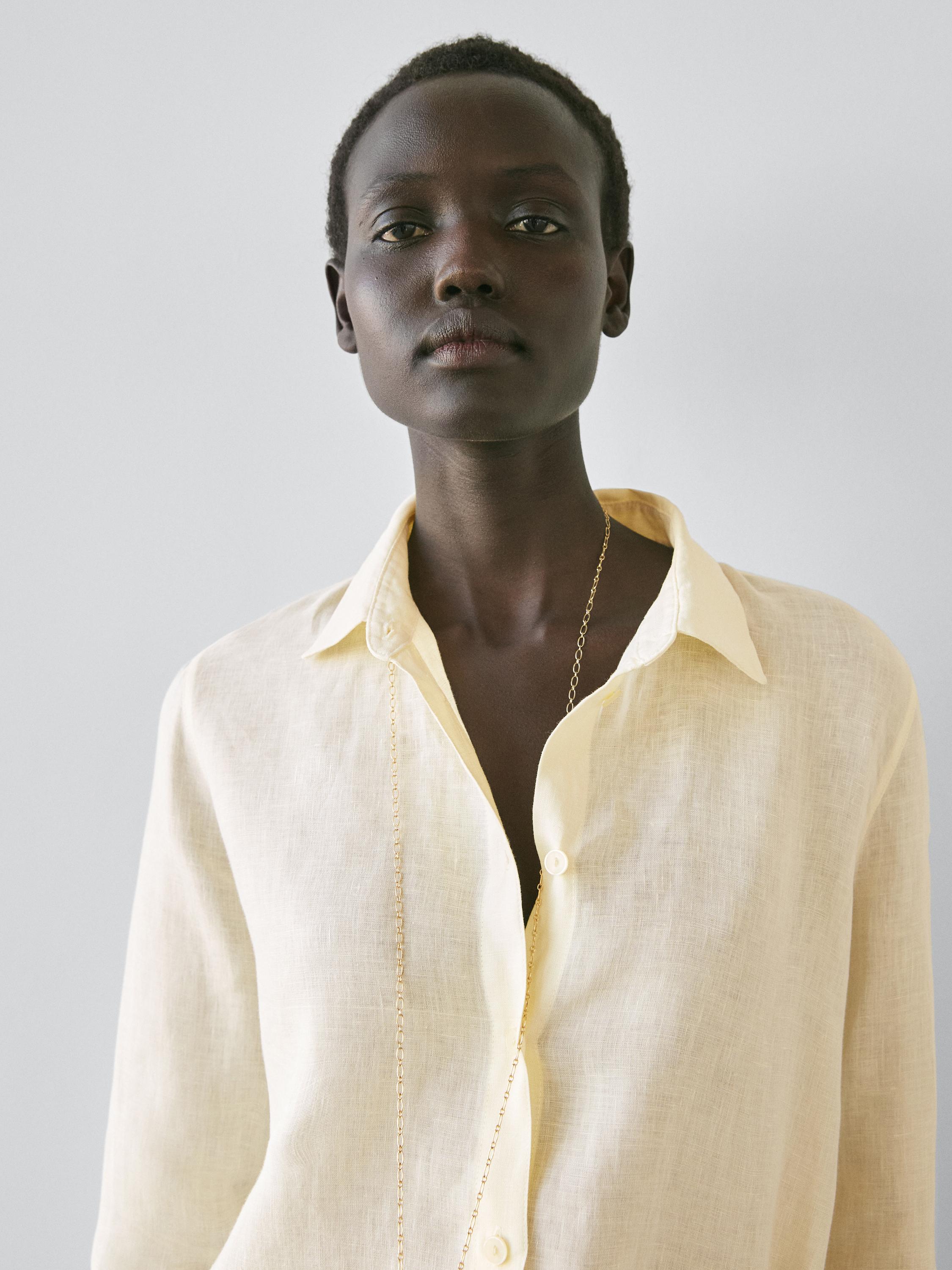 Massimo Dutti Свободная рубашка из 100% льна, желтый