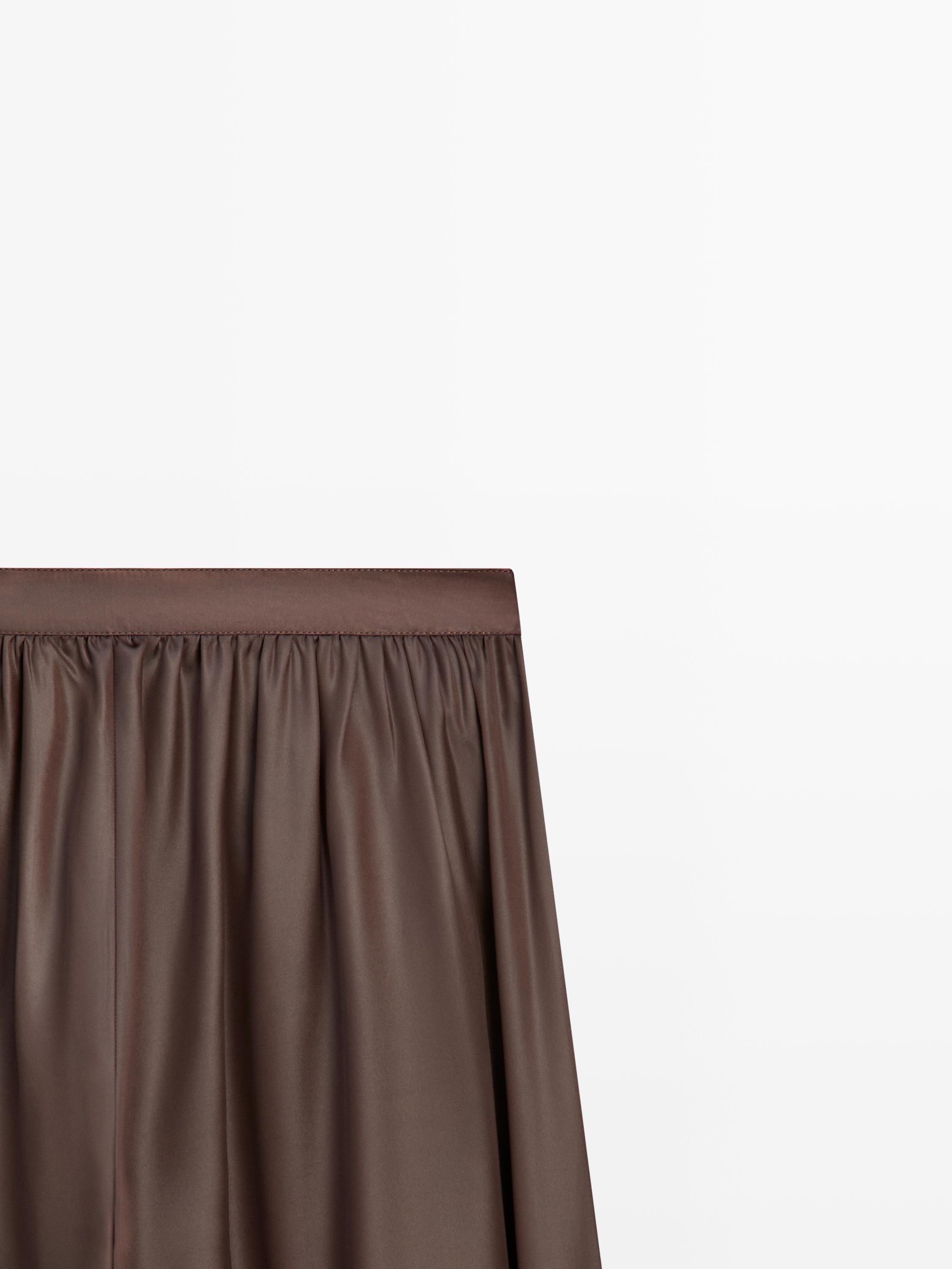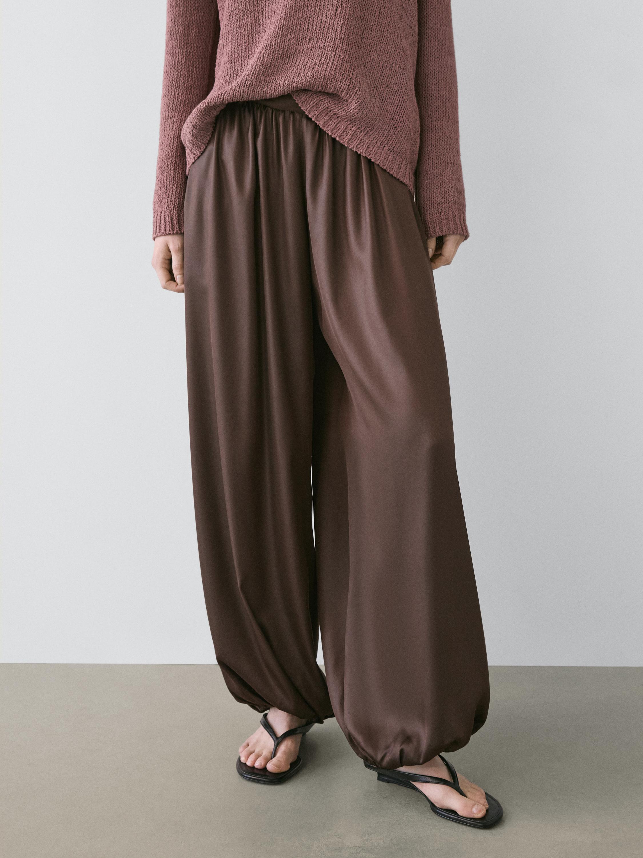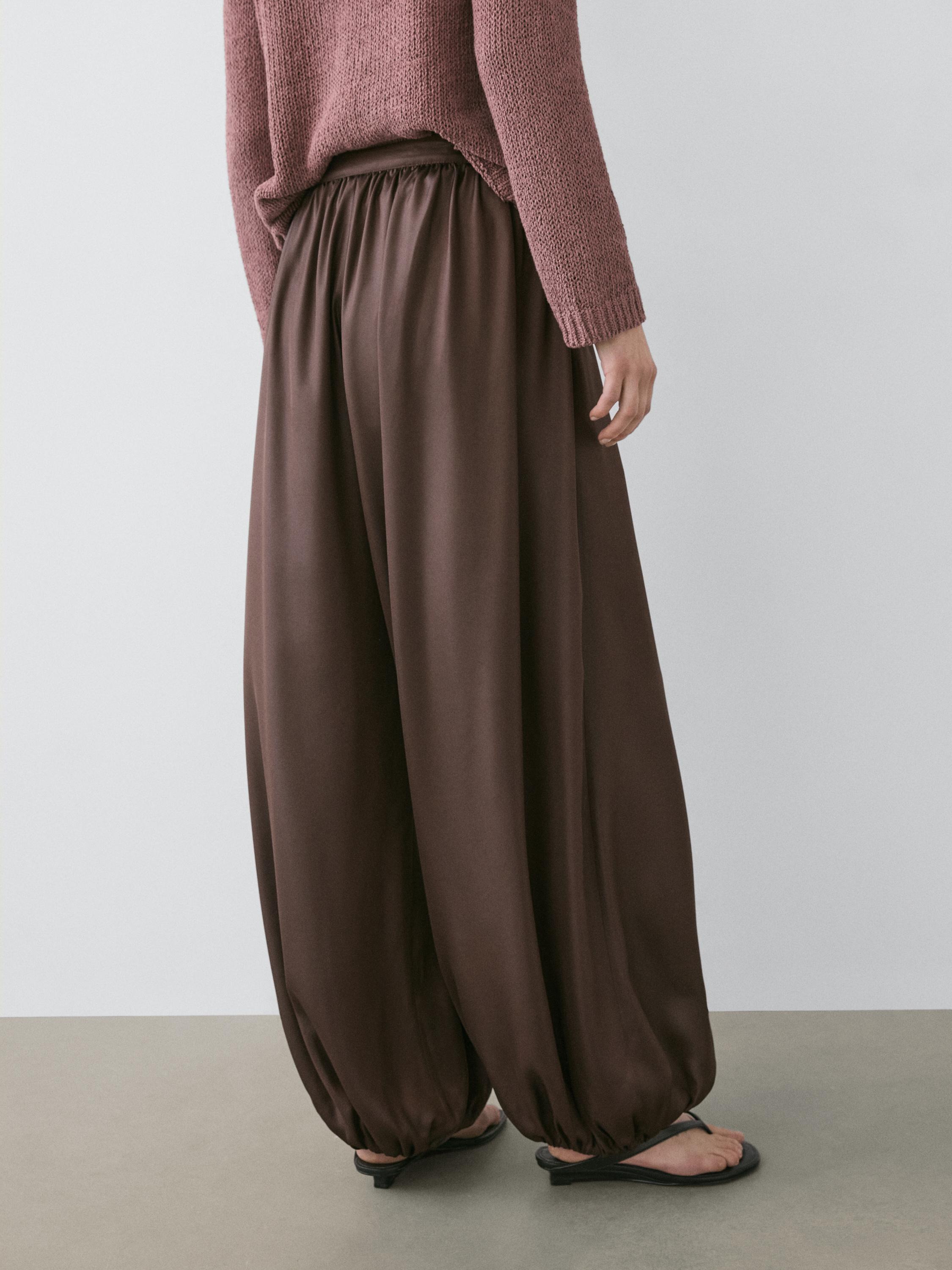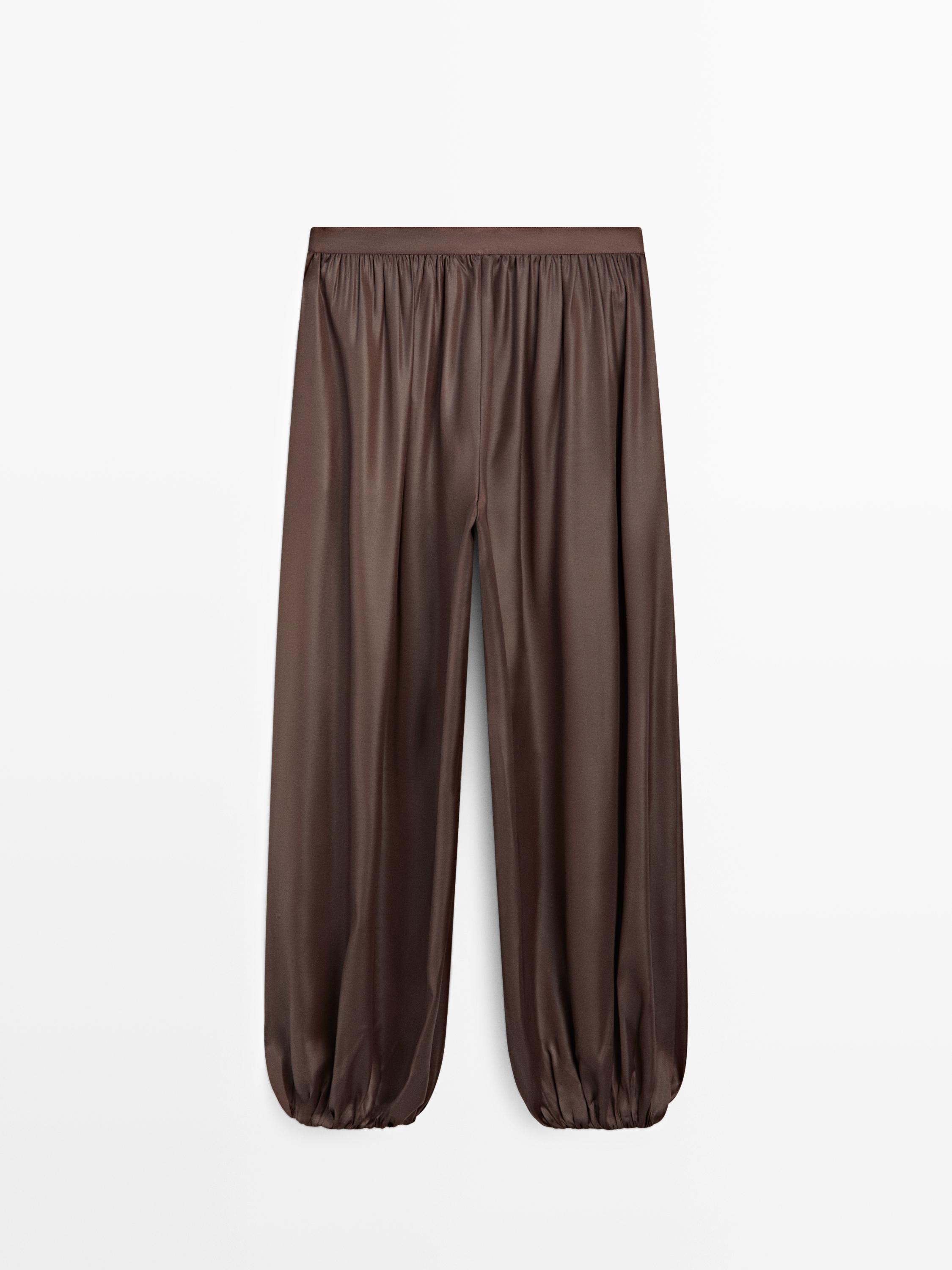 Massimo Dutti Свободные атласные брюки-баллон, коричневый