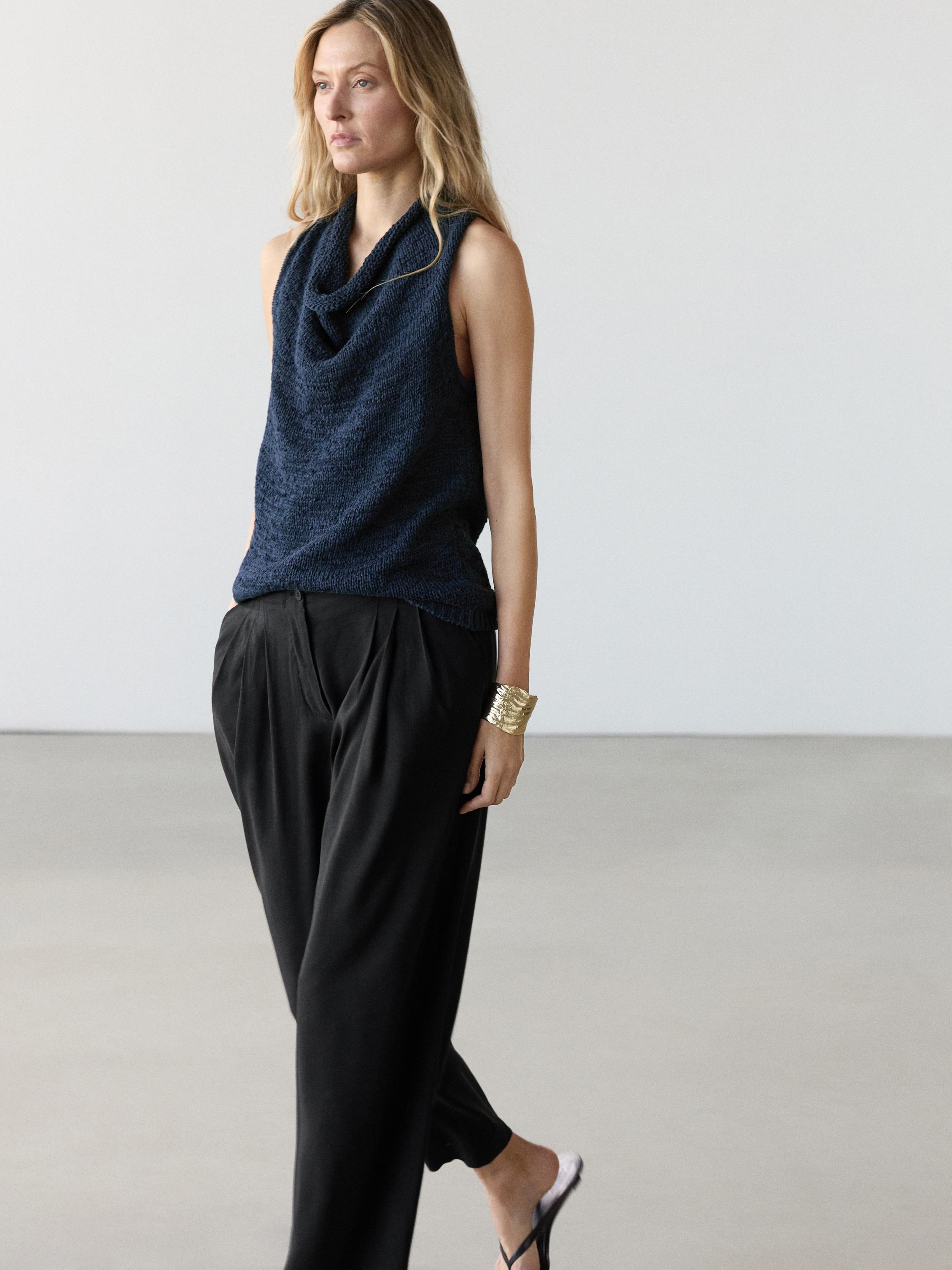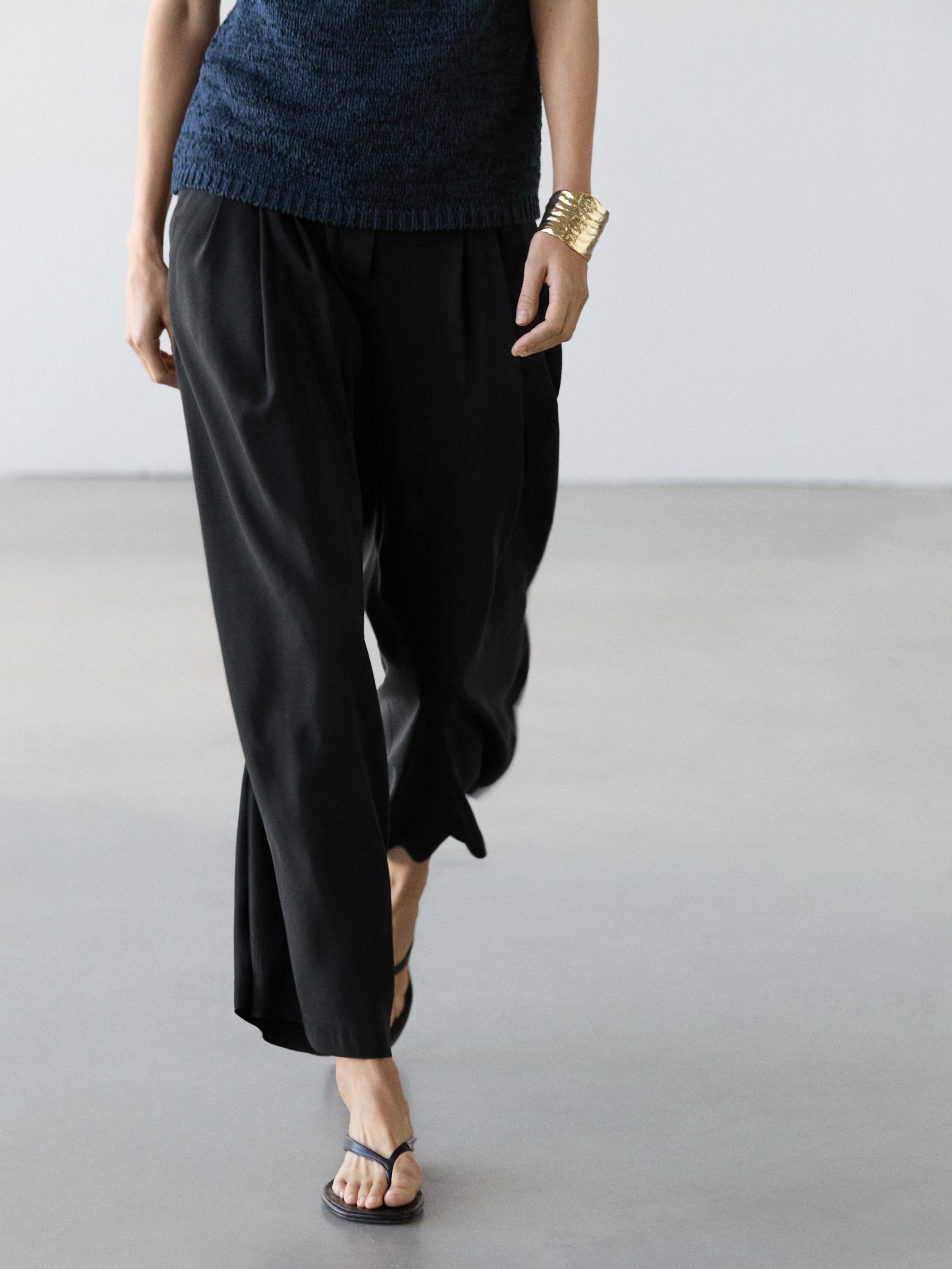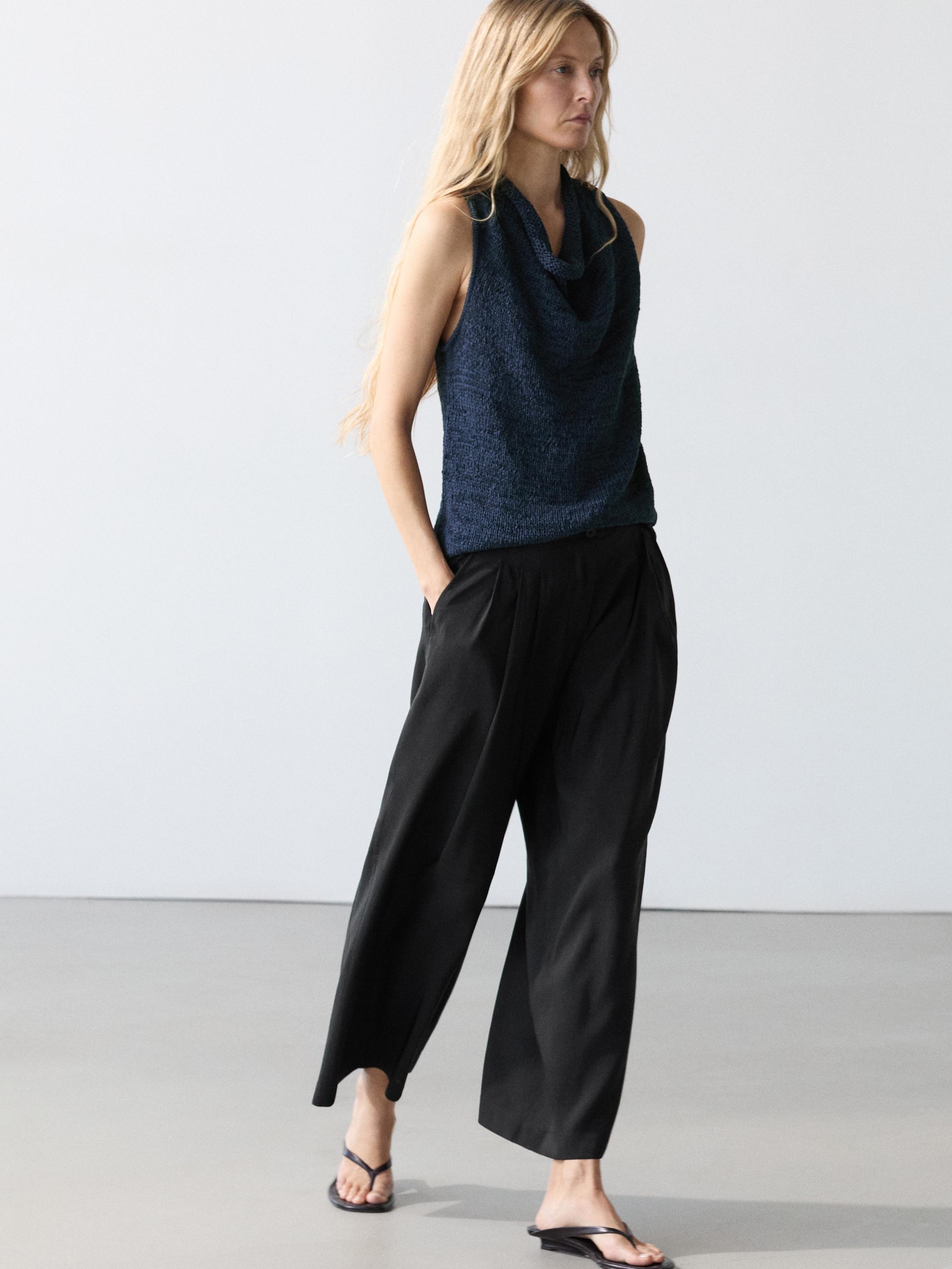 Massimo Dutti Свободные брюки из смесовой льняной ткани, черный