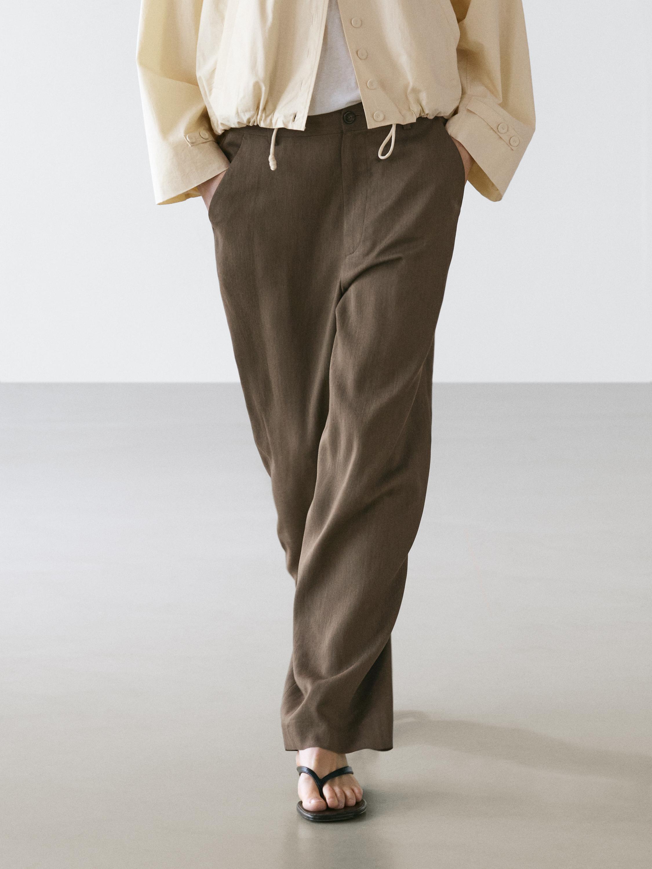Massimo Dutti Свободные брюки с эластичным поясом, темно-зеленый