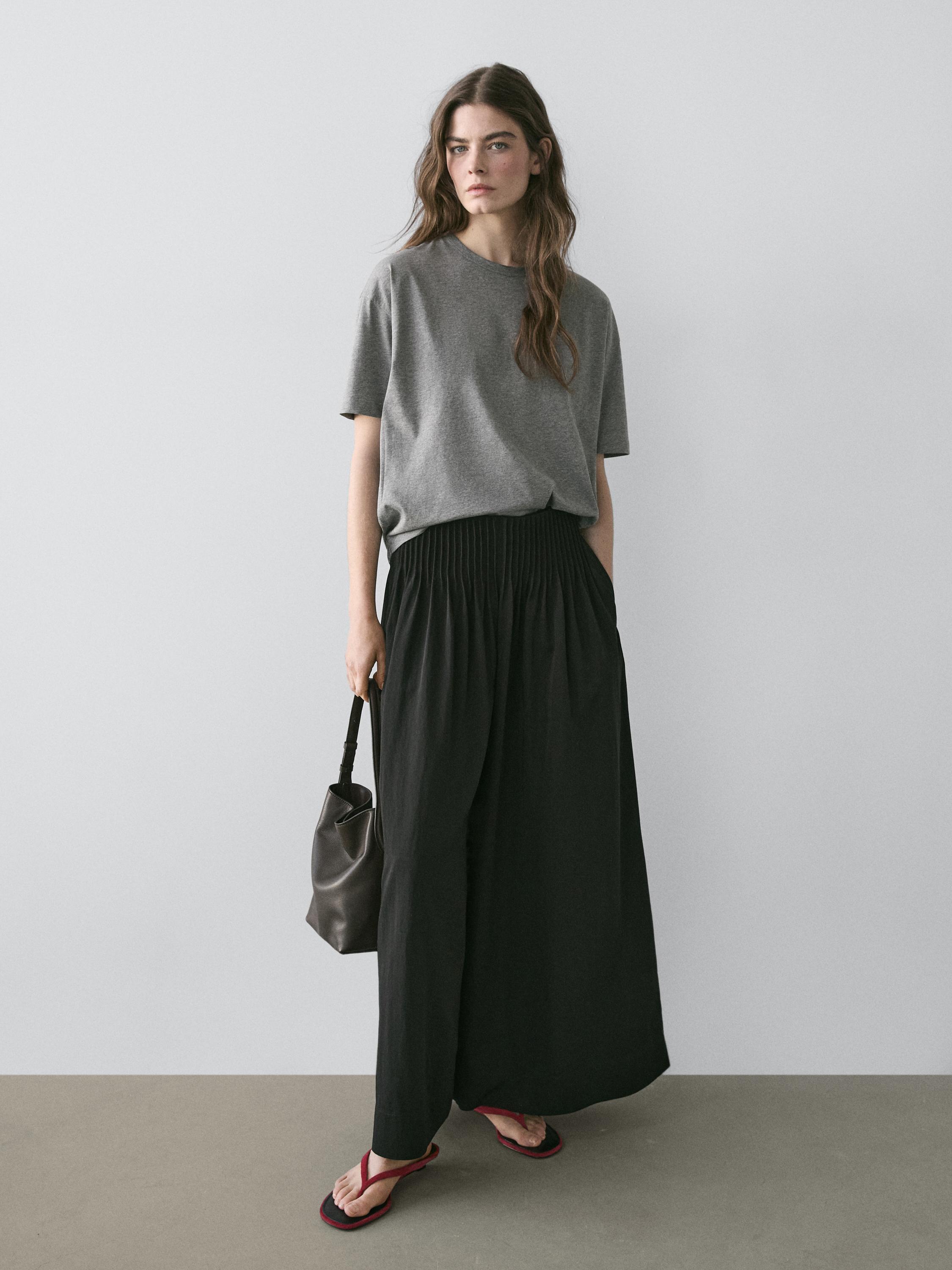 Massimo Dutti Свободные брюки с широкими штанинами, черный
