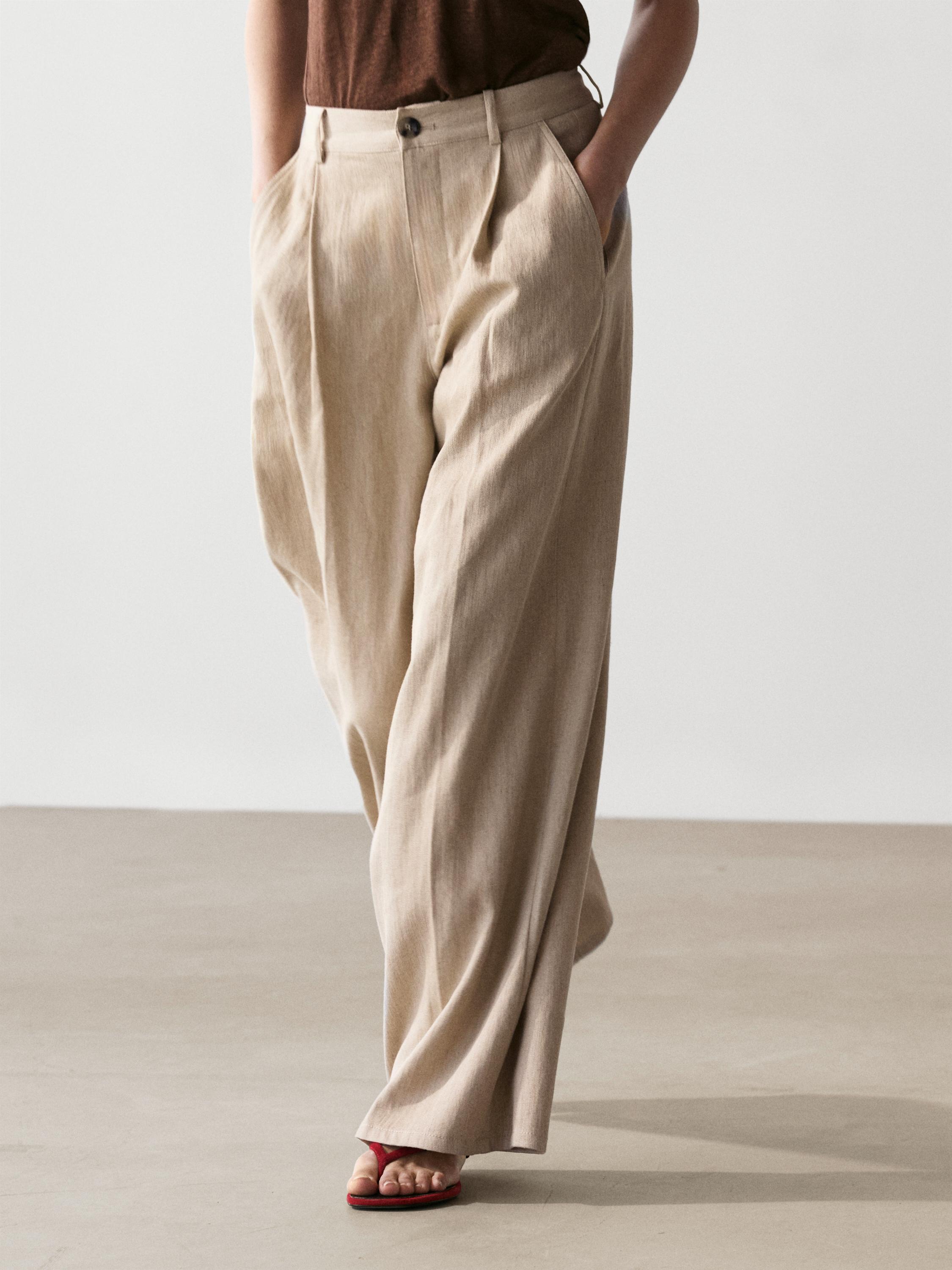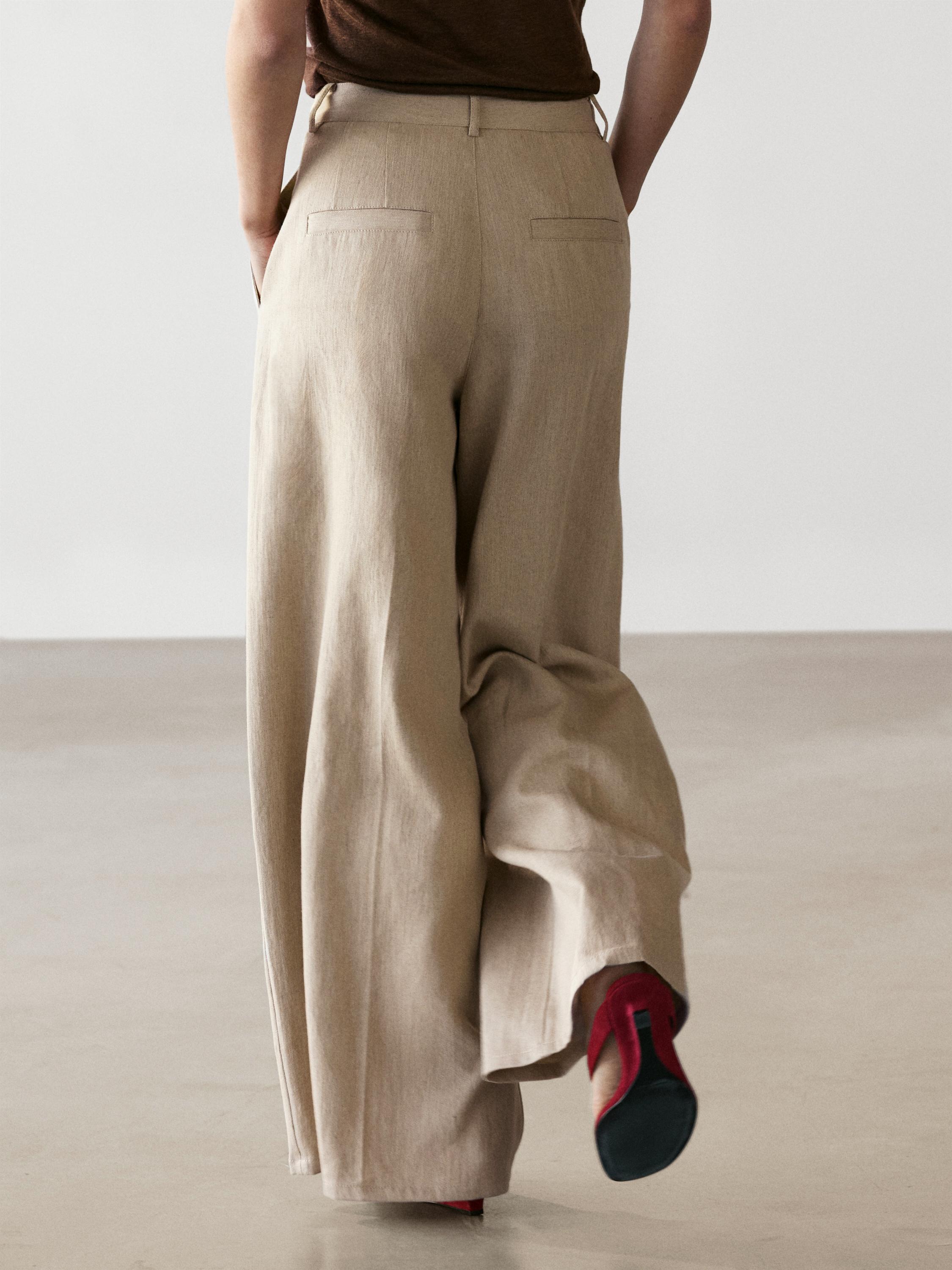 Massimo Dutti Свободные брюки с высокой талией, песочный