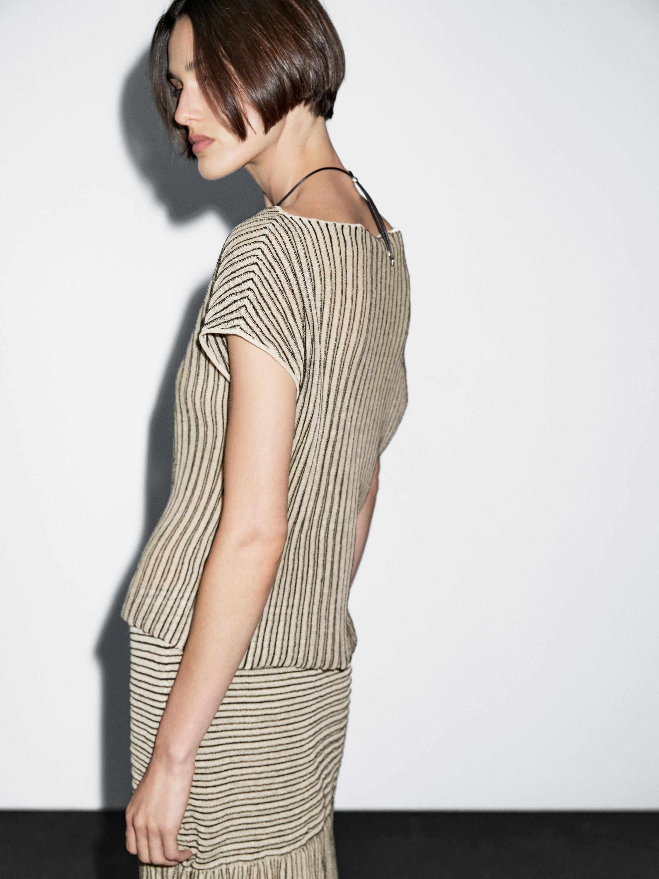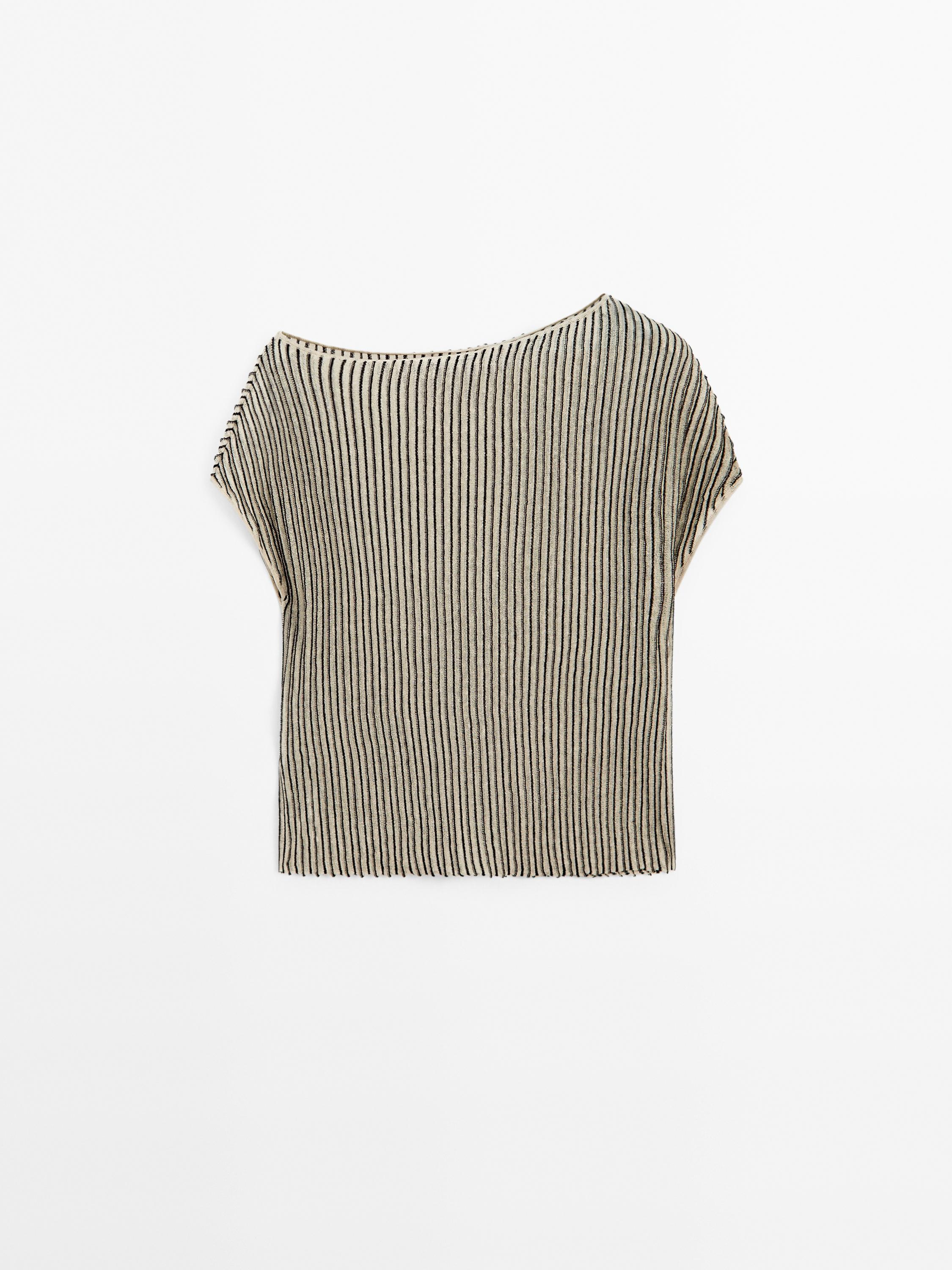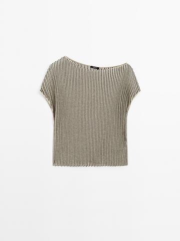 Massimo Dutti Свободный плиссированный топ с вкраплениями, бежевый