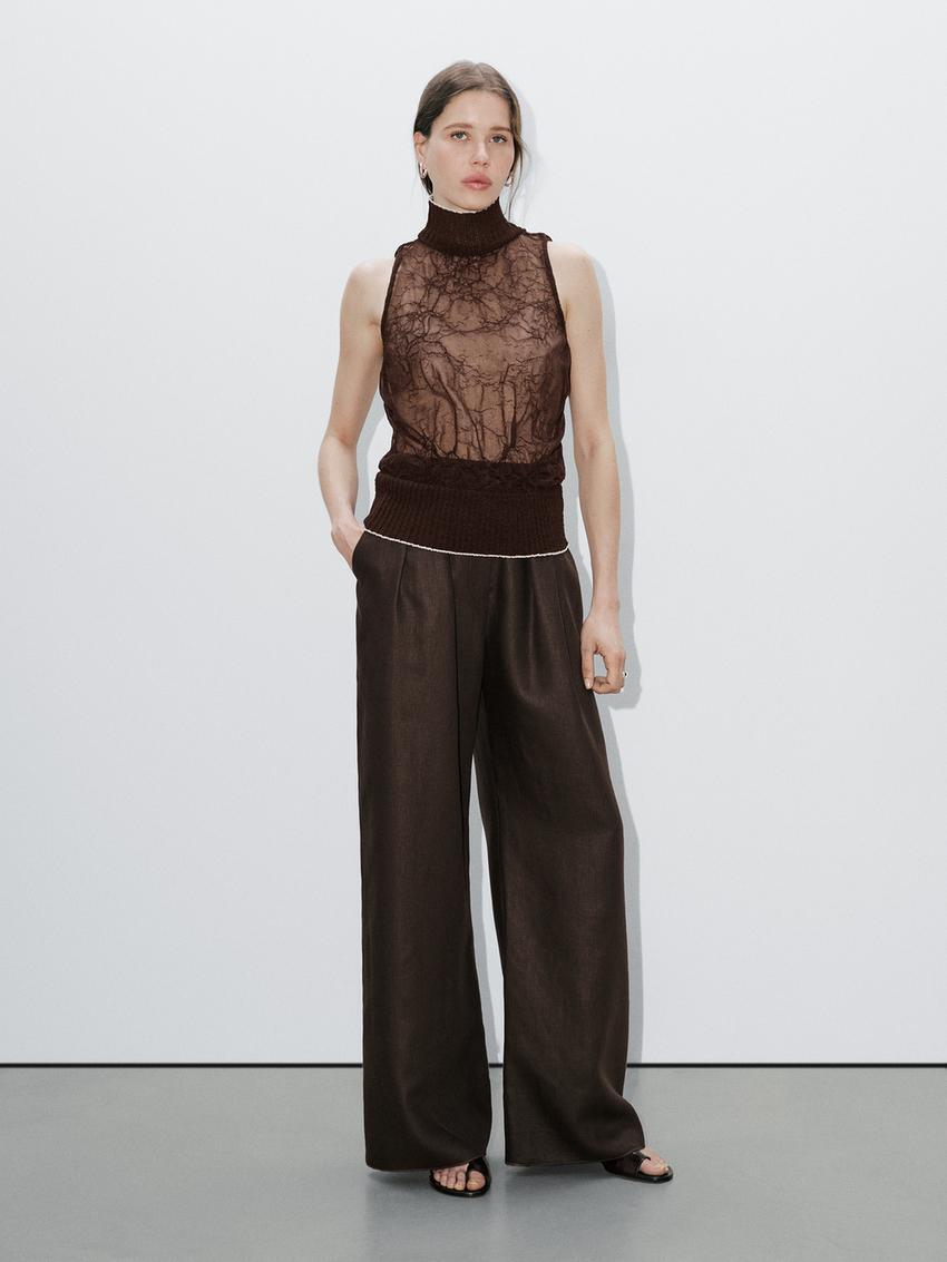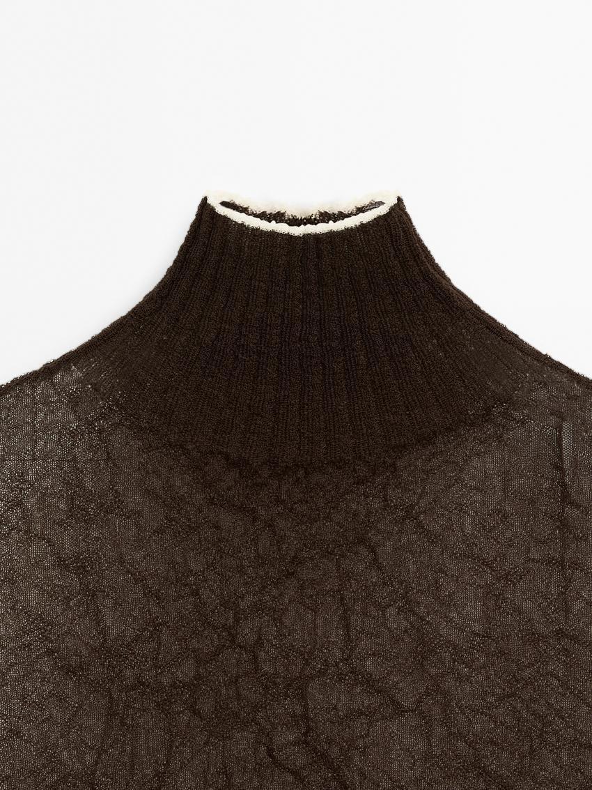 Massimo Dutti Текстурированная блузка с воротником-стойкой, коричневый