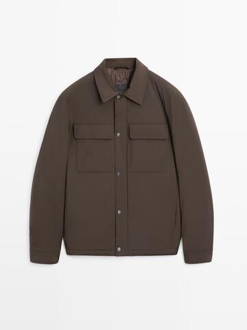 Massimo Dutti Тонкая куртка с воротником и карманами, шоколадно-коричневый