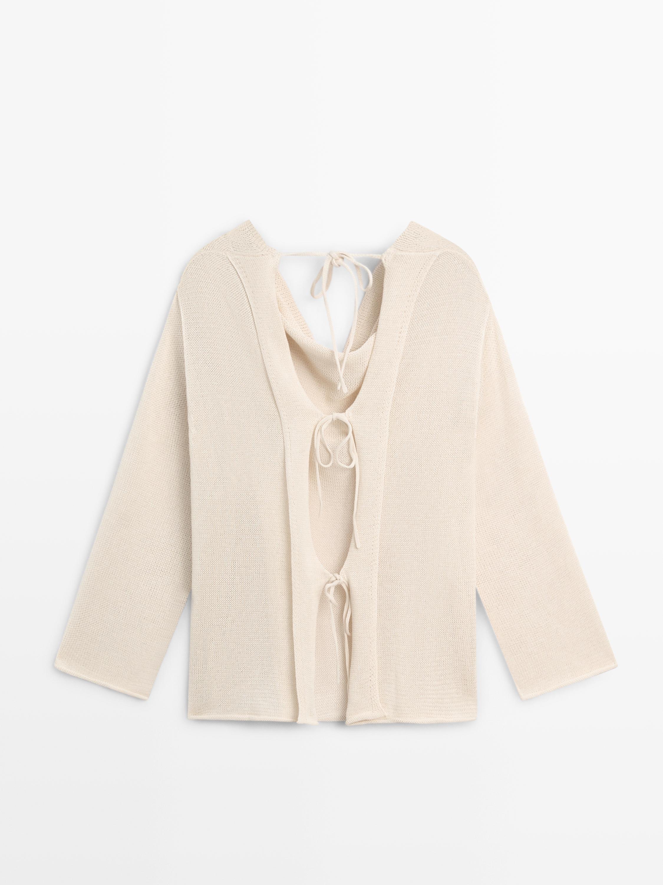 Свитер тонкой вязки из 100% хлопка. Вырез со сборкой. Длинные рукава. Завязки на спине.
