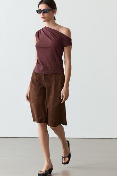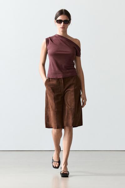 Massimo Dutti Топ асимметричного кроя с драпировкой из смесового льна, бургунди