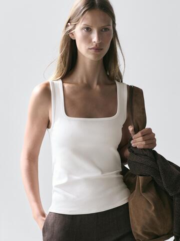 Massimo Dutti Топ без рукавов с квадратным вырезом, белый