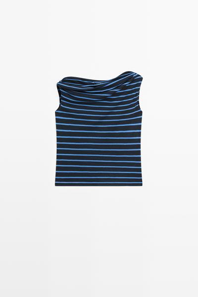 Massimo Dutti Топ из хлопка с драпировкой в полоску, синий