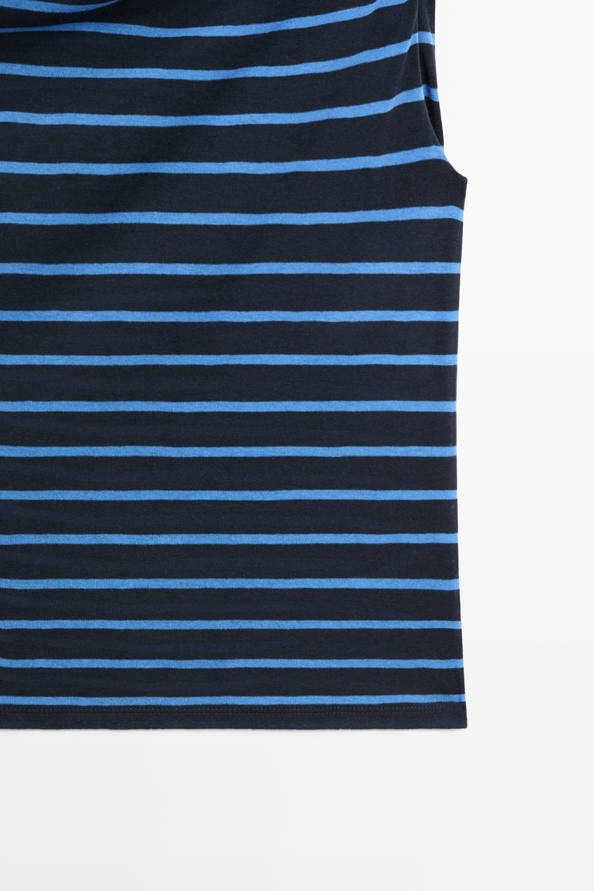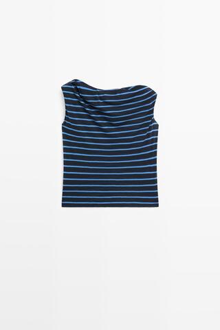 Топ из 100% хлопка. Драпированный вырез «лодочка». Без рукавов. Принт в полоску.