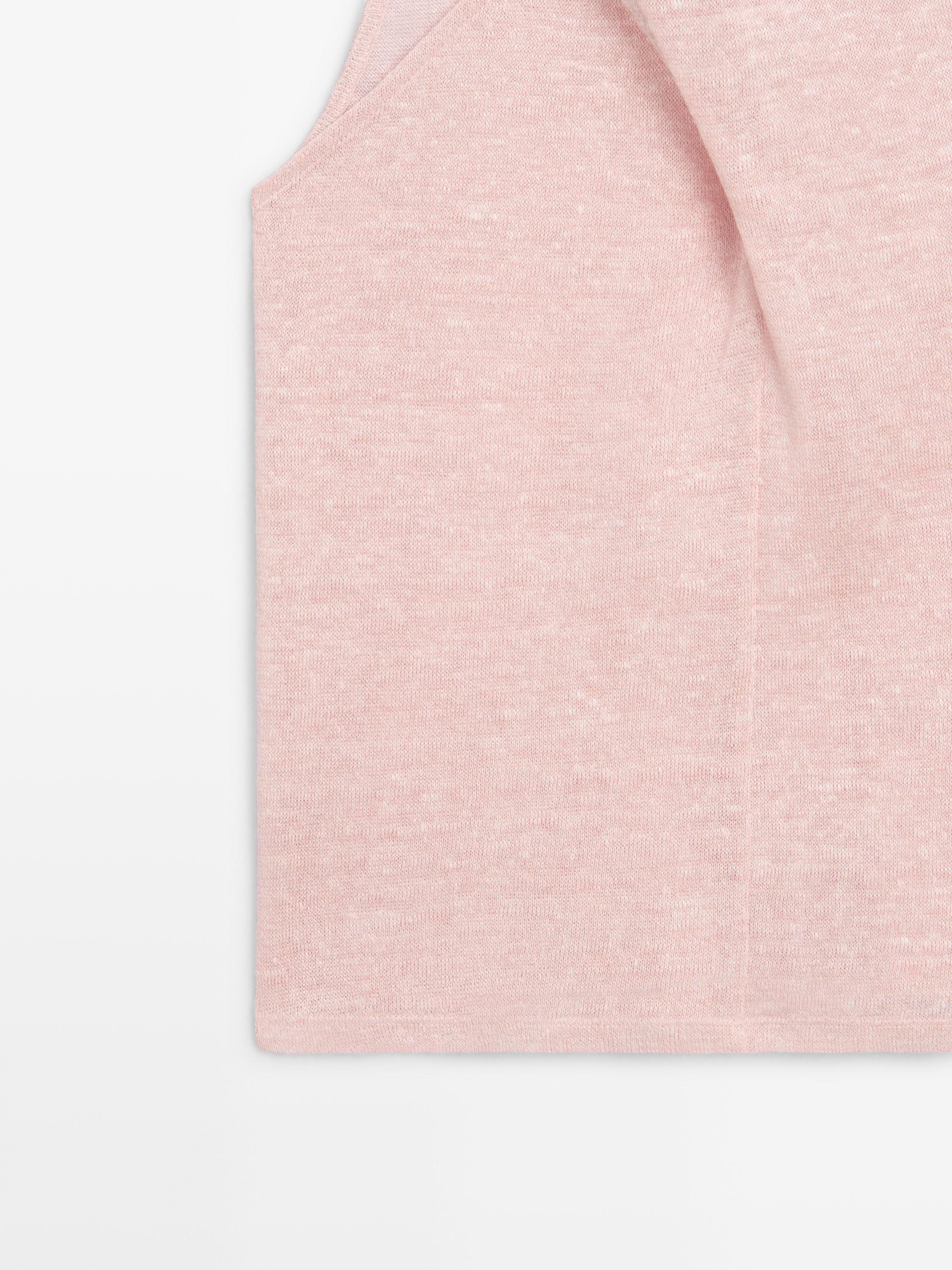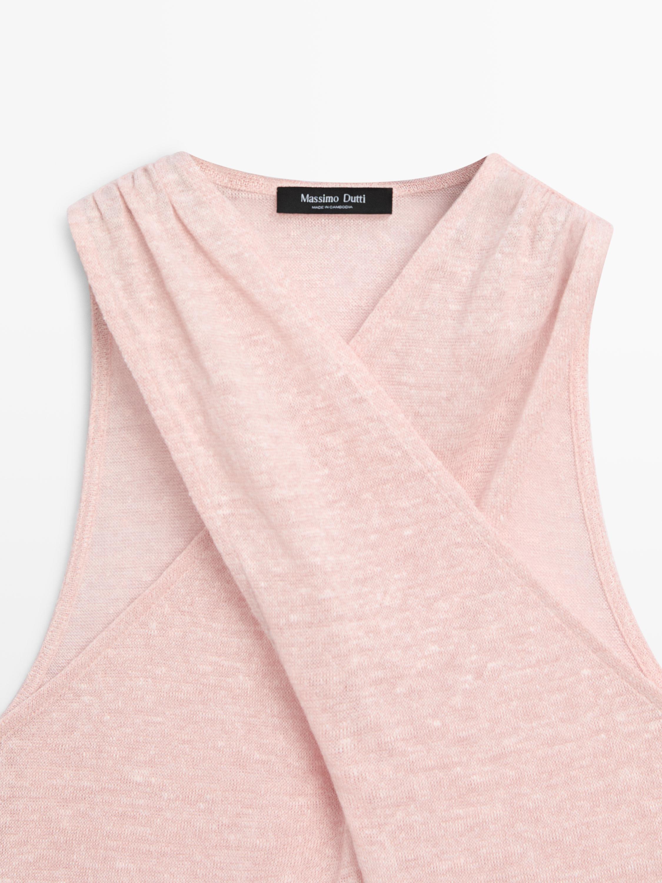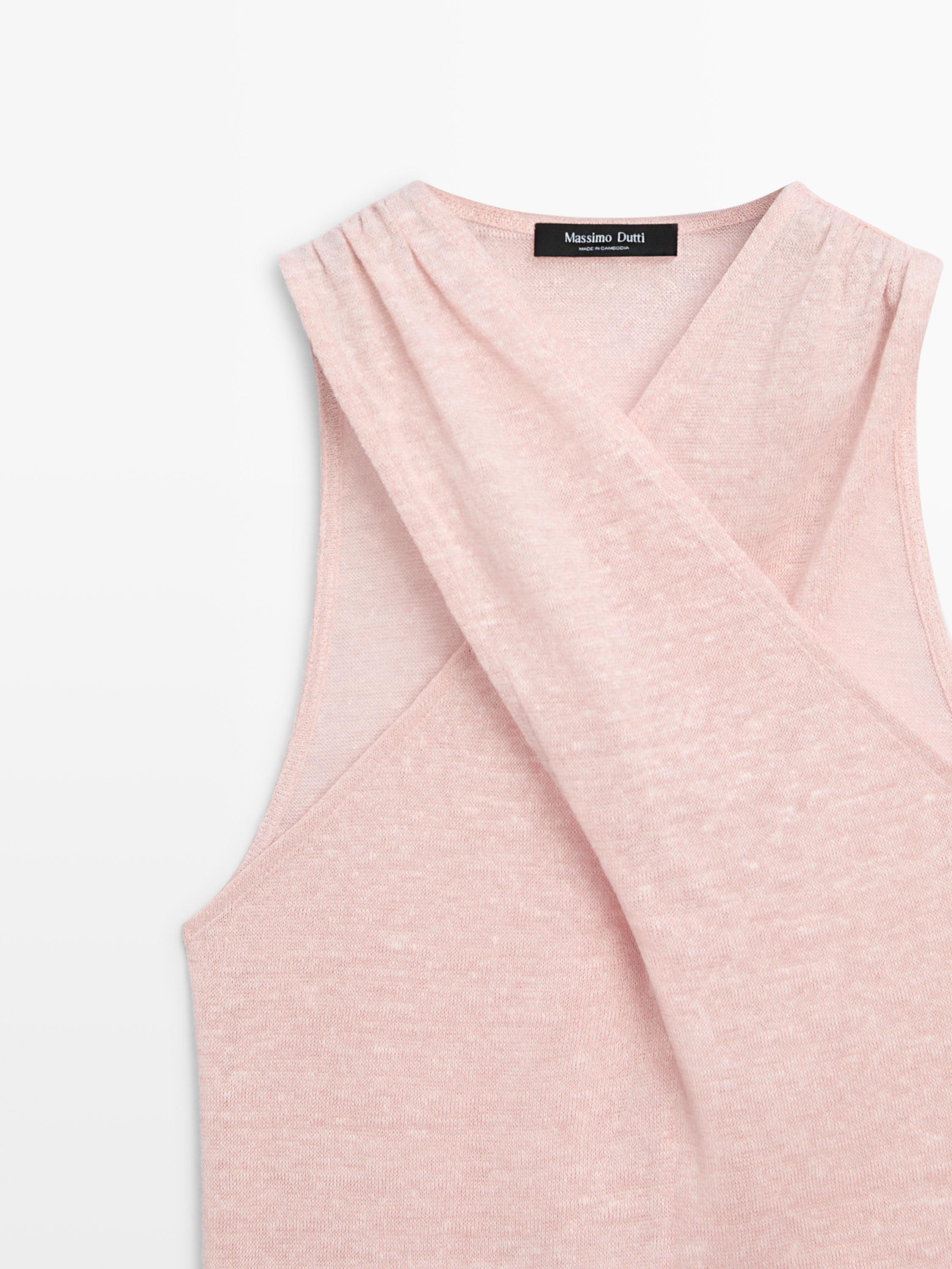 Massimo Dutti Топ из смесового льна на запáхе, светло-розовый