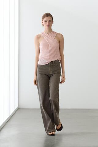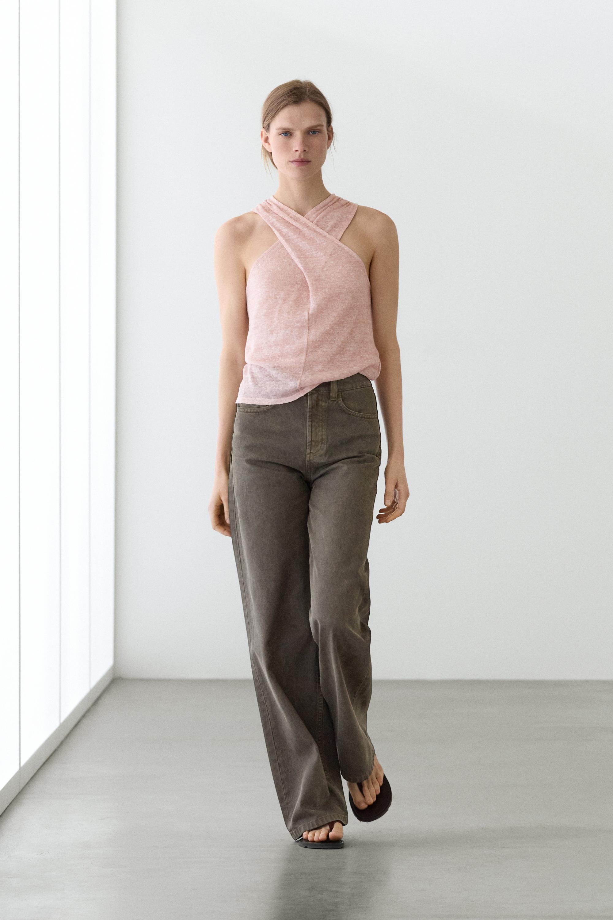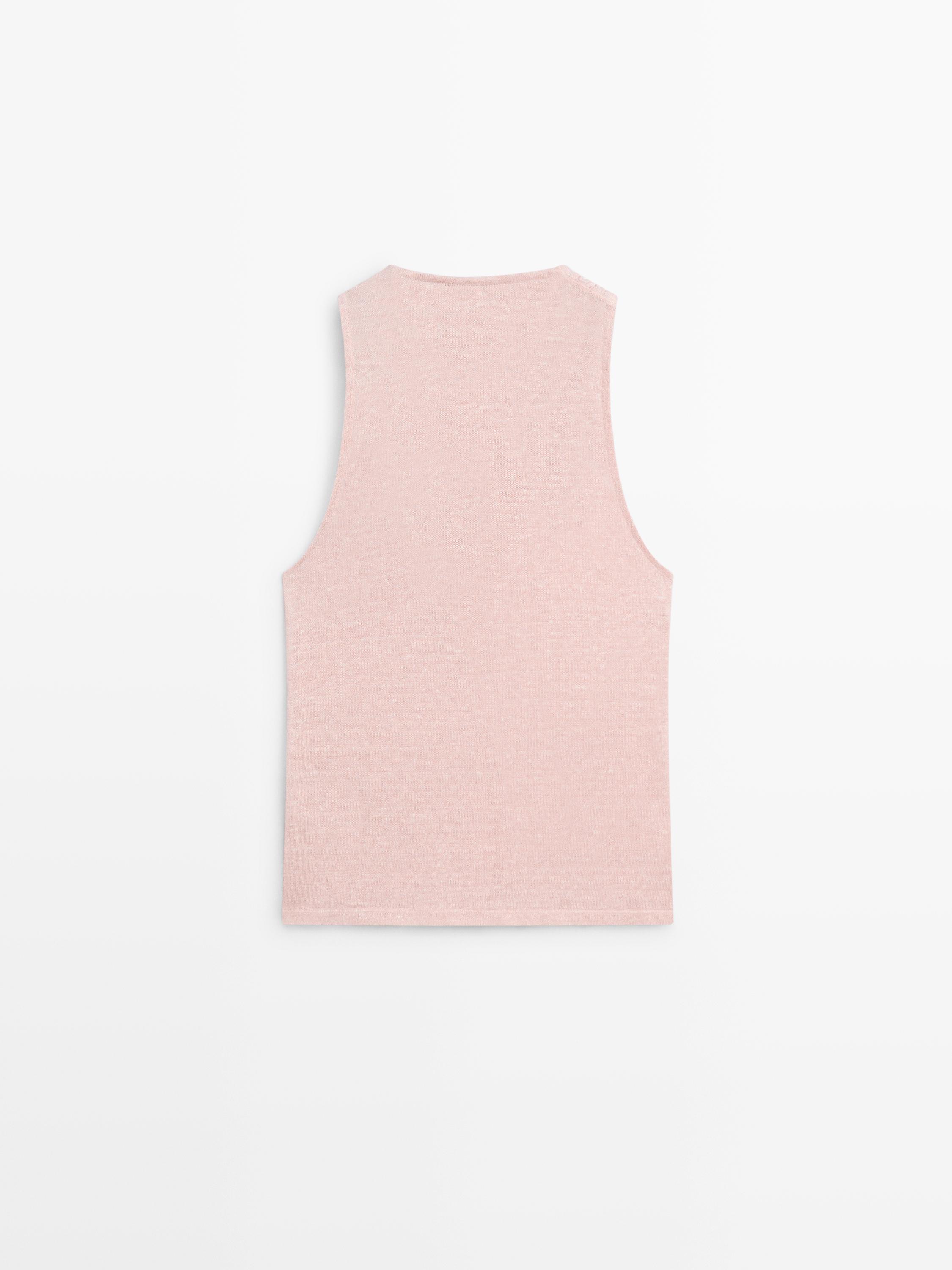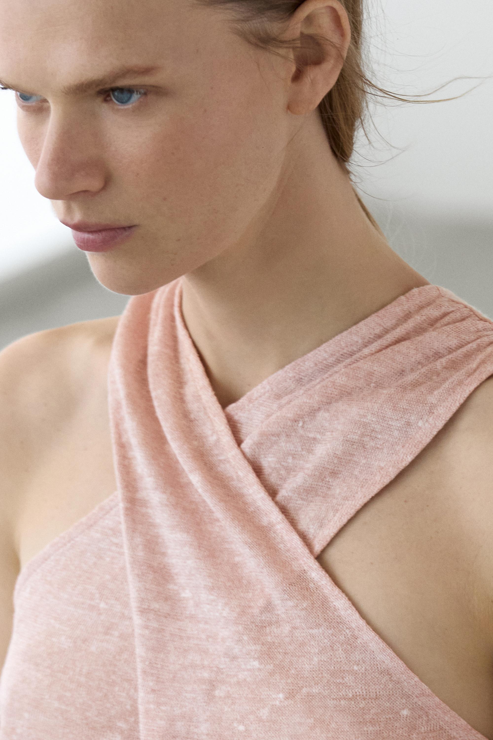 Massimo Dutti Топ из смесового льна на запáхе, светло-розовый