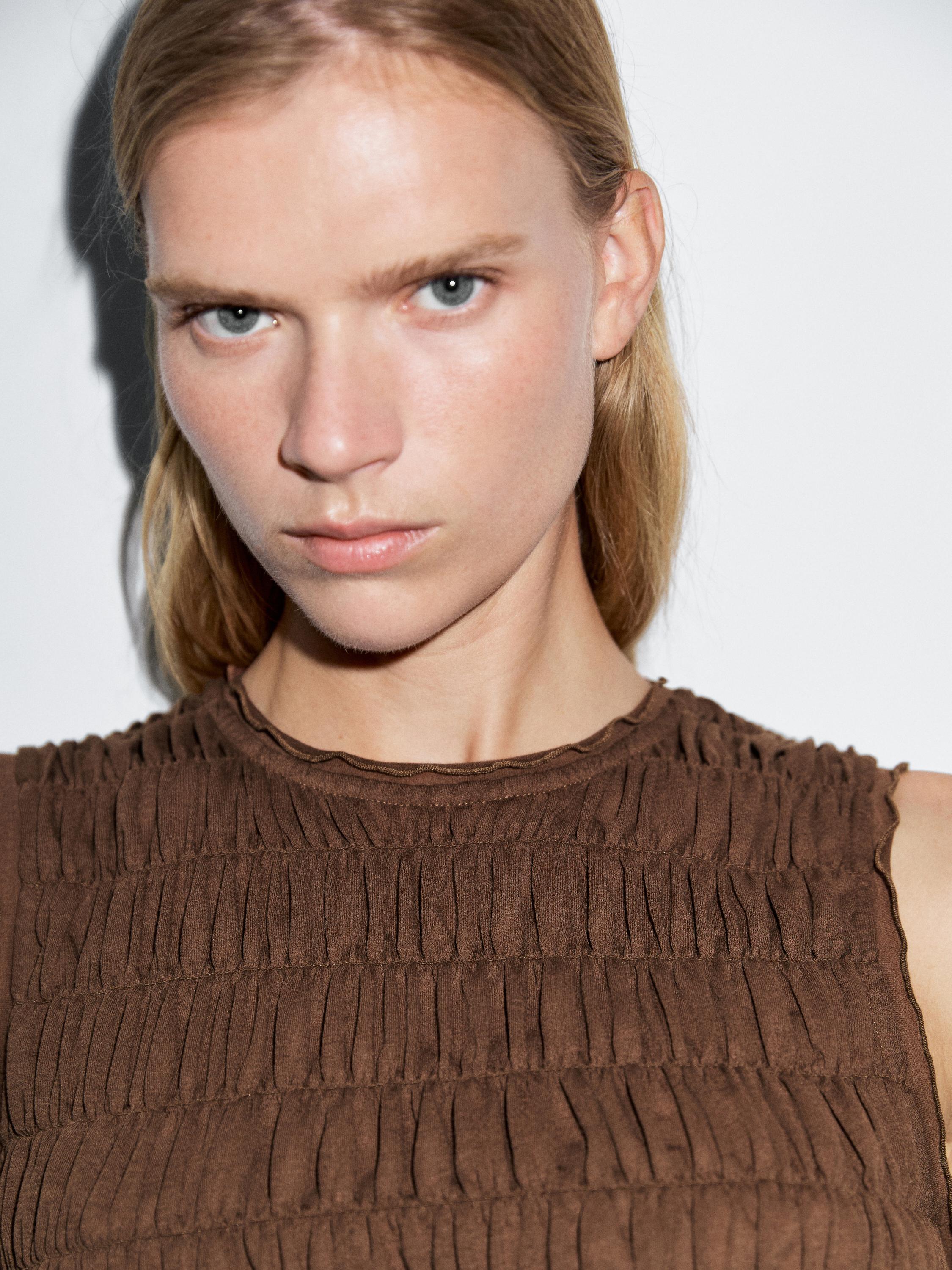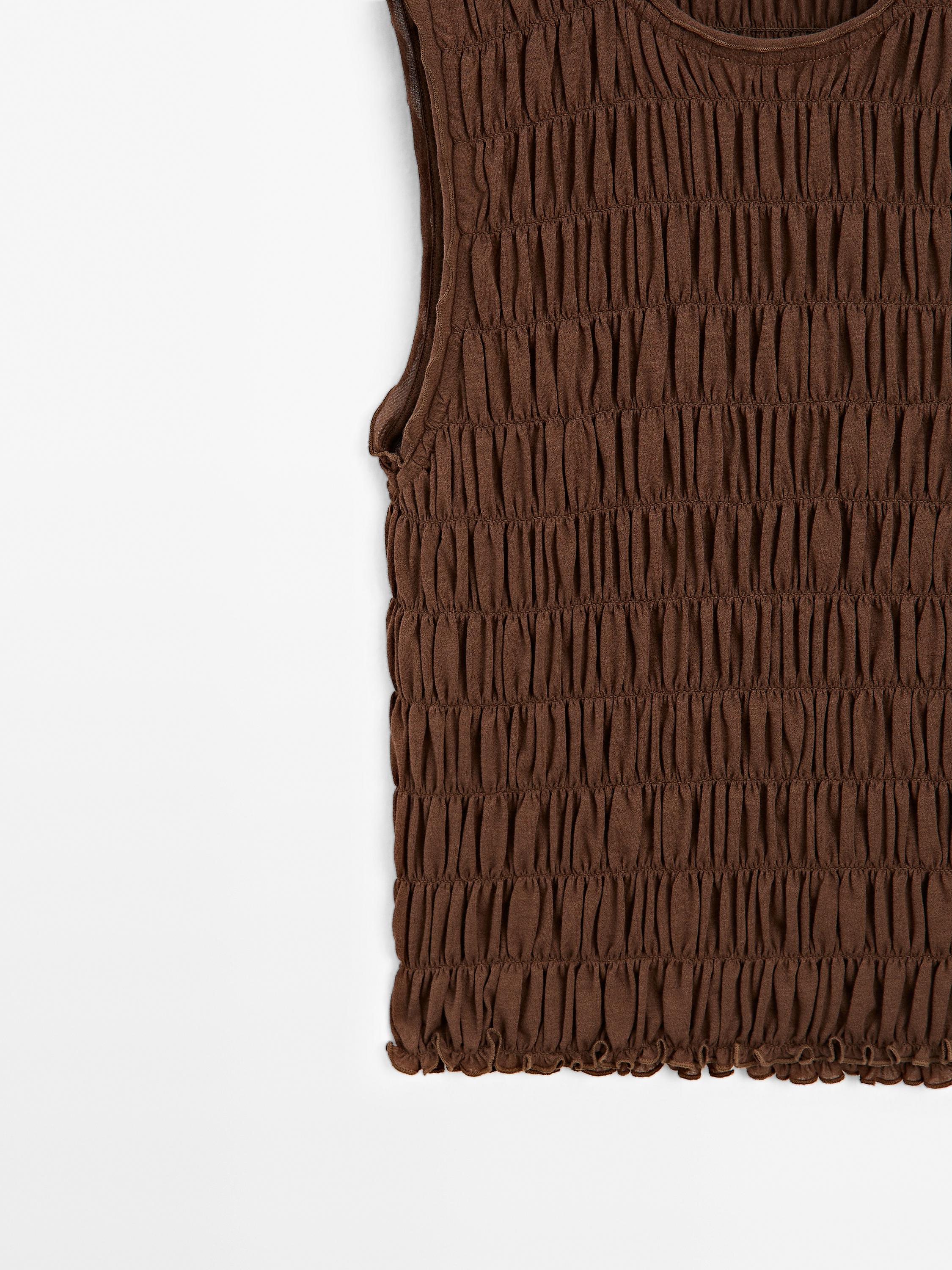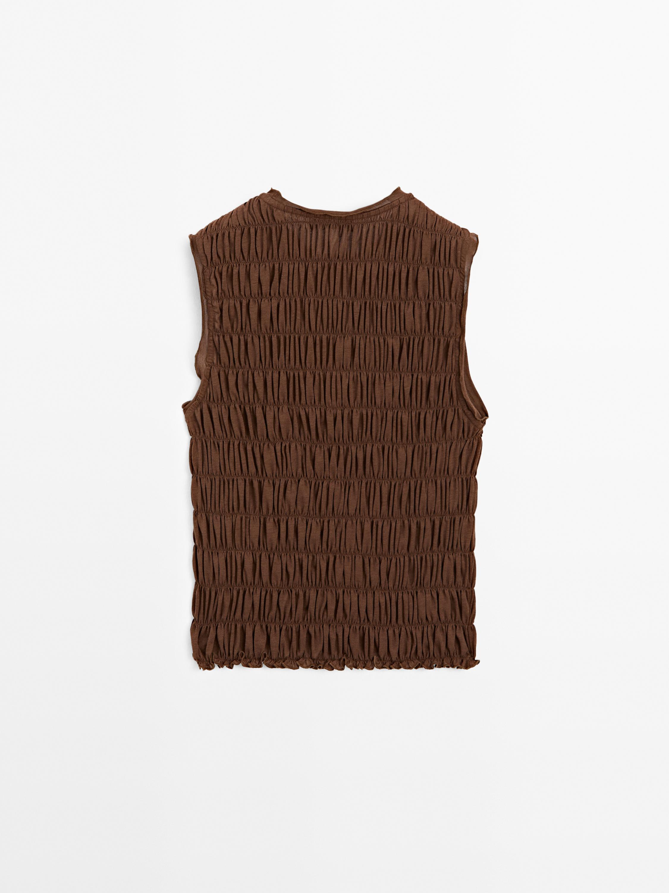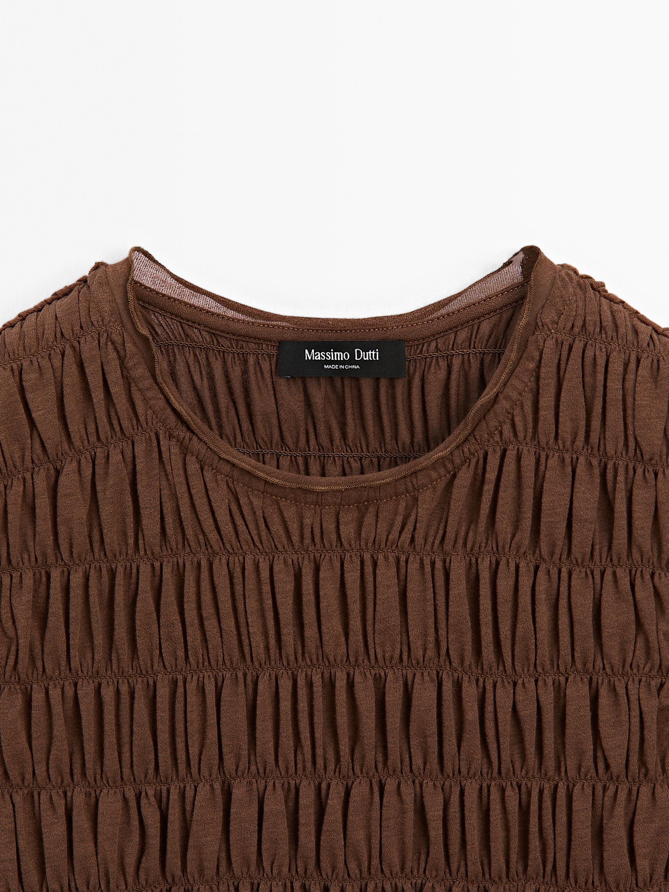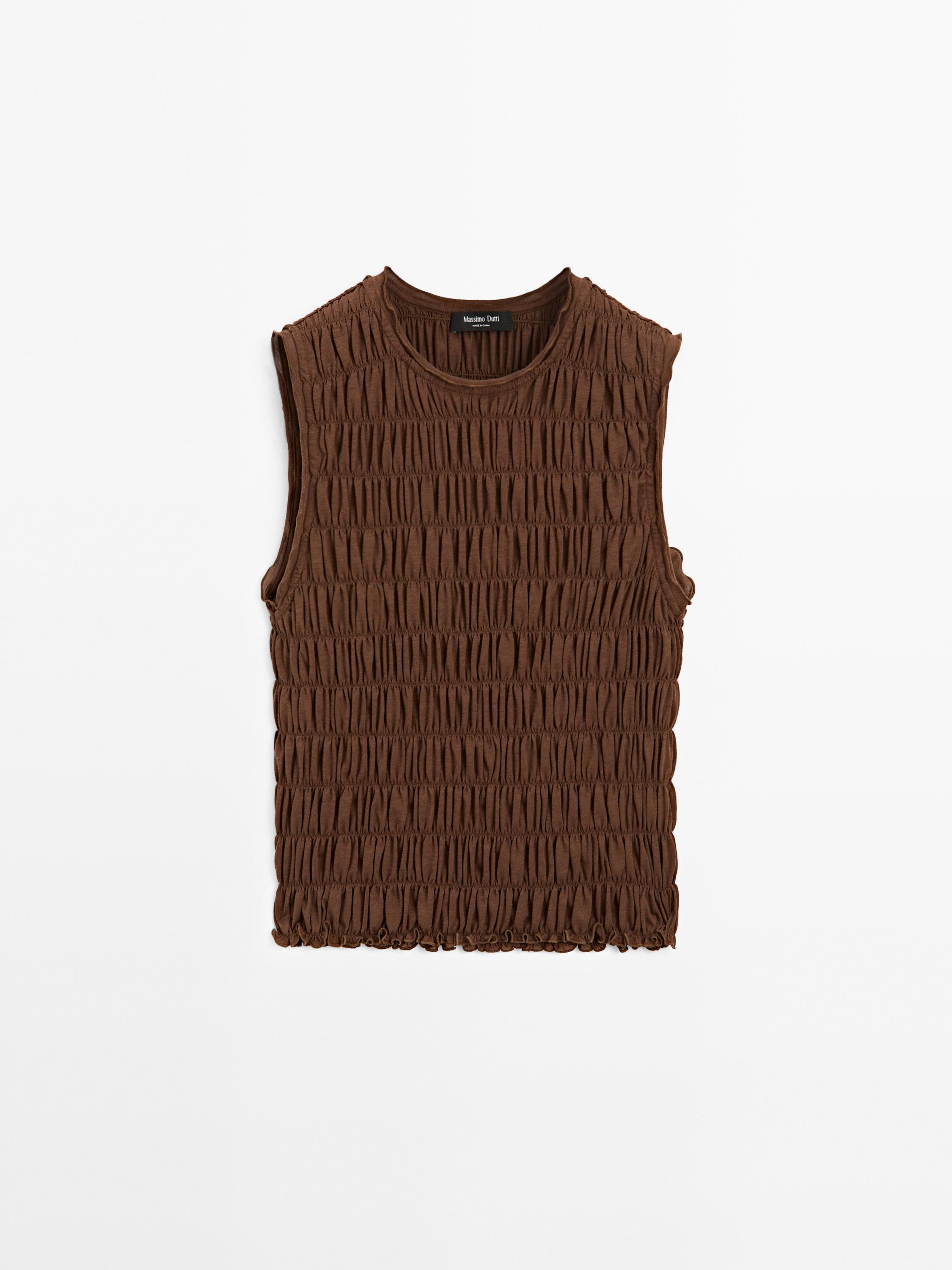 Massimo Dutti Топ из смесовой хлопковой ткани со сборками, коричневый