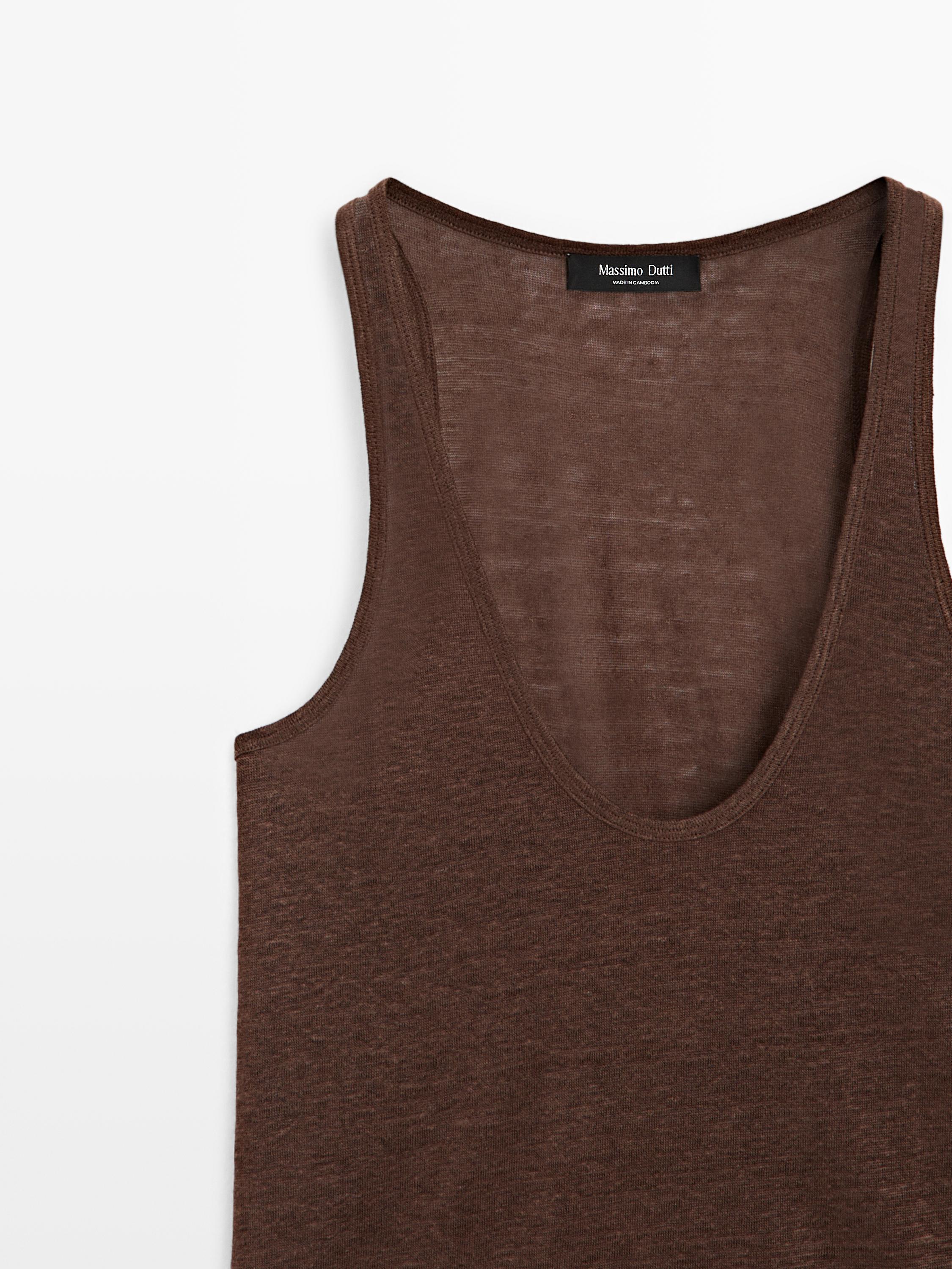 Massimo Dutti Топ на бретелях из 100% льна, шоколадный