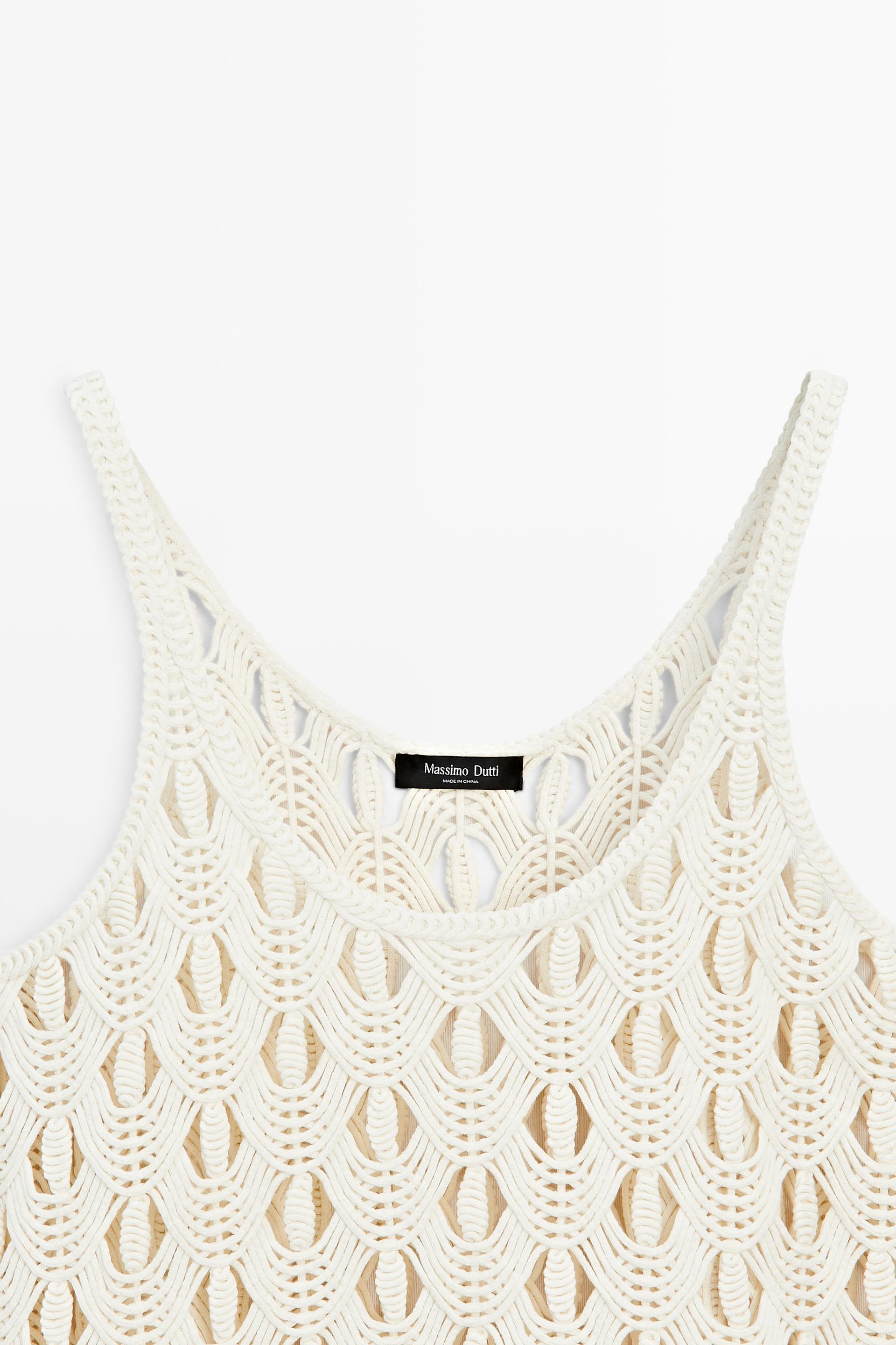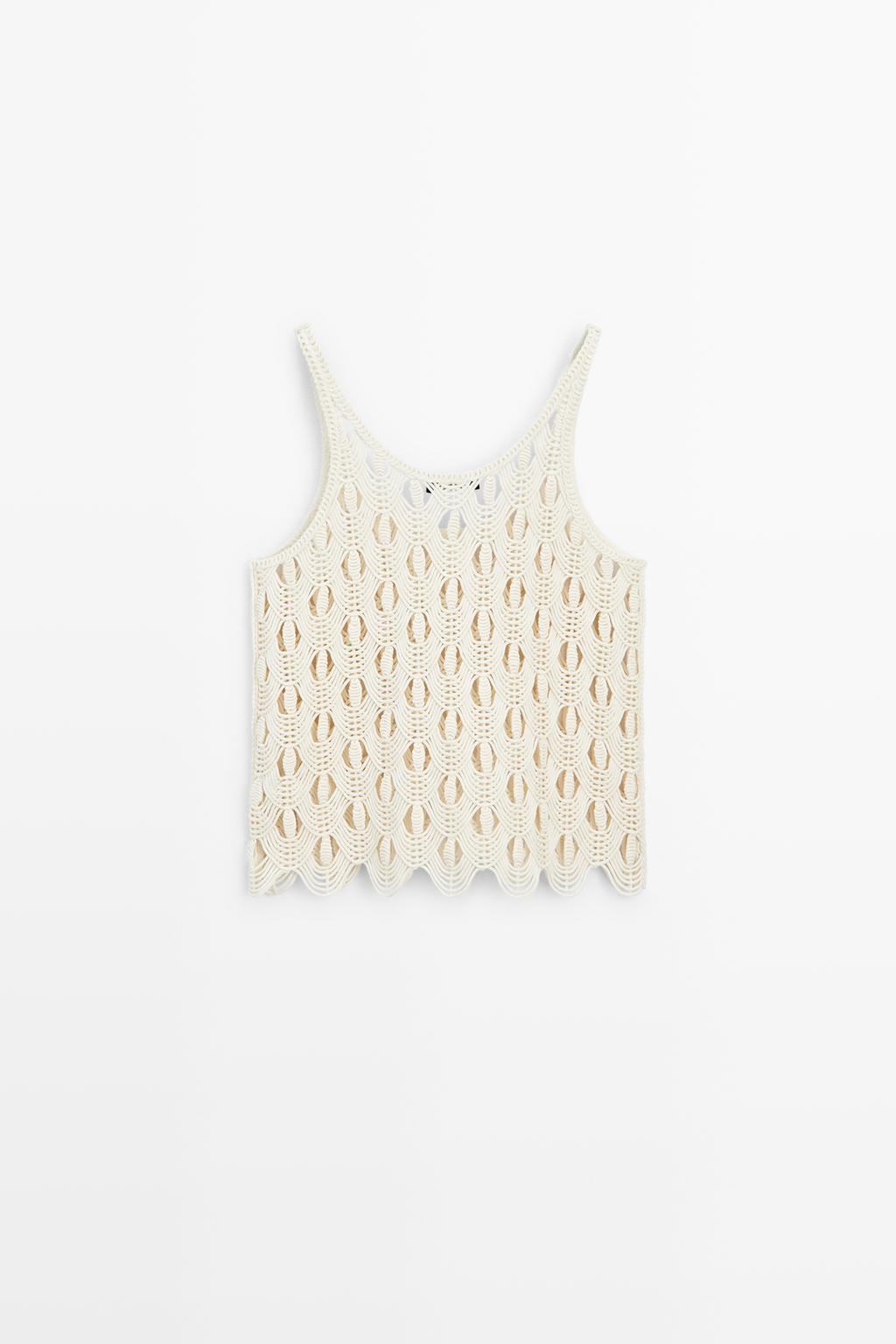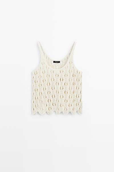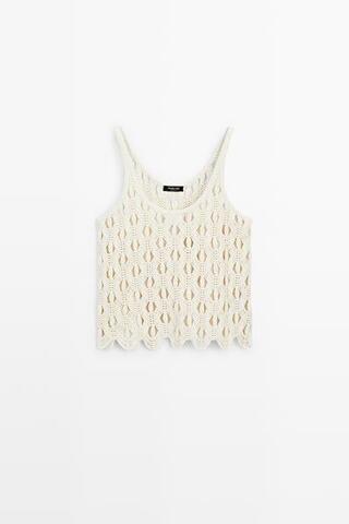 Massimo Dutti Топ на бретелях с деталями кроше, натуральный/кремовый