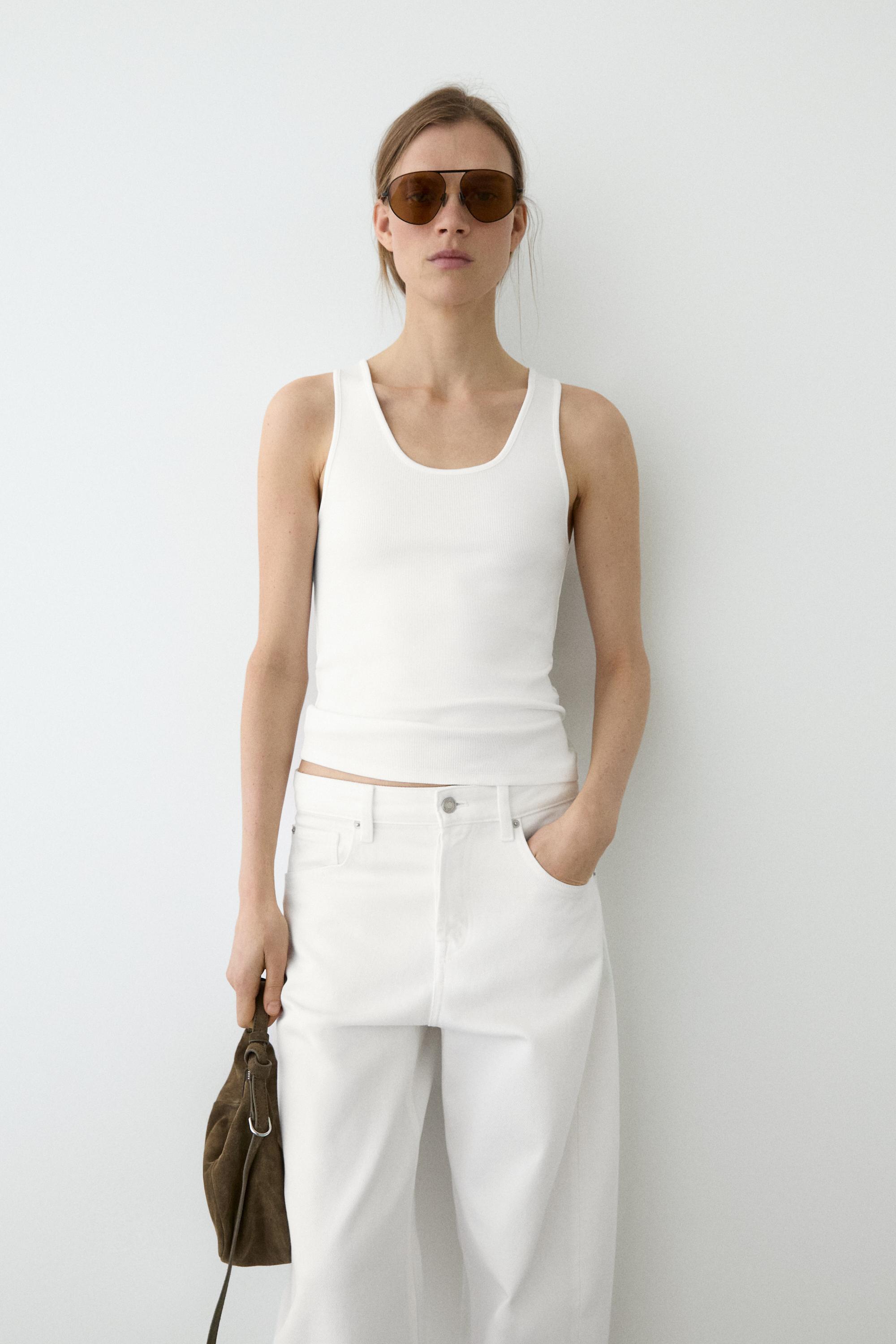 Massimo Dutti Топ на бретелях с вырезом, белый