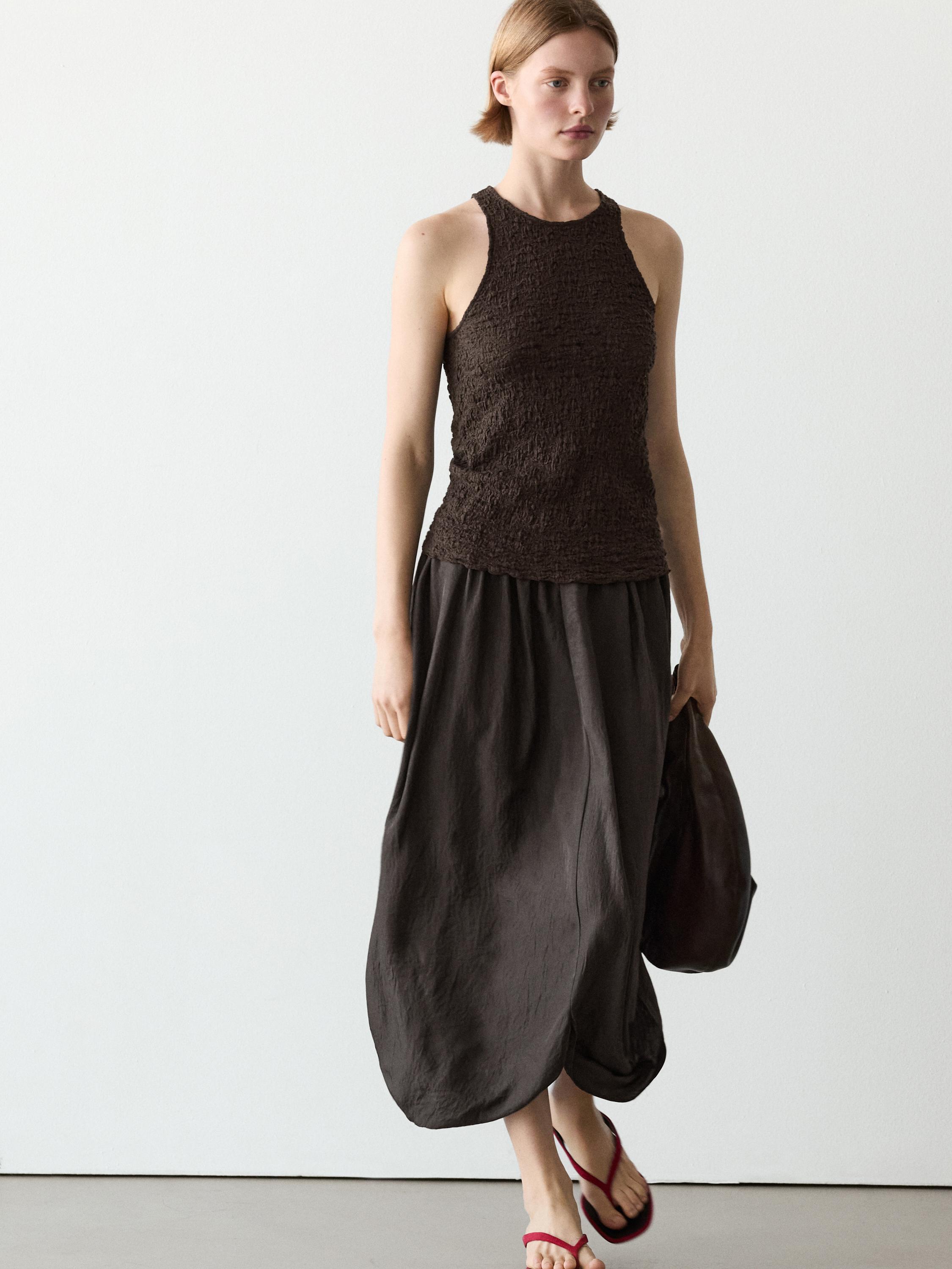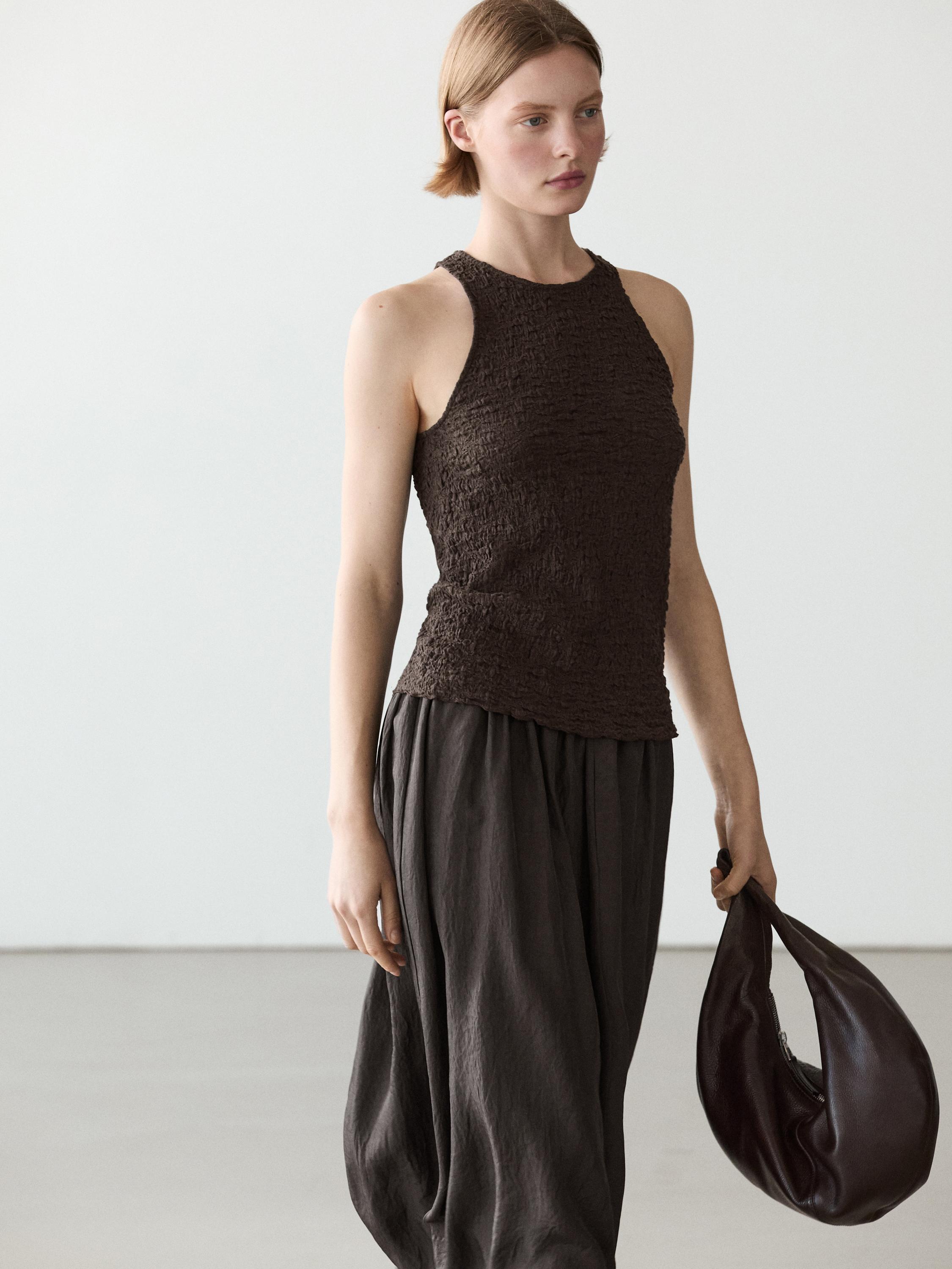 Massimo Dutti Топ с горловиной халтер из ткани с рельефным узором, коричневый