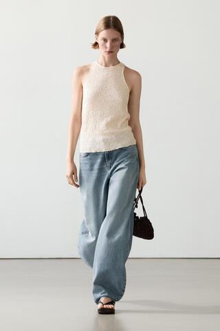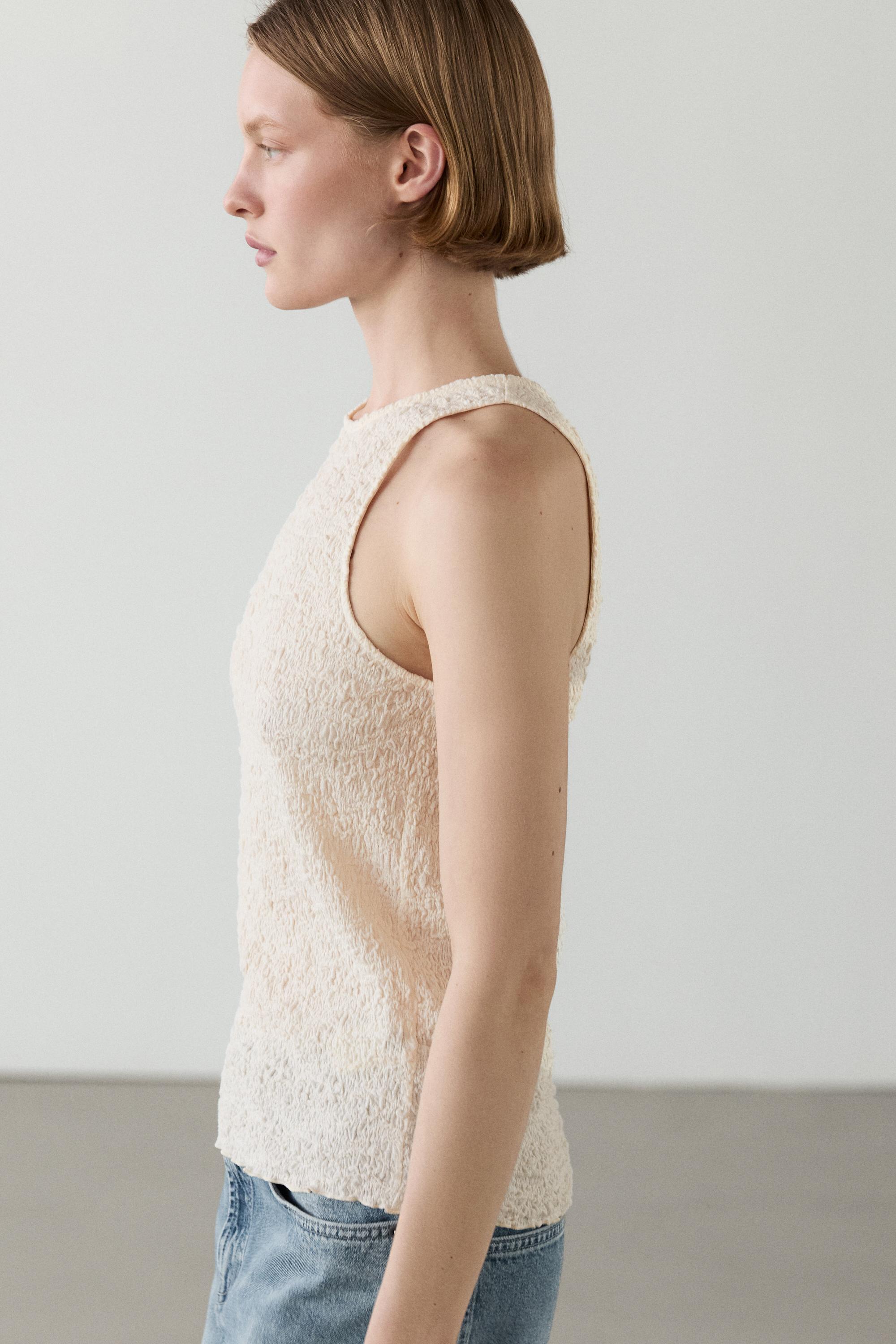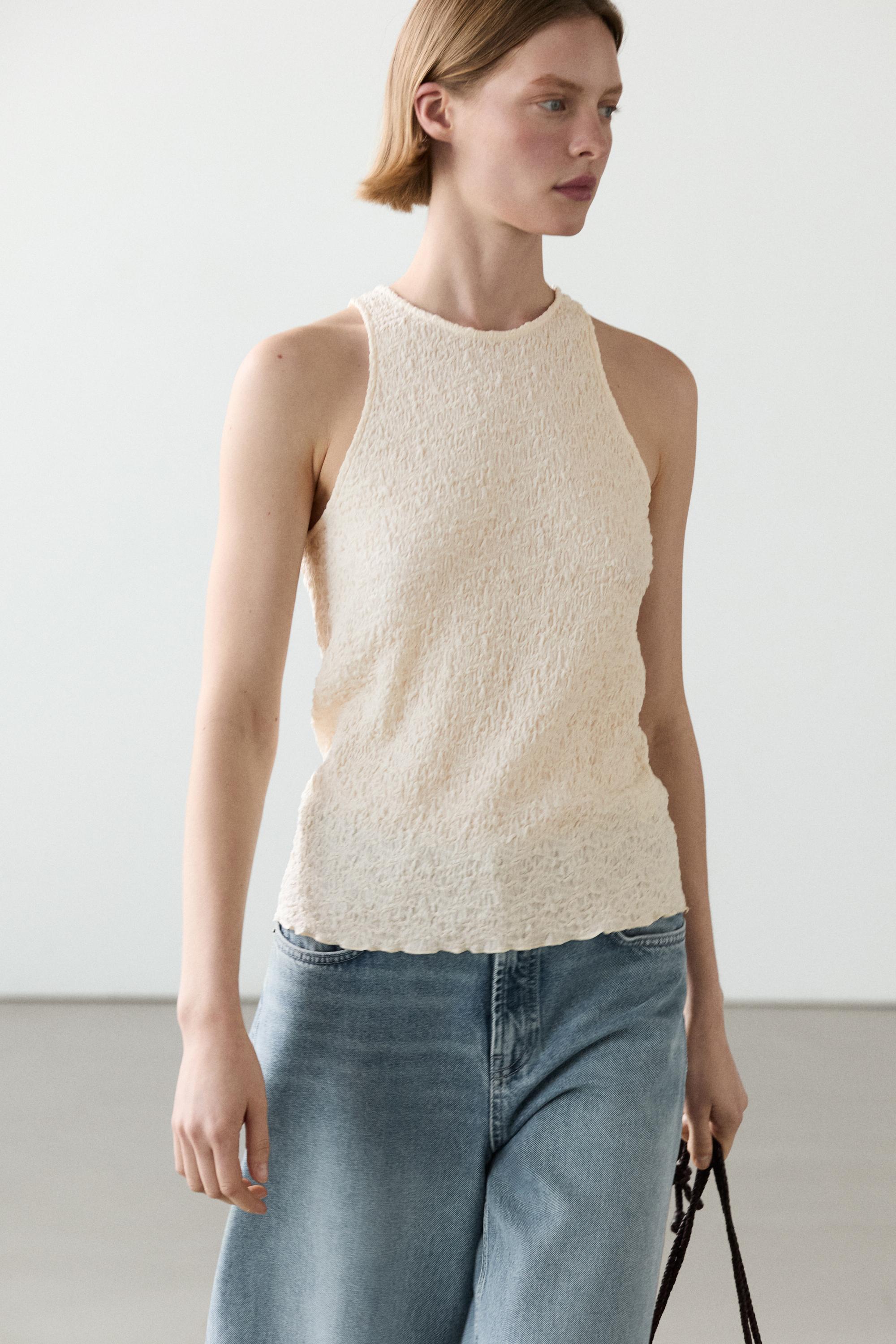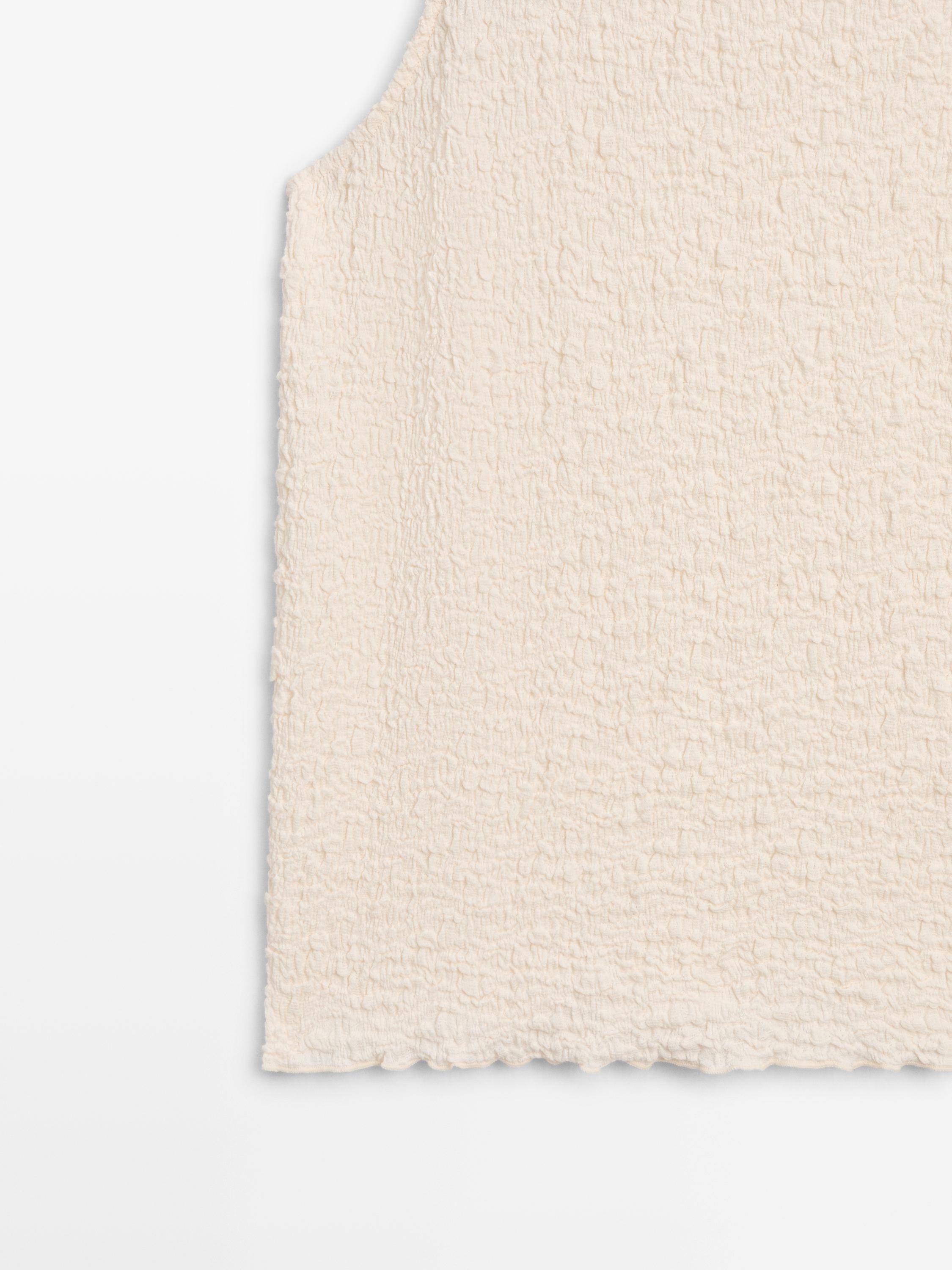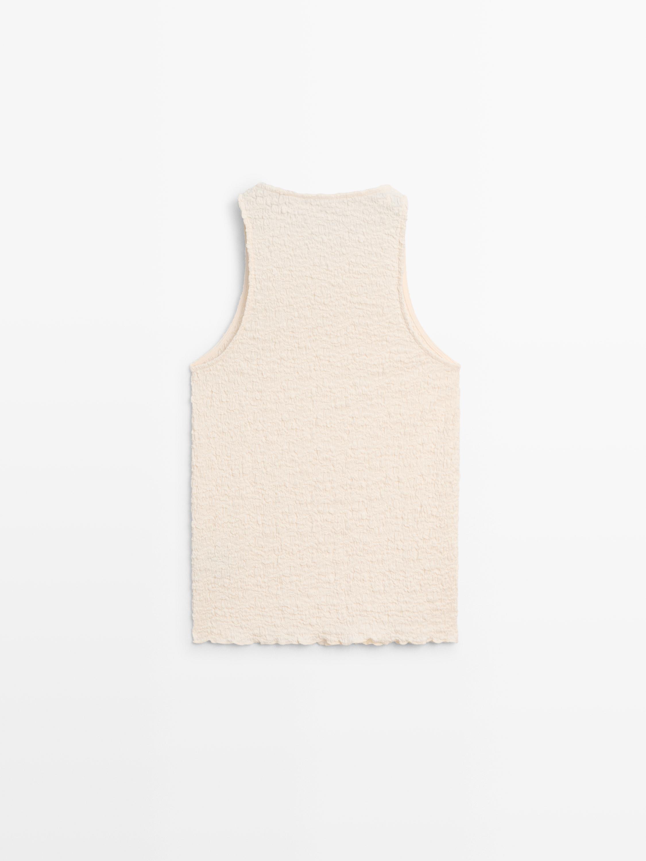 Massimo Dutti Топ с горловиной халтер из ткани с рельефным узором, натуральный/кремовый