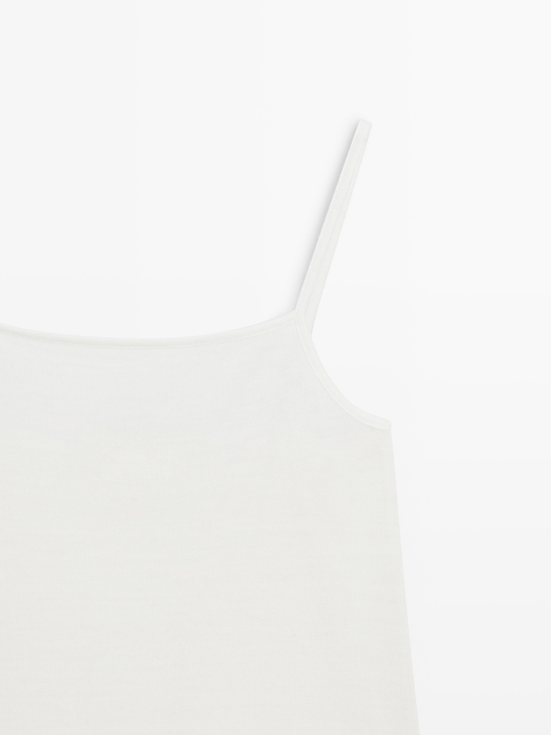 Топ с квадратным вырезом и тонкими бретелями . Квадратный вырез. Кружевная деталь.