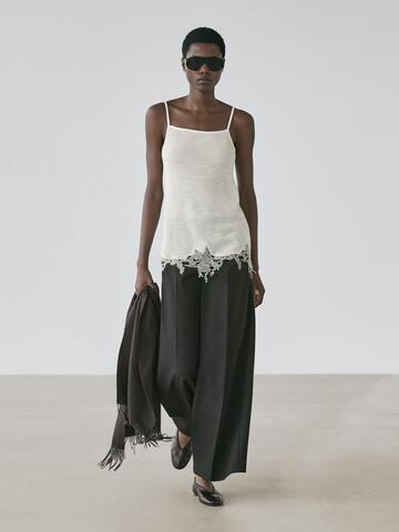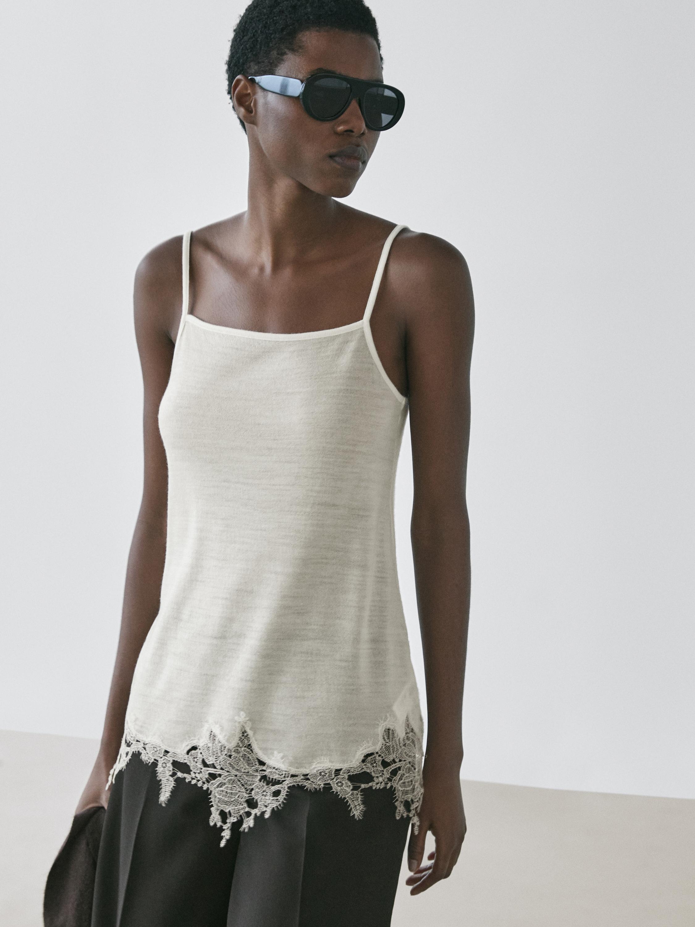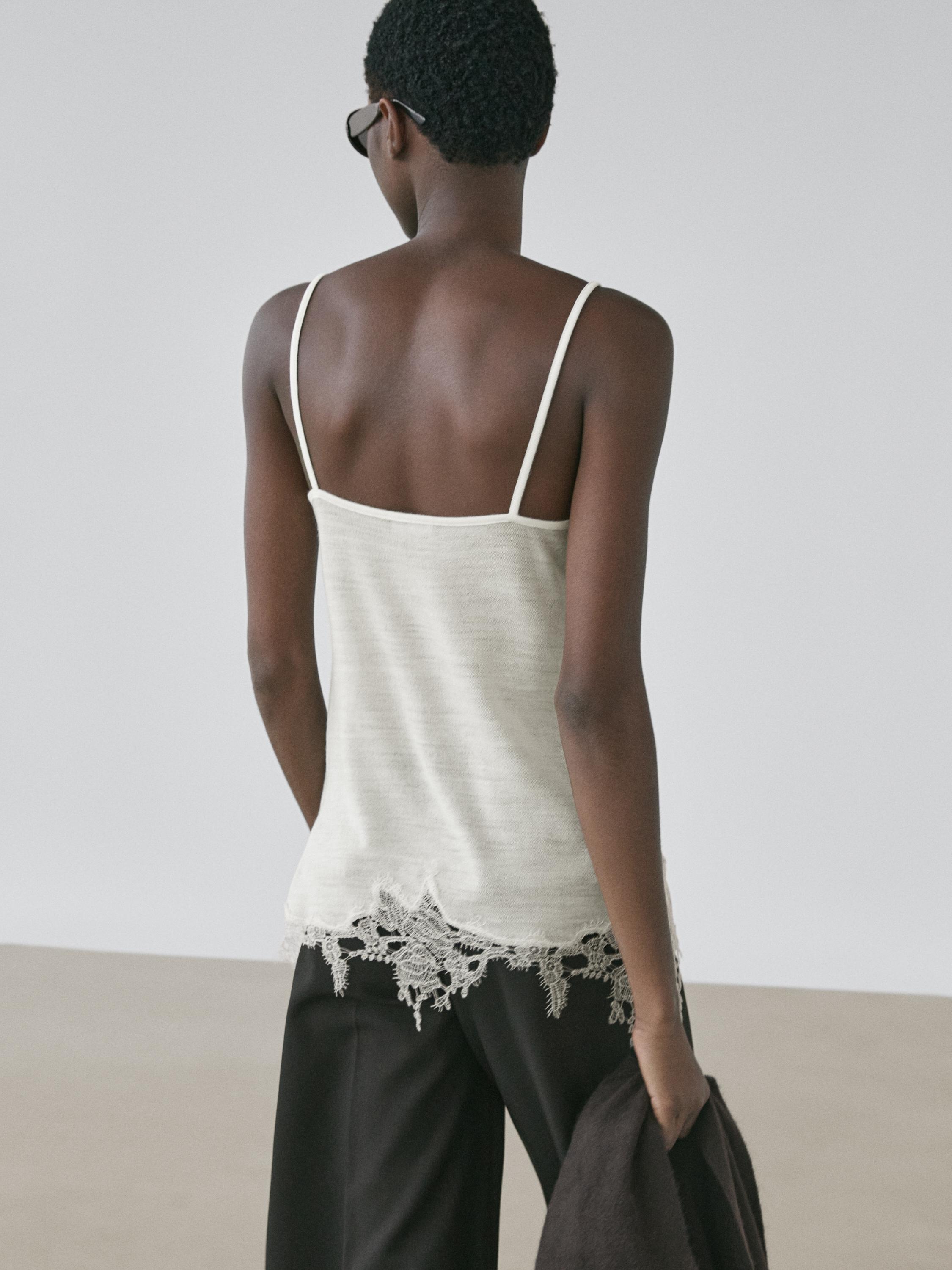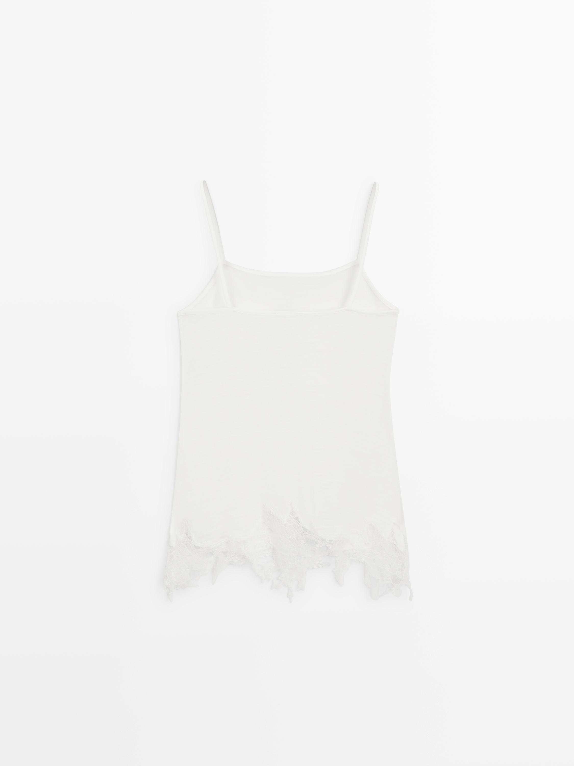 Massimo Dutti Топ в бельевом стиле с кружевом, натуральный/кремовый