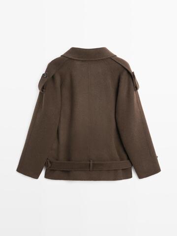 Massimo Dutti Тренч из смесовой шерсти, шоколадный
