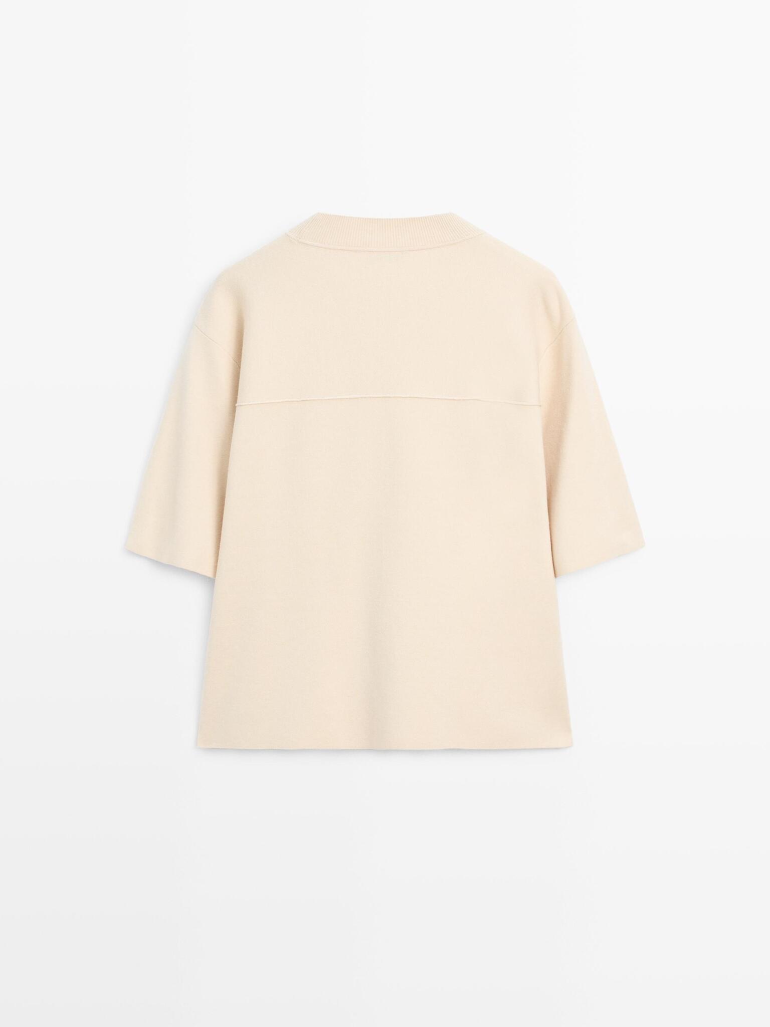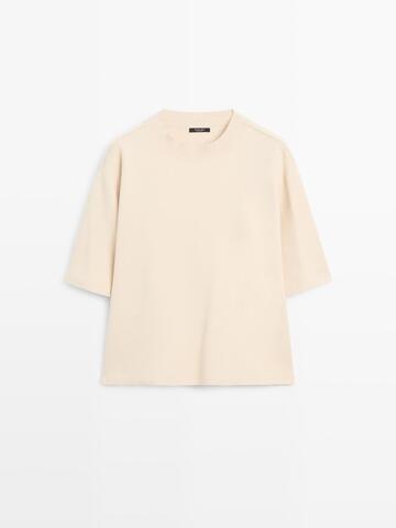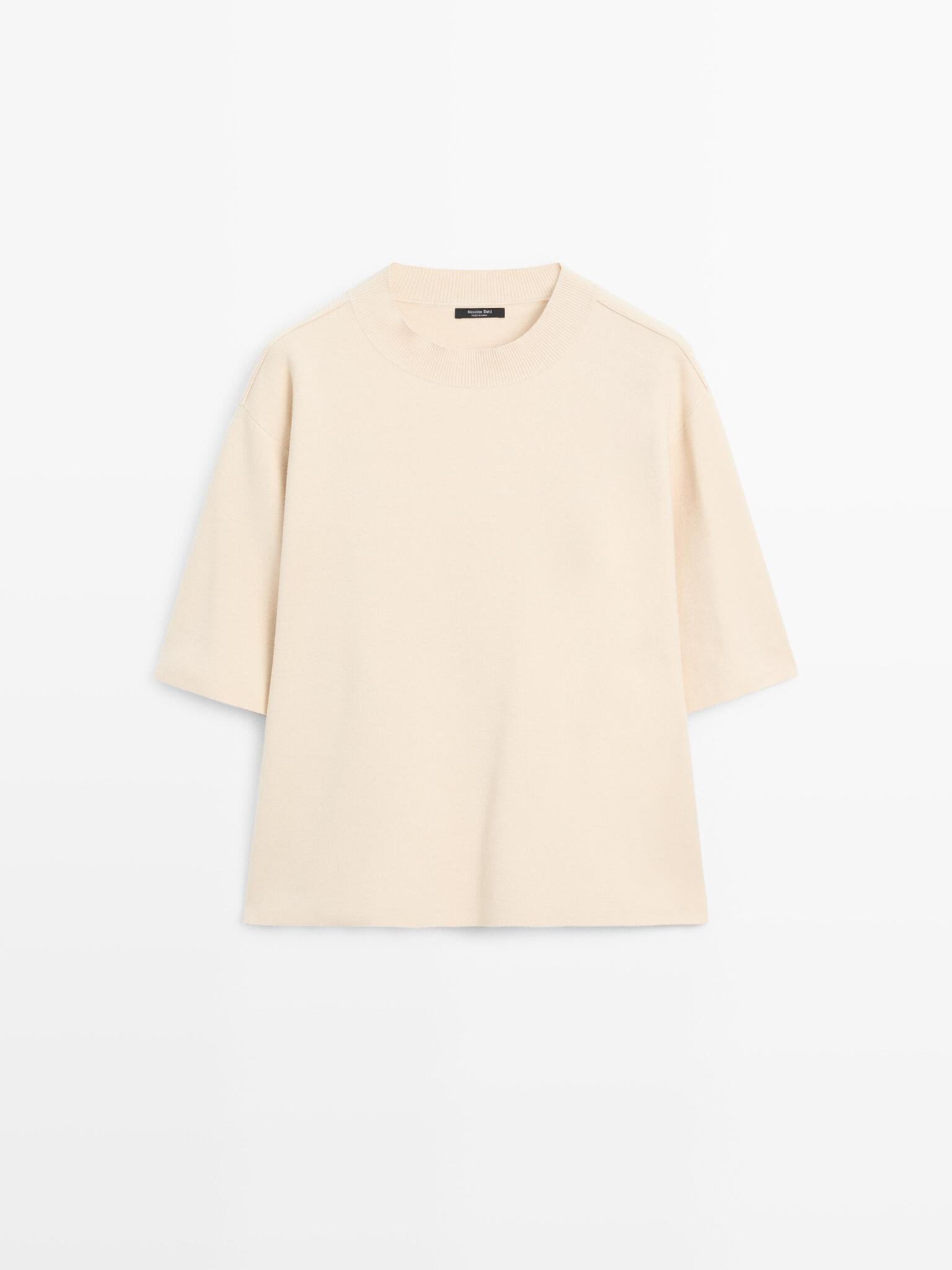 Massimo Dutti Трикотажная футболка с круглым воротником, бежевый