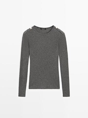Футболка из смесового хлопка. Круглый вырез. Длинные рукава. Золотистая деталь на плече.