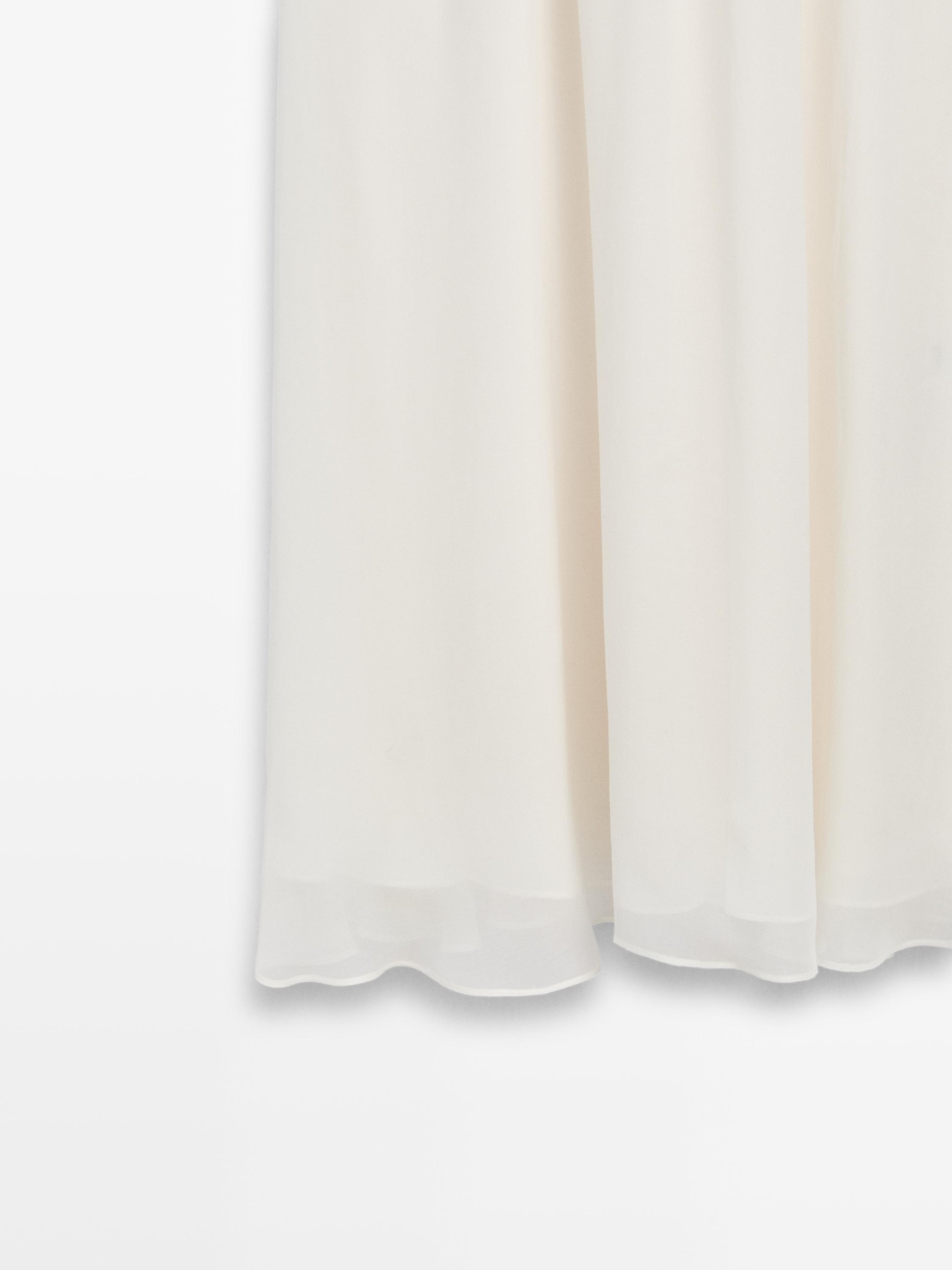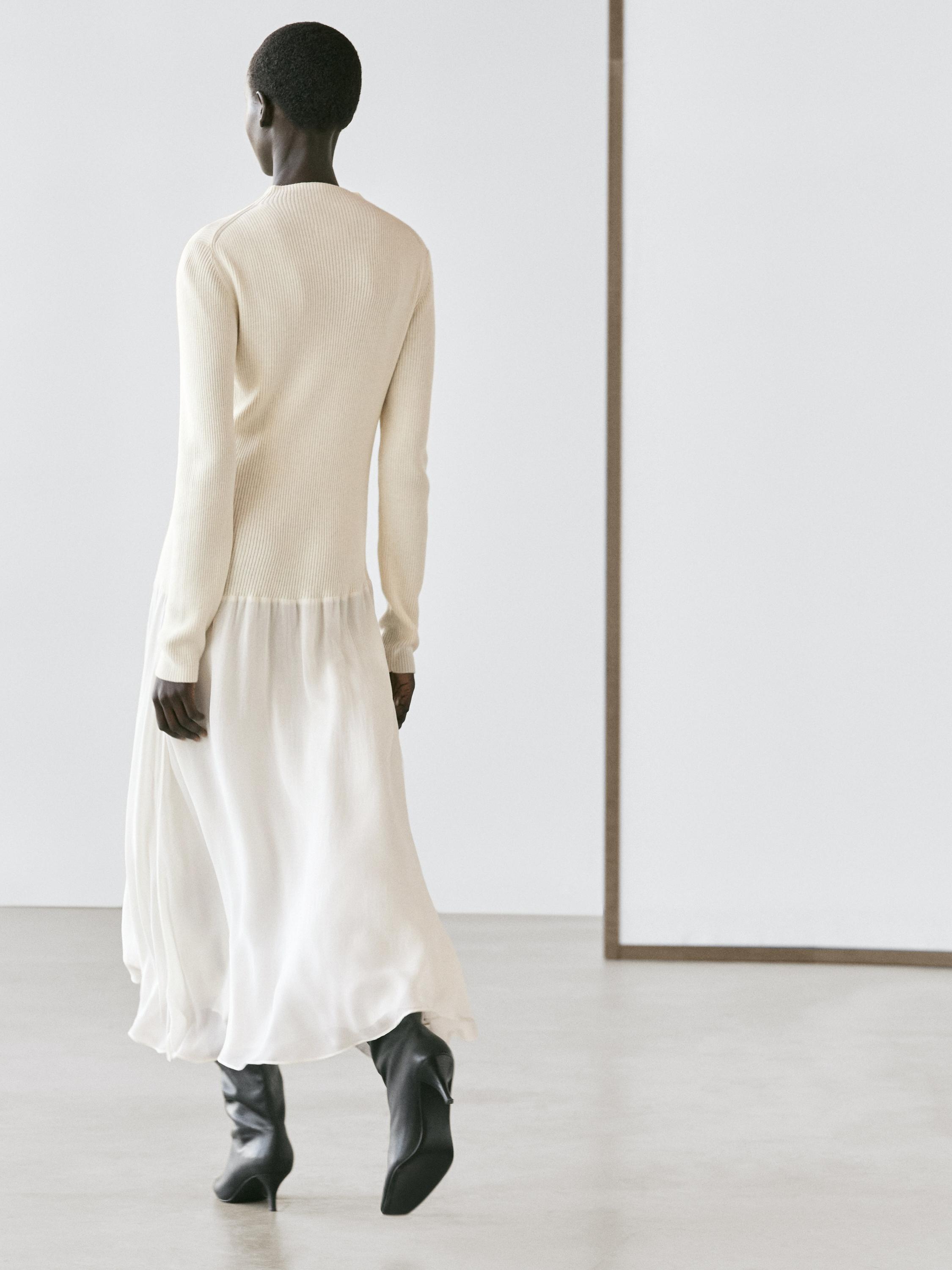 Massimo Dutti Трикотажное платье с декоративной отделкой в тон, натуральный/кремовый