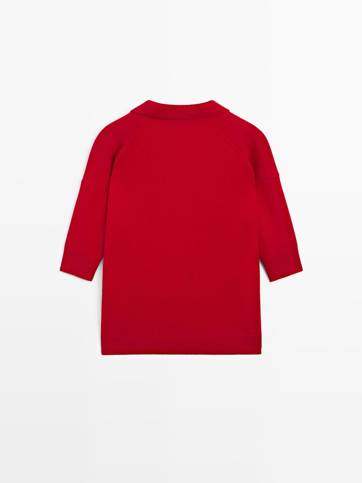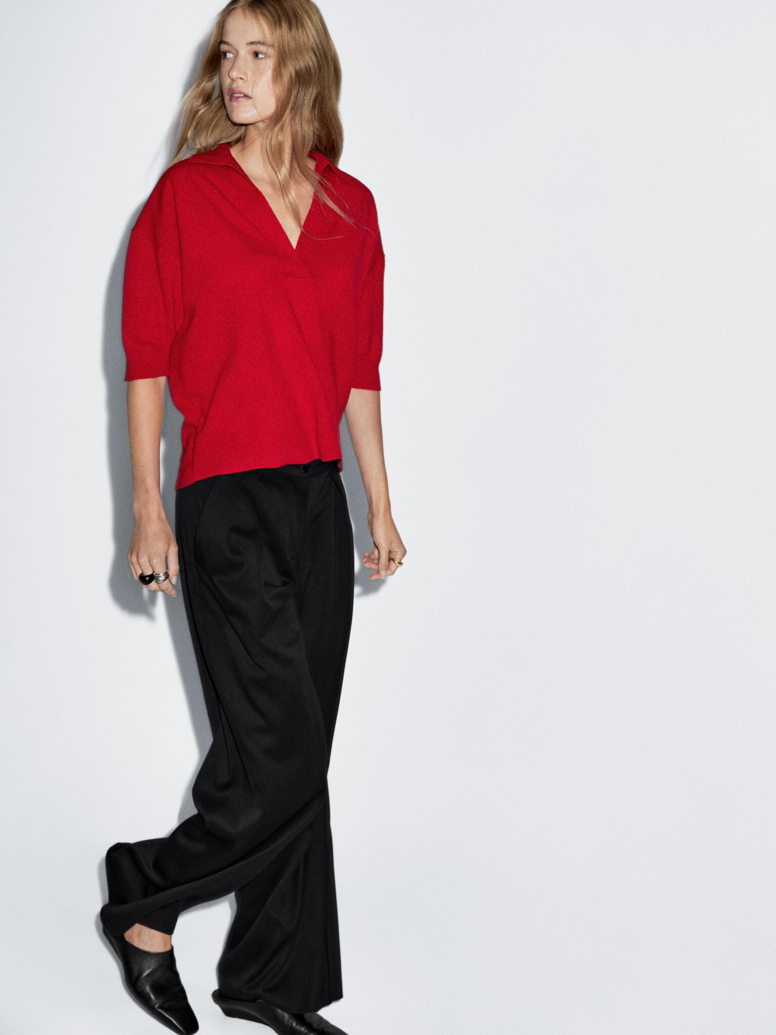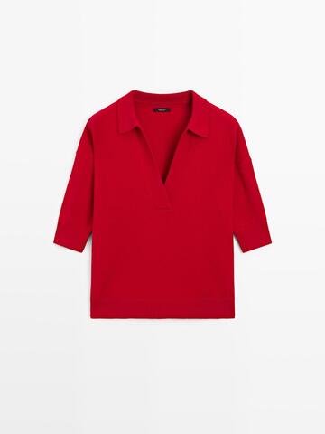 Massimo Dutti Трикотажное поло из смесовой шерсти с V-образным вырезом, красный