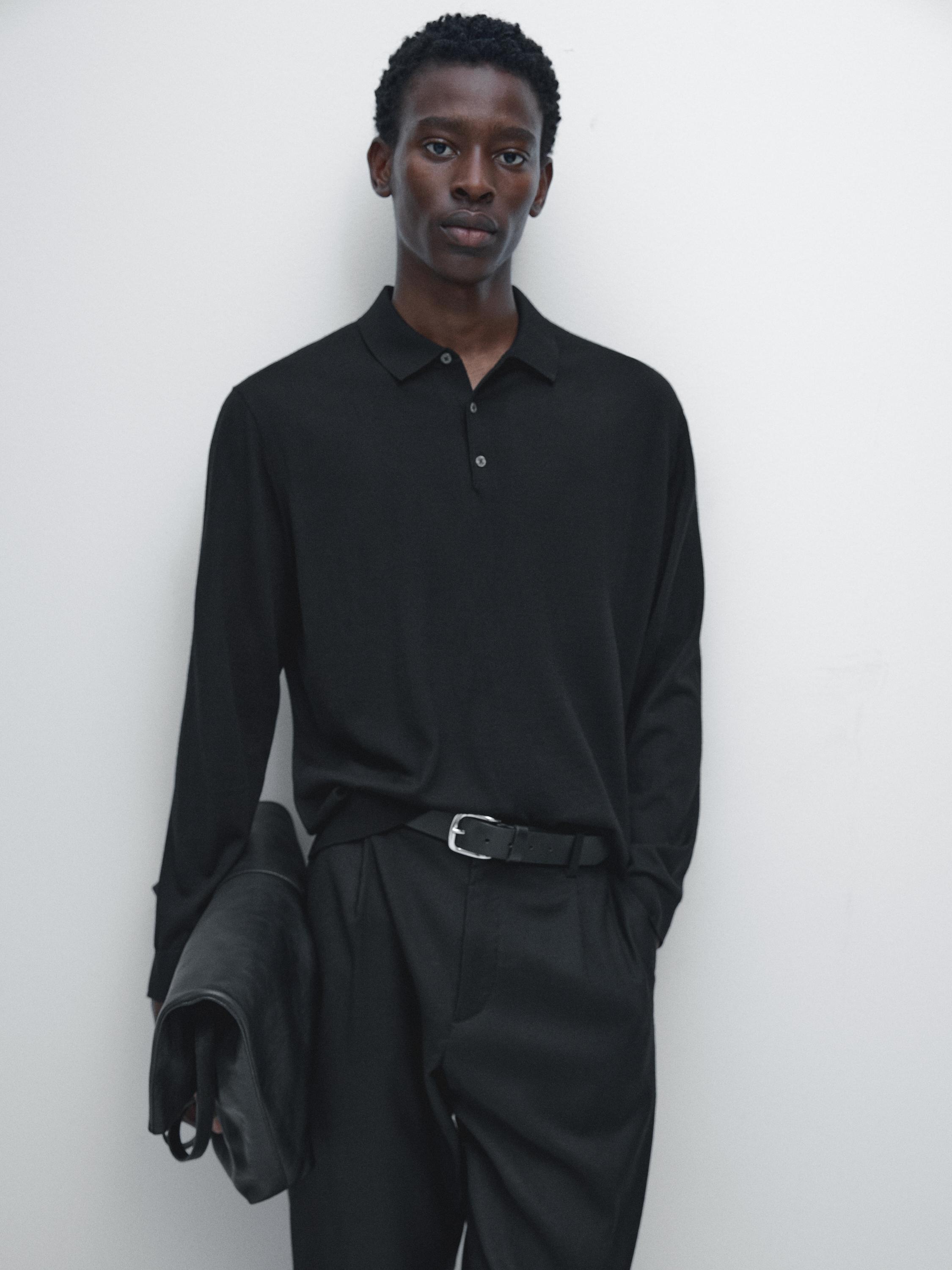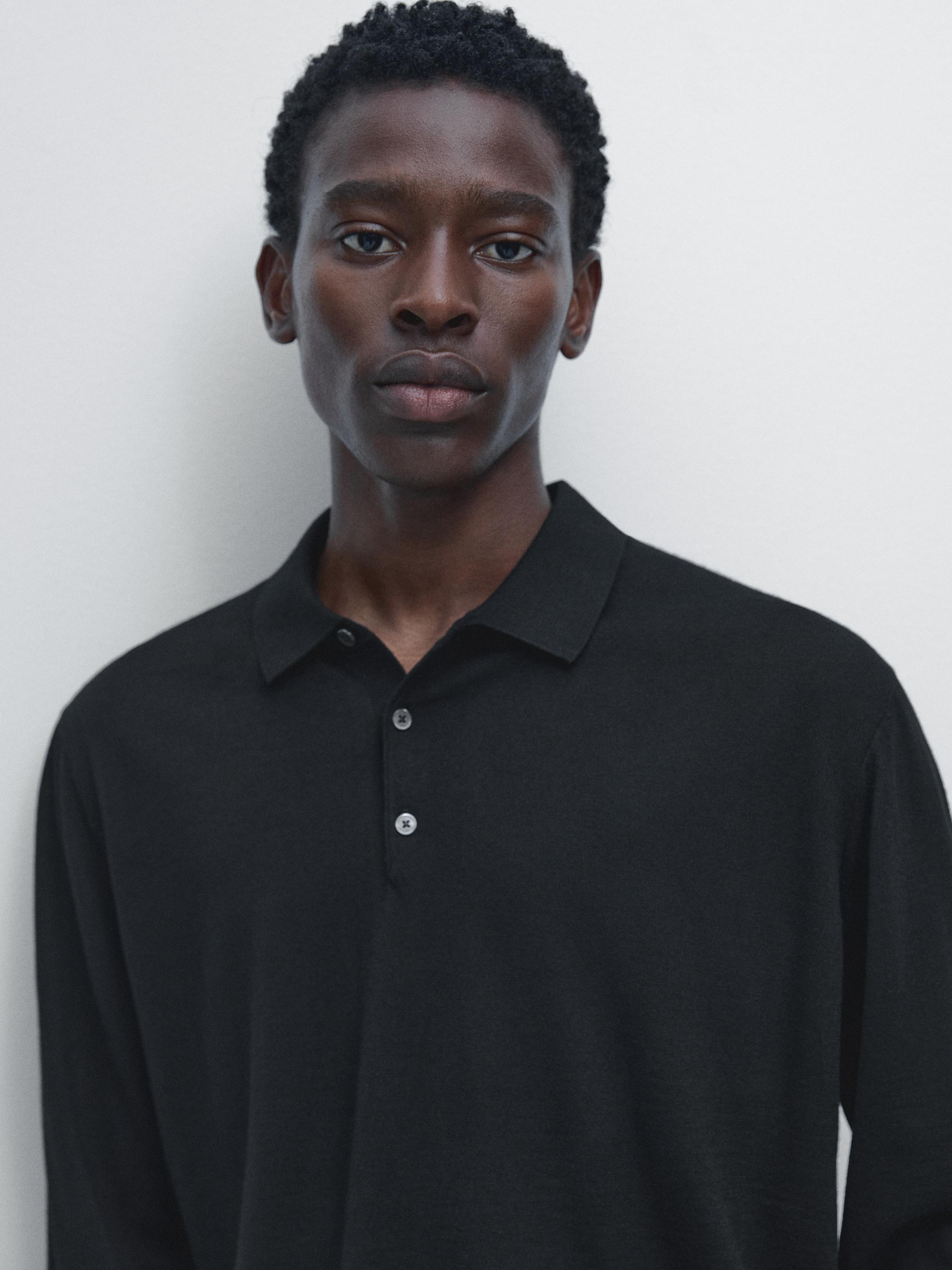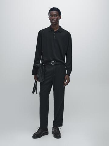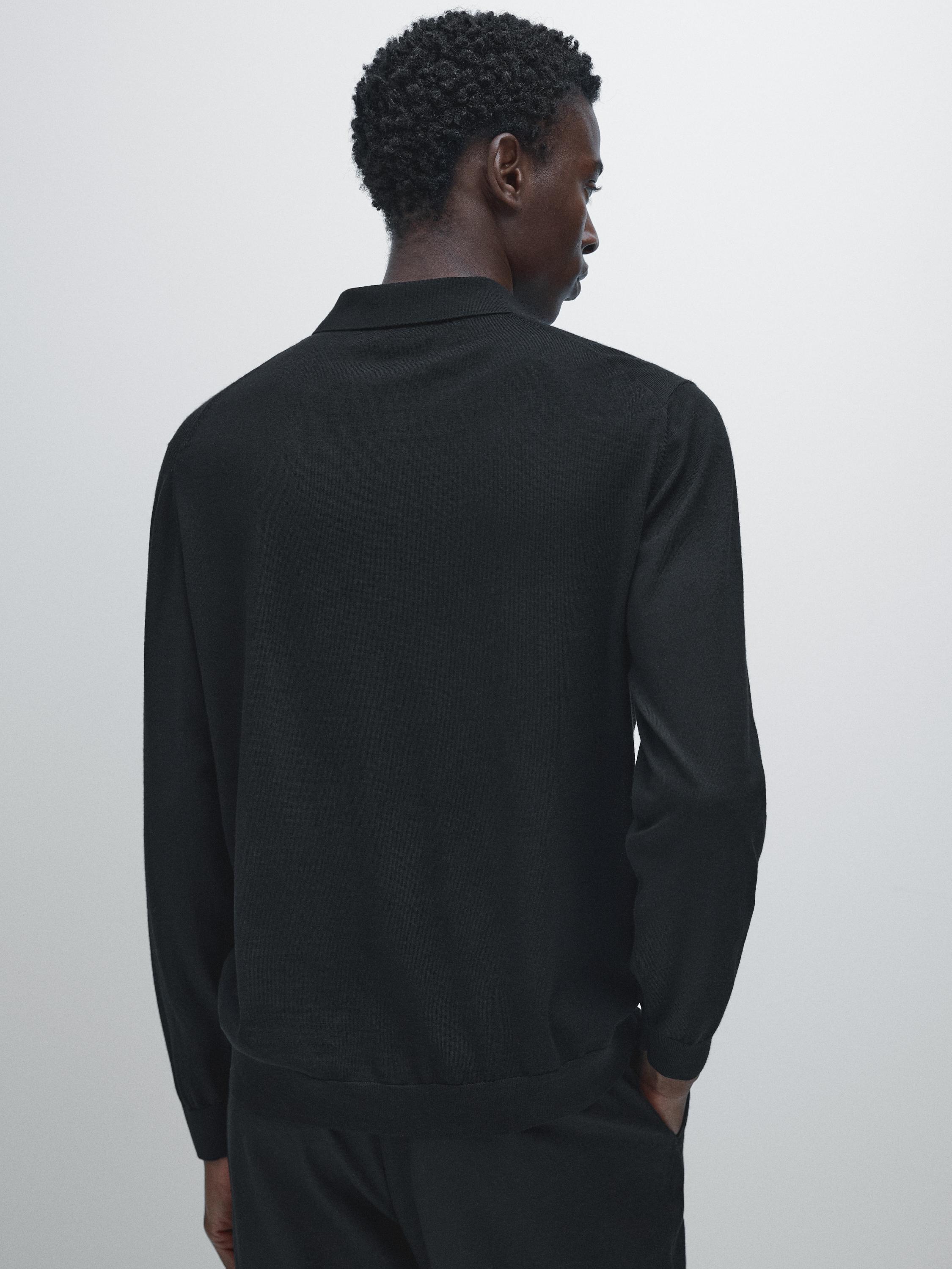 Massimo Dutti Трикотажное свитер поло из 100% мериносовой шерсти, черный