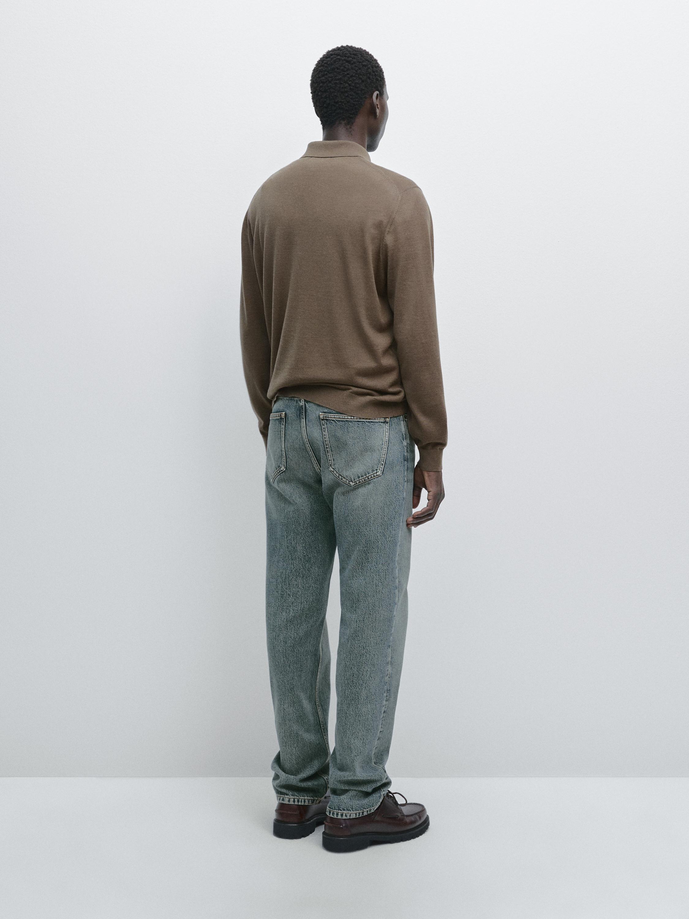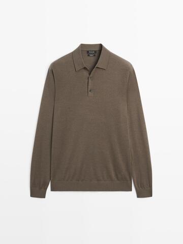 Massimo Dutti Трикотажное свитер поло из 100% мериносовой шерсти, хаки