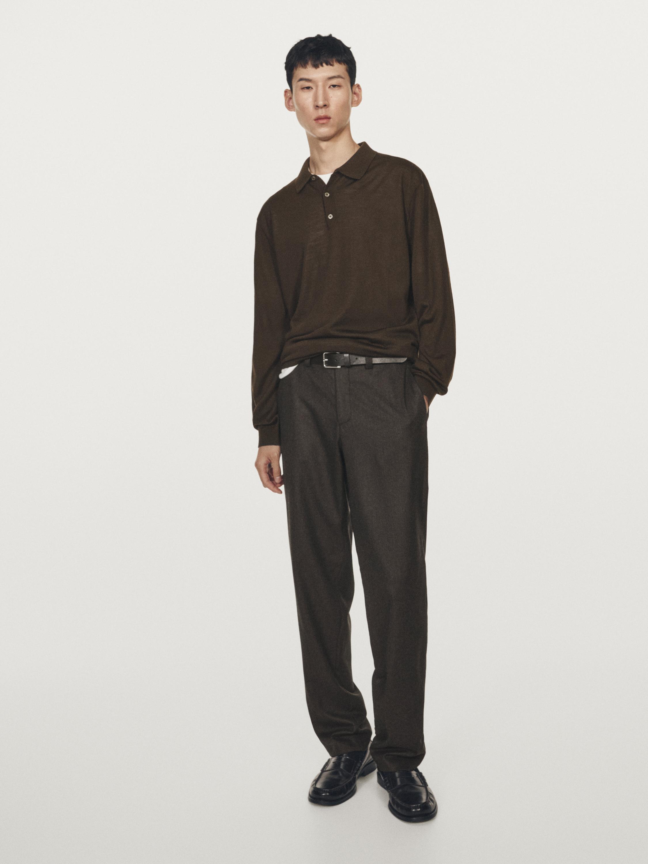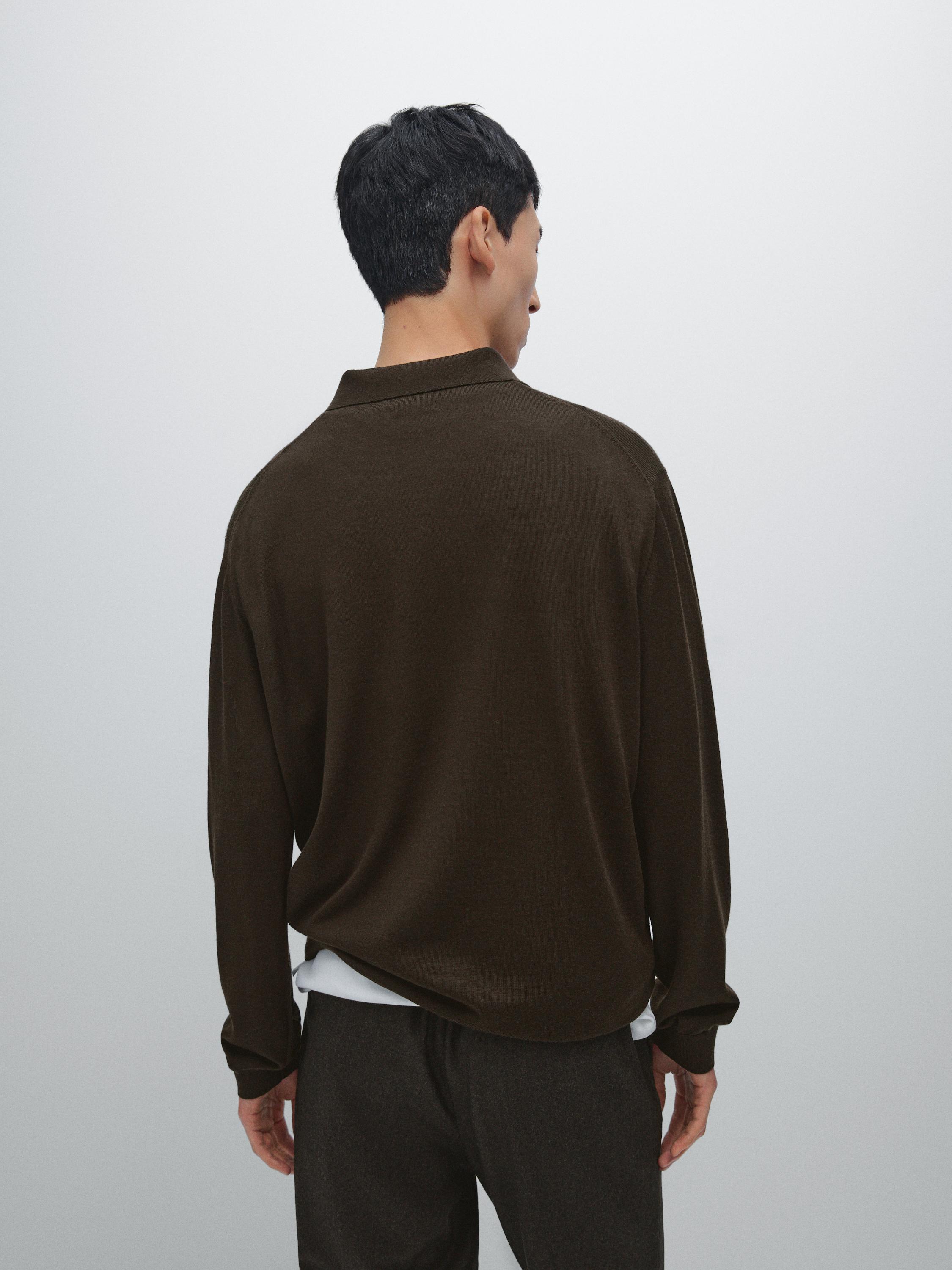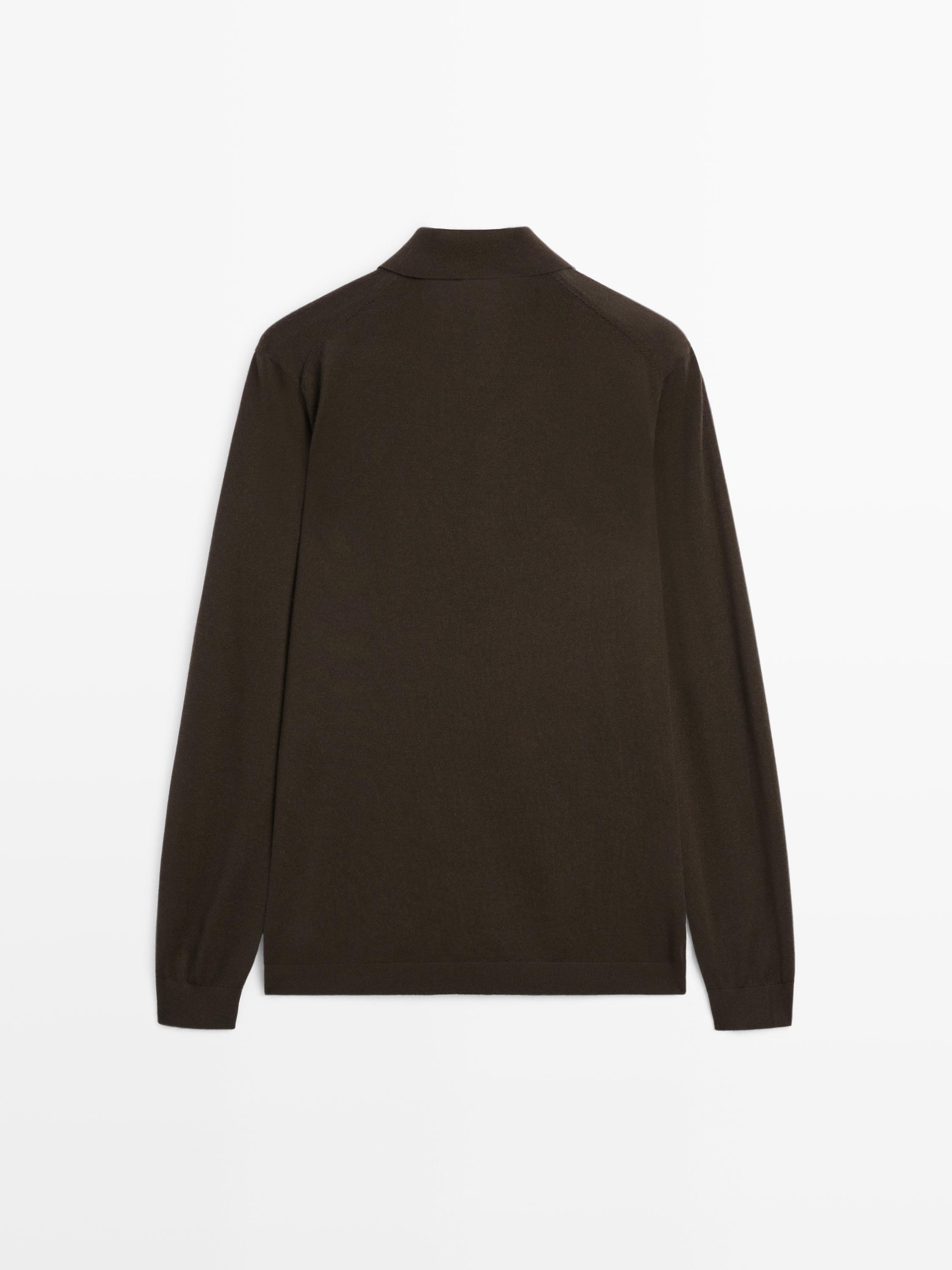 Massimo Dutti Трикотажное свитер поло из 100% мериносовой шерсти, коричневый