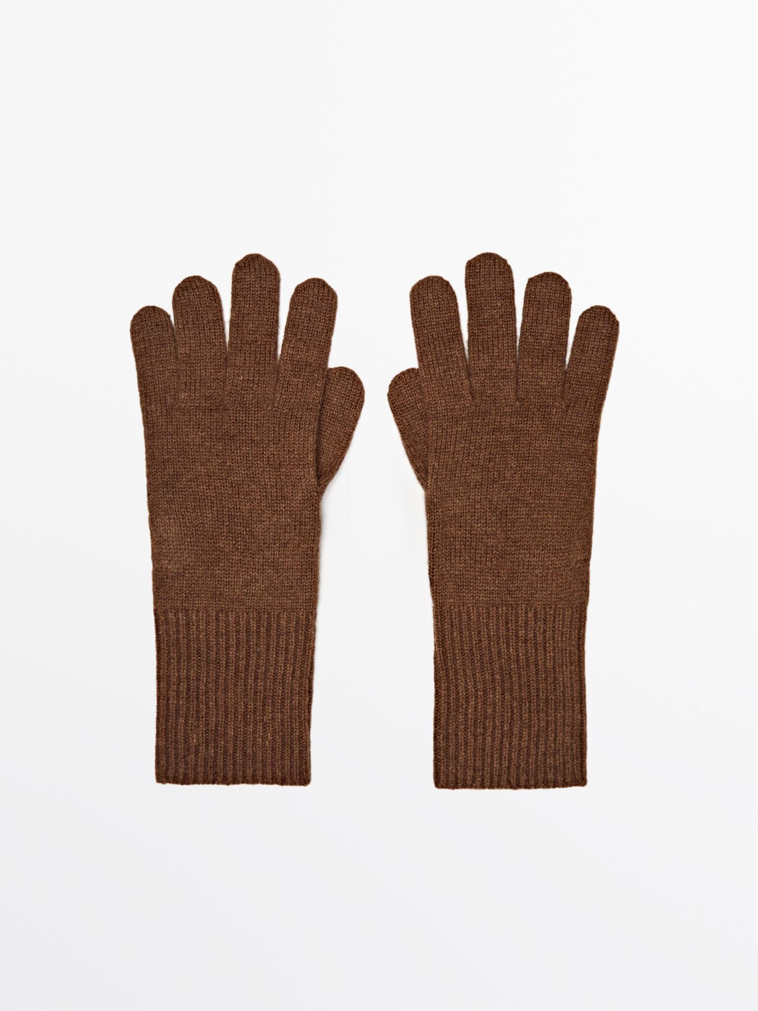 Massimo Dutti Трикотажные перчатки из смесовой шерсти, коричневый