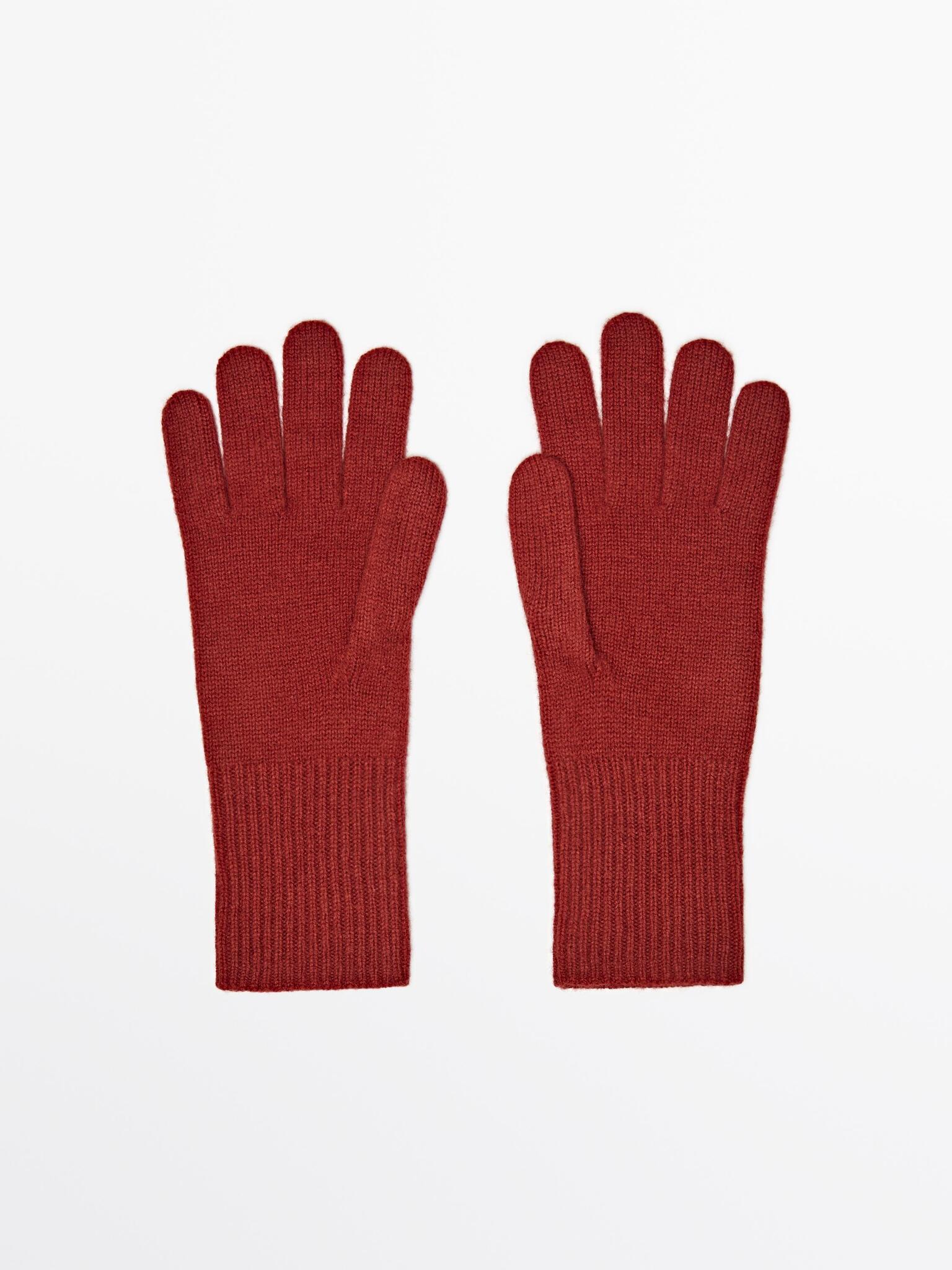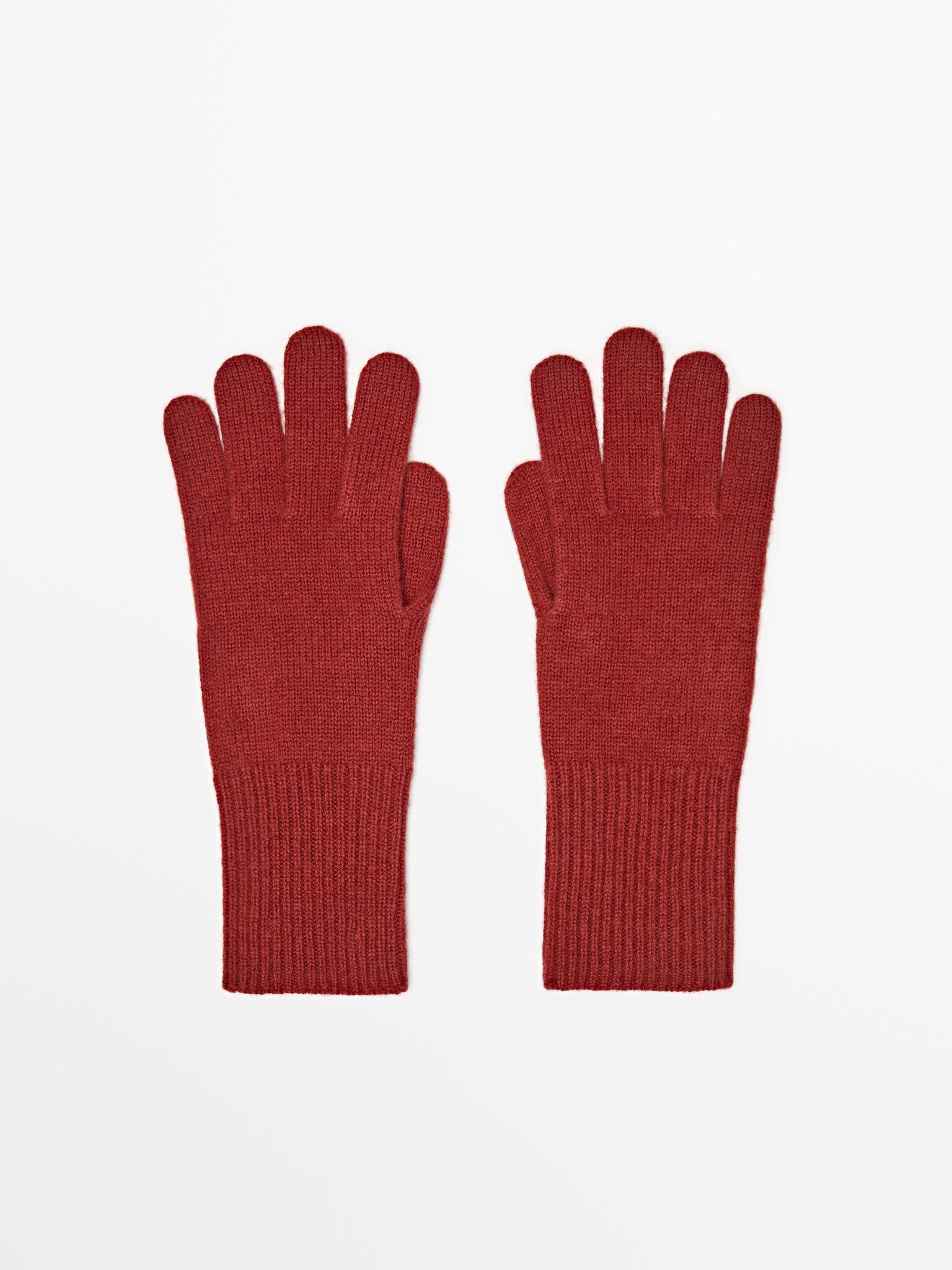 Massimo Dutti Трикотажные перчатки из смесовой шерсти, терракотовый
