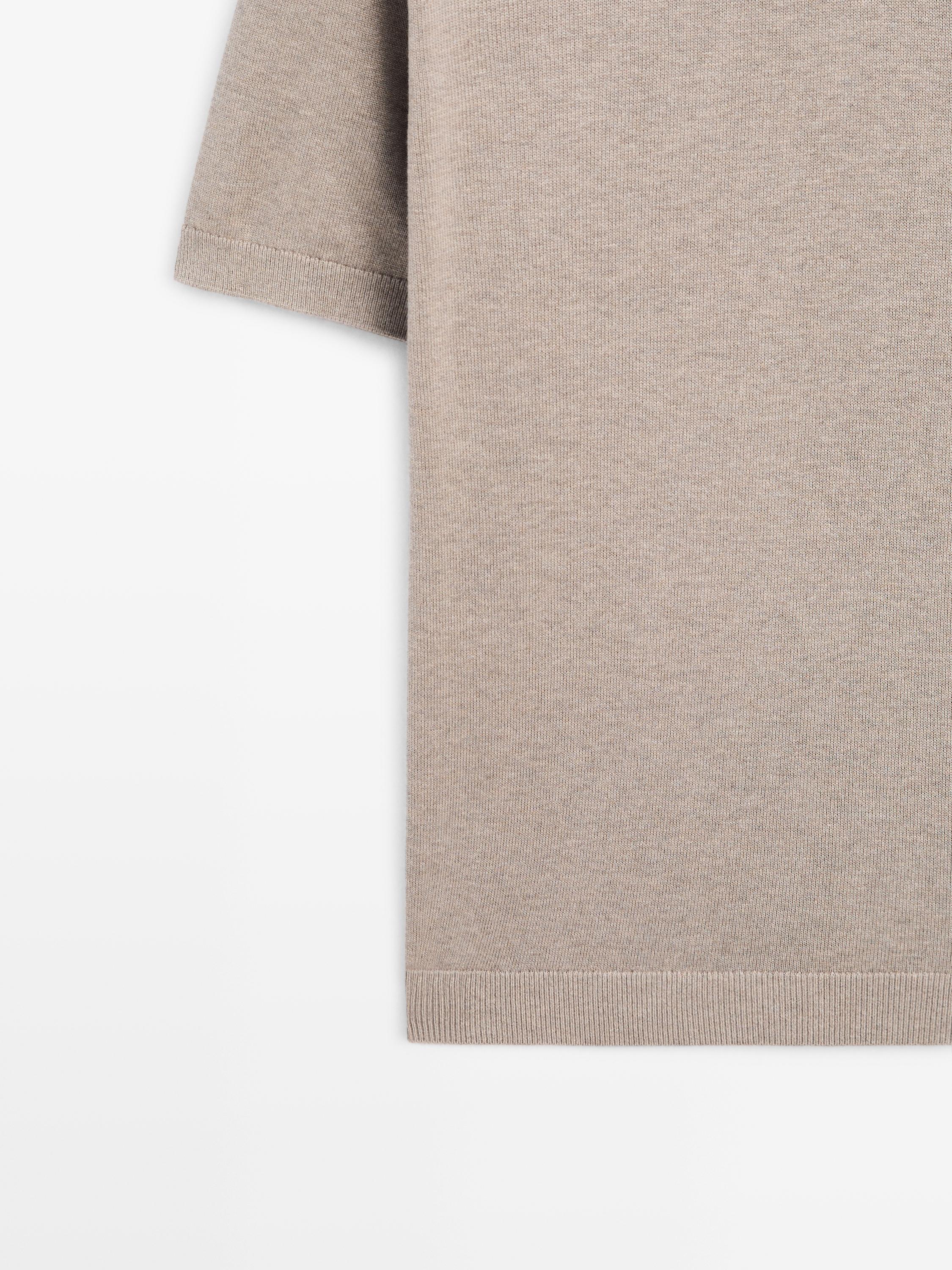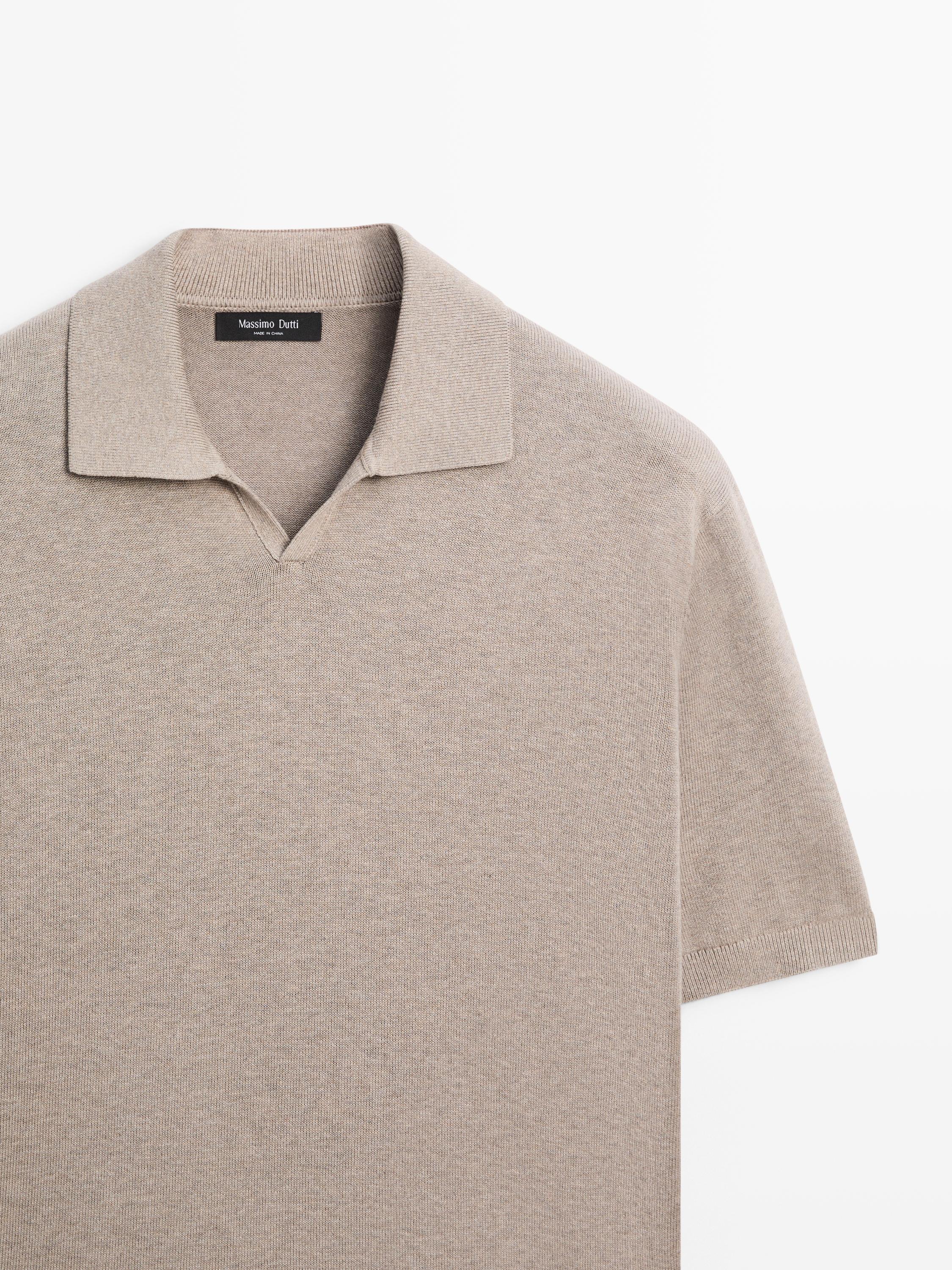 Massimo Dutti Трикотажный свитер из смесового хлопка с воротником-поло, норка
